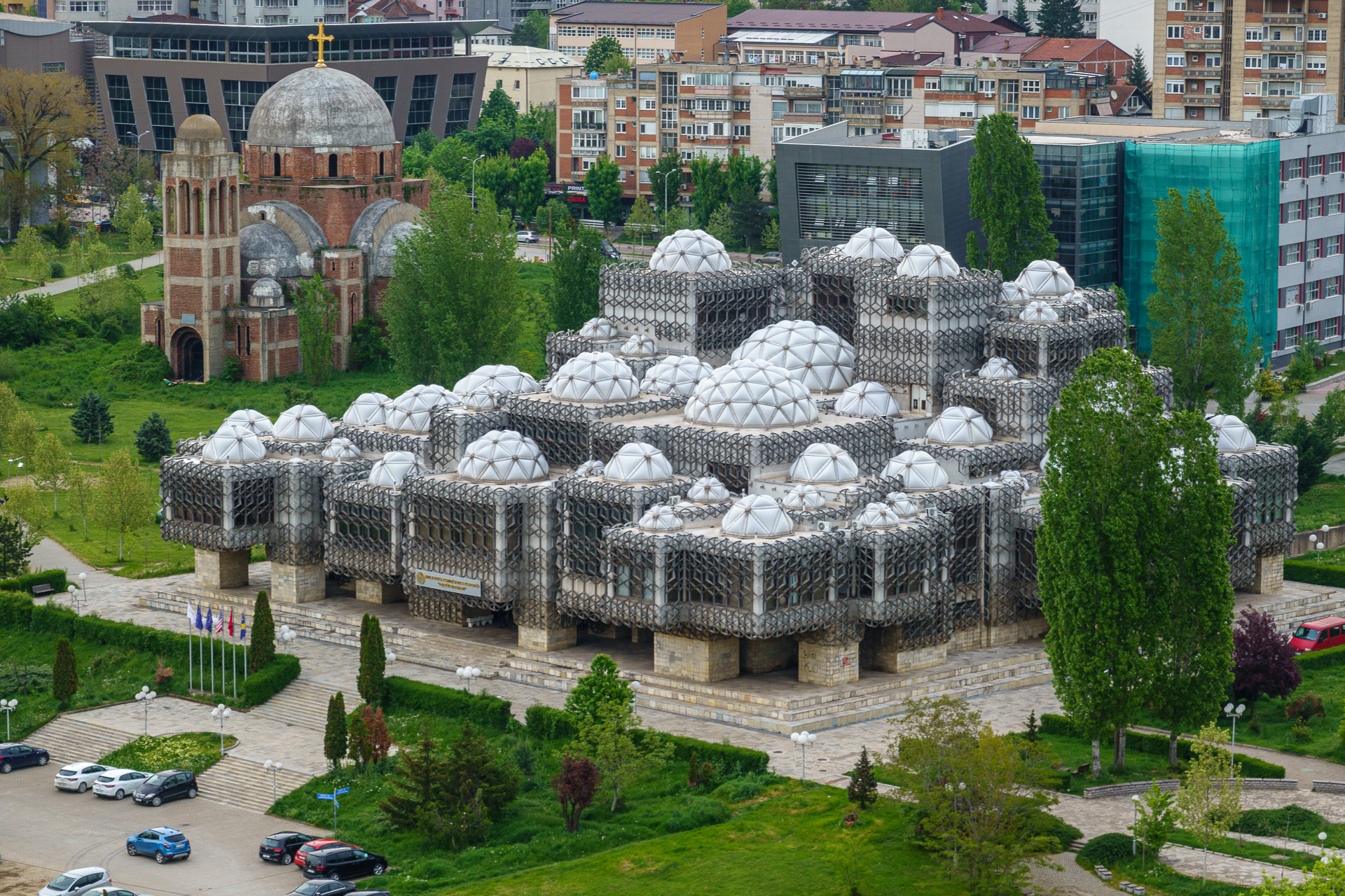 La bibliothèque nationale située sur le campus de l’université est le bâtiment le plus célèbre de la ville. Cette énorme structure moderniste date de la période socialiste (1982). Elle possède 99 dômes et une façade de cubes recouverts d’un treillis en aluminium.