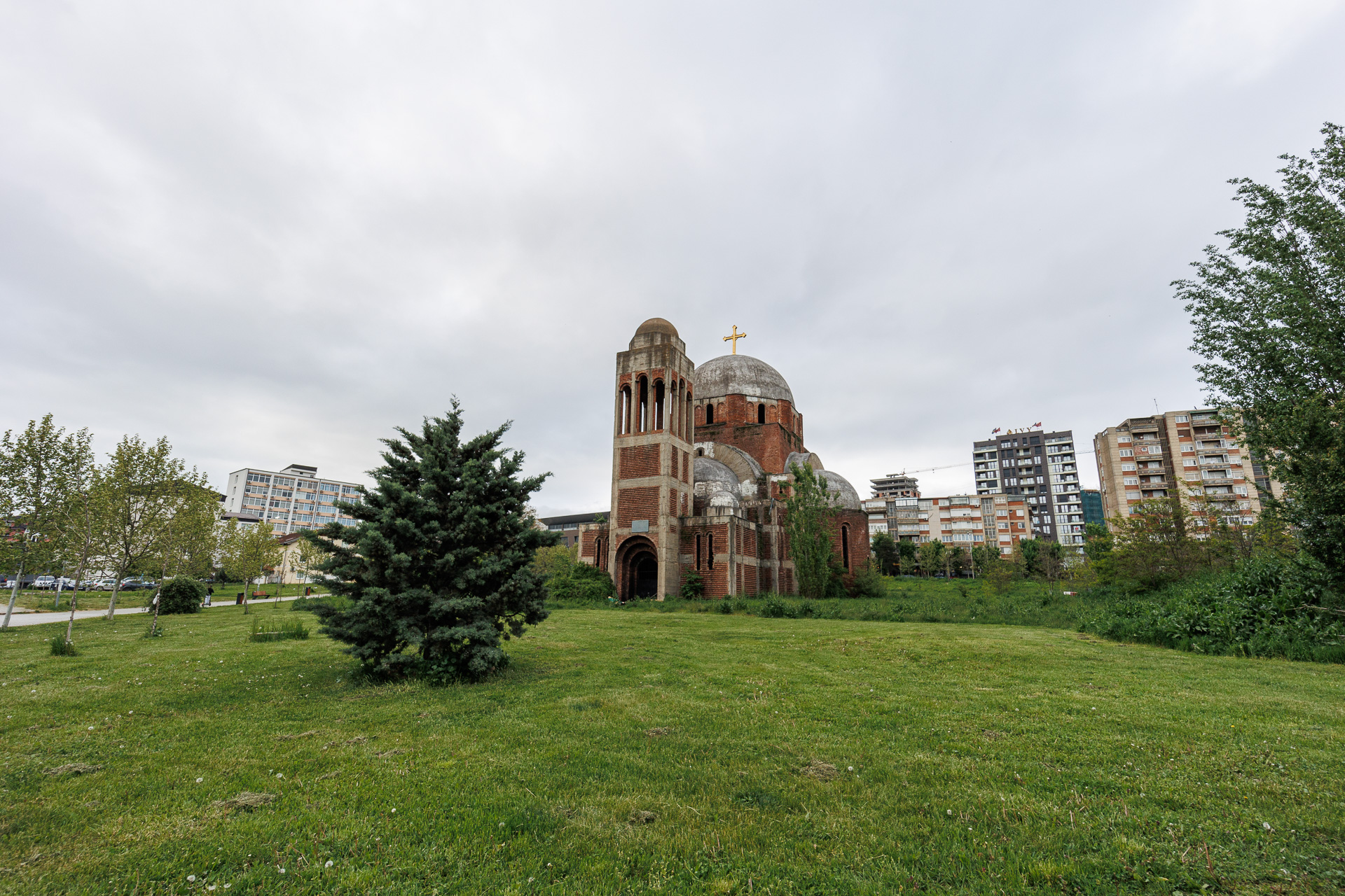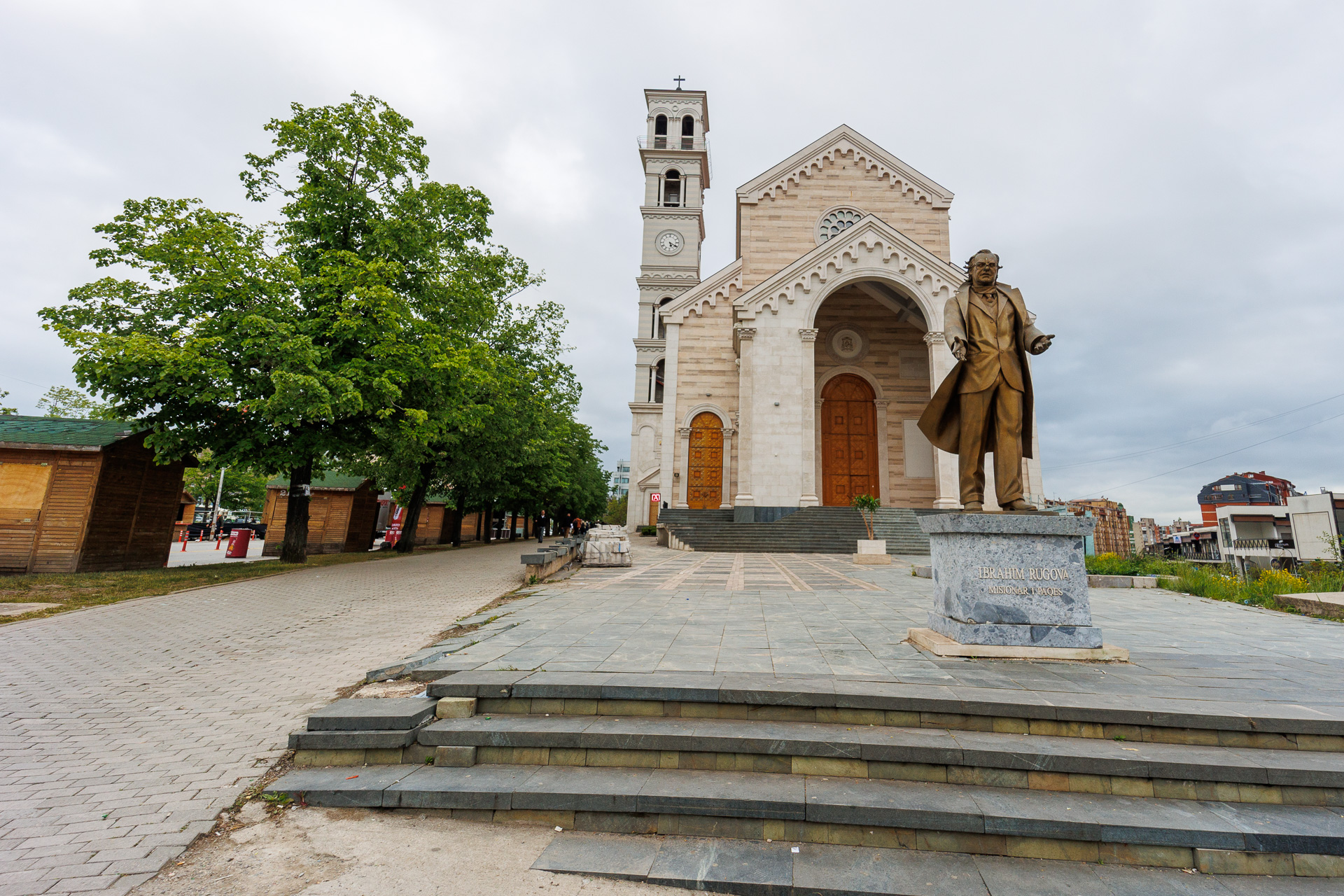 La cathédrale Mère-Theresa est la plus grande des Balkans et la seule au monde à être dédiée à Mère-Theresa. Devant le parvis, on retrouve une statue d’Ibrahim Rugova. Ce dernier s’est converti au catholicisme en 2006 peu avant son décès.