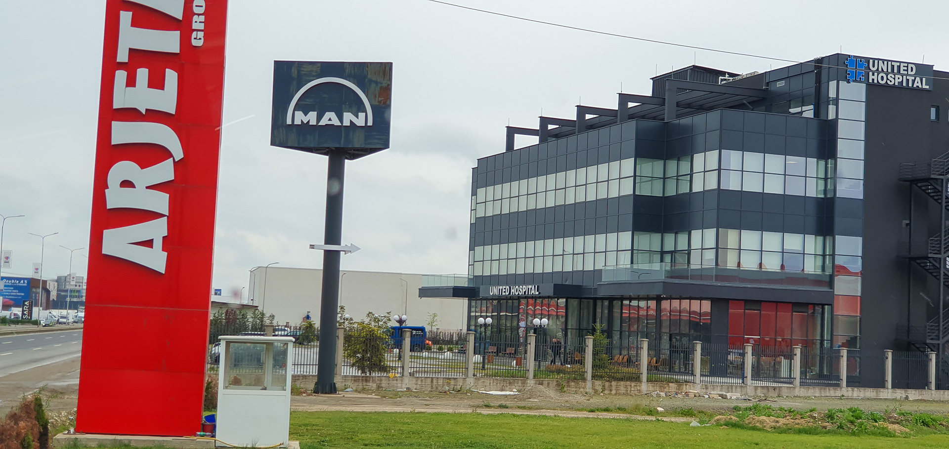 Avant de partir à la découverte de Pristina, nous ferons une petite halte… chez MAN 😜 ! On aime leur rendre des petites visites pour entretenir le lien 🤣… Heureusement qu’il y a la flèche car on ne l’aurait pas trouver au milieu de la zone commerciale.