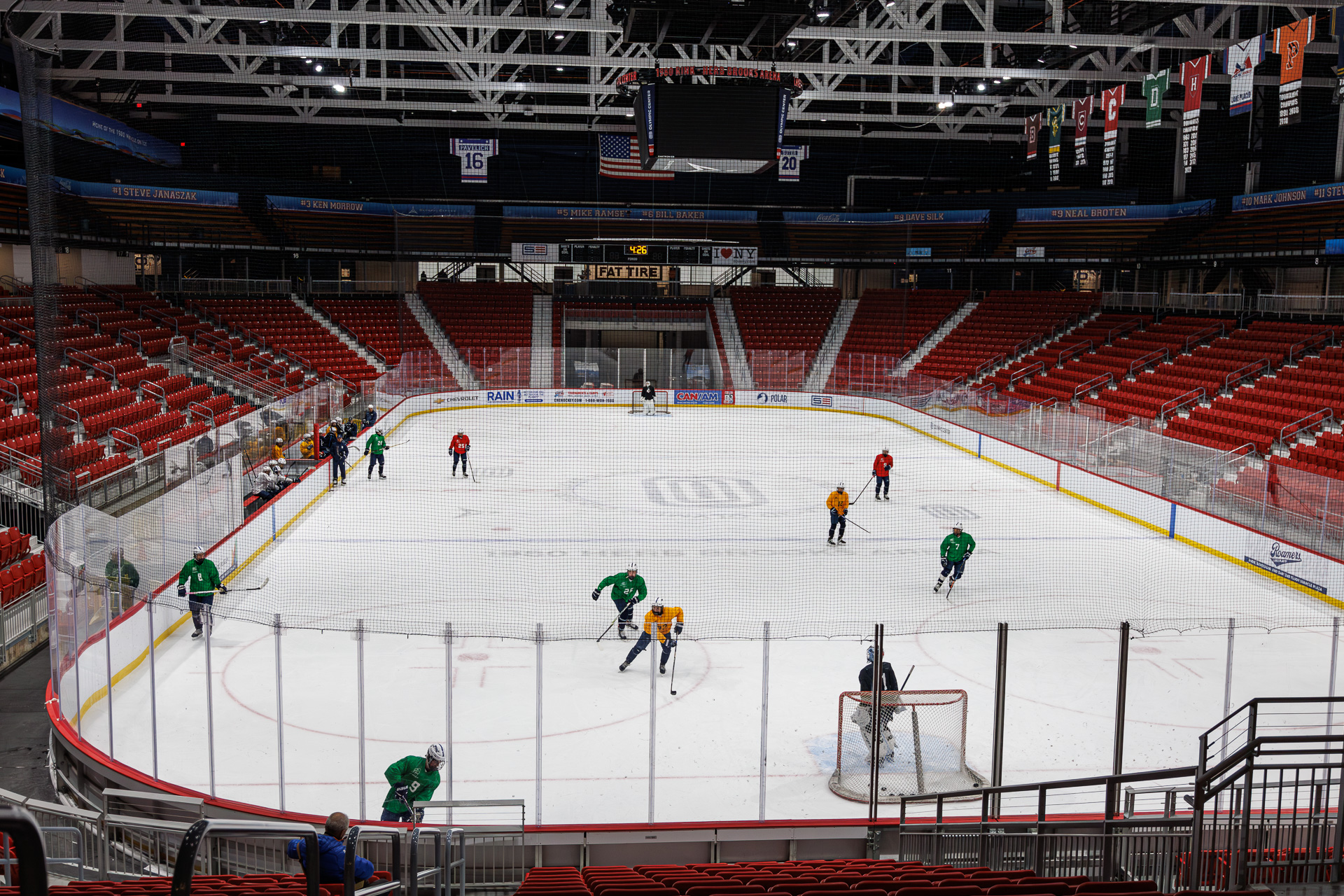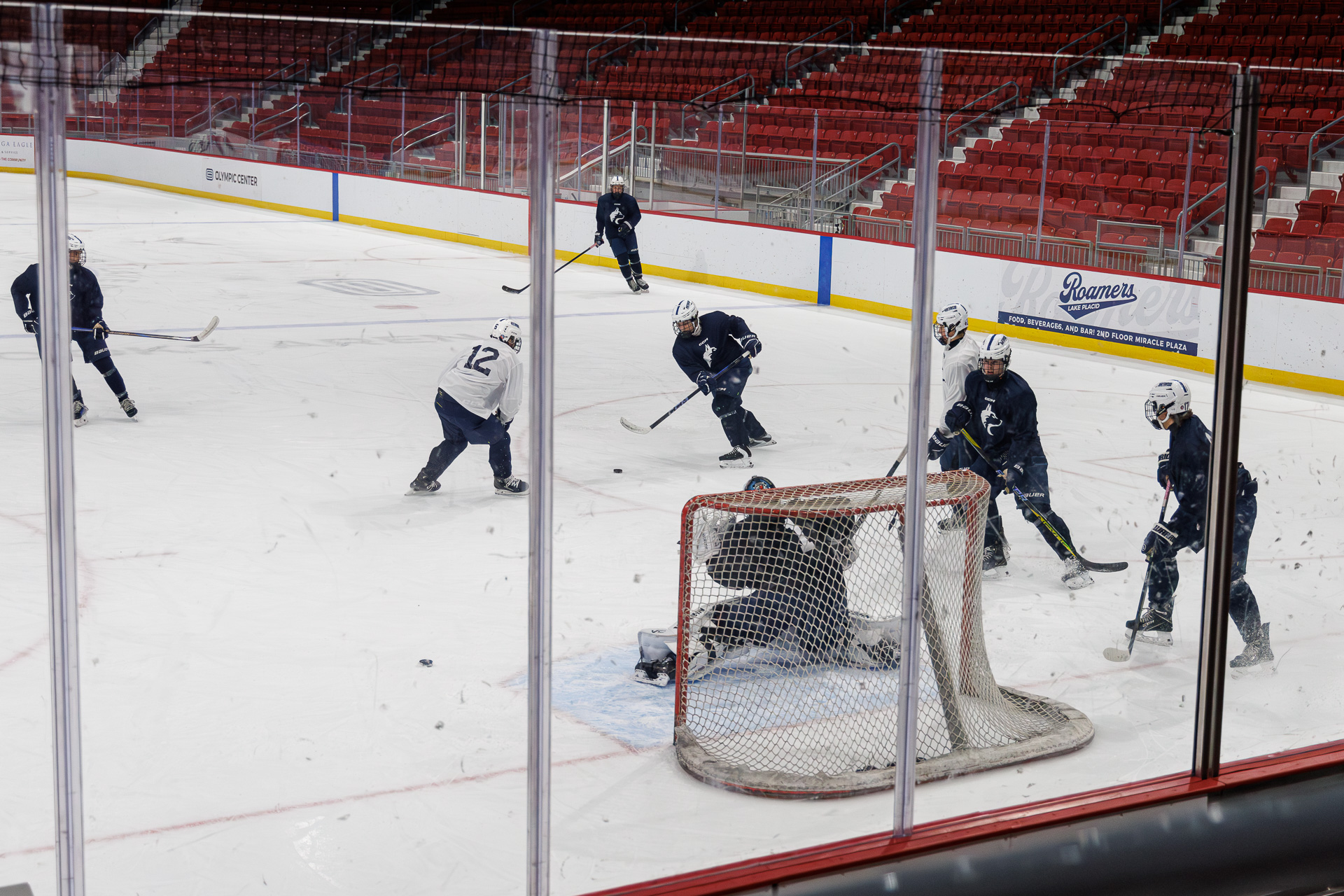 A l’Office du Tourisme, on nous apprend qu’il y a un entraînement de hockey sur glace à la patinoire olympique… On y va !