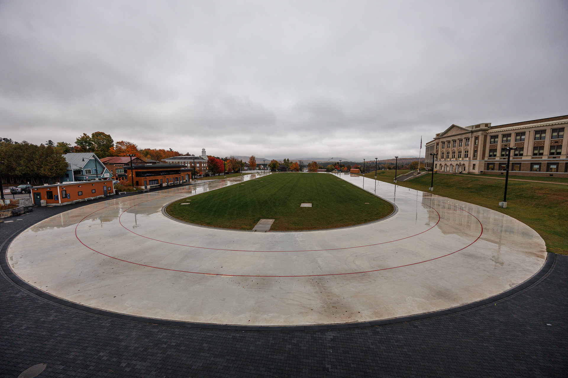 Devant le parvis de la patinoire, nous pouvons admirer la belle piste de patinage de vitesse !