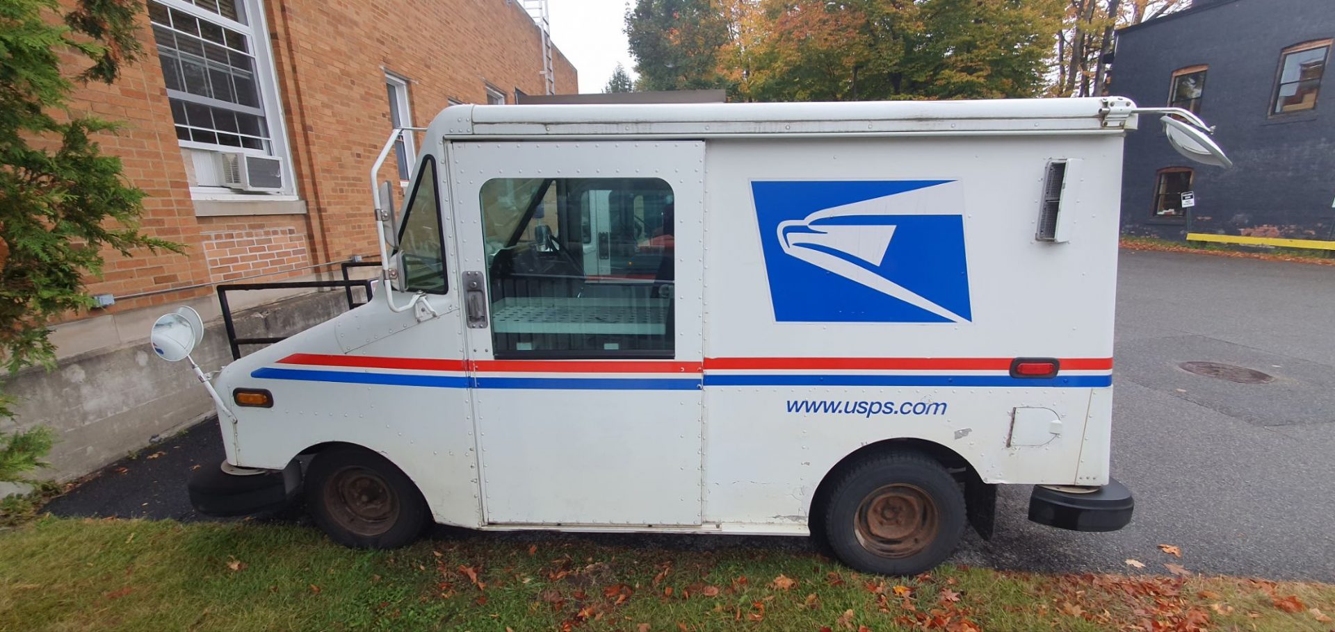 En retournant au camion, nous tombons sur ce véhicule de la Poste américaine. Ce véhicule a une particularité. Il se conduit avec le volant à droite afin de permettre aux facteurs lorsqu’il fait sa tournée en dehors des villes de déposer le courrier dans les boîtes à lettres sans descendre de son véhicules. Aux États-Unis comme au Canada, les boîtes aux lettres ne sont pas accolées aux maisons. Elles sont sur le bord de la chaussée. La distribution est plus rapide et plus sûre 😇.
