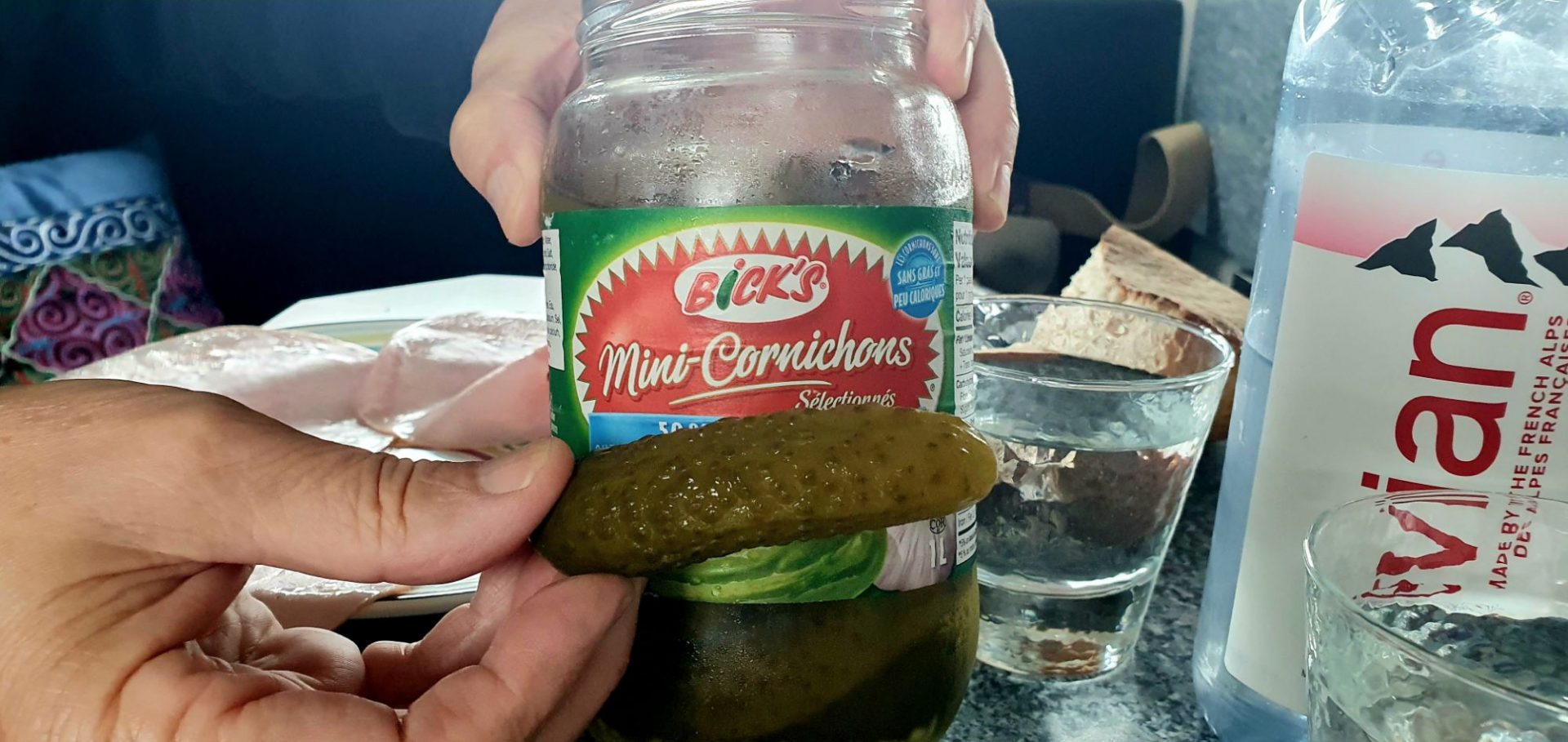 C’est l’heure du repas. Difficile de trouver des produits en quantités ou tailles raisonnables, même les mini-cornichons sont XXL en comparaison de notre appréciation française du terme « mini »….