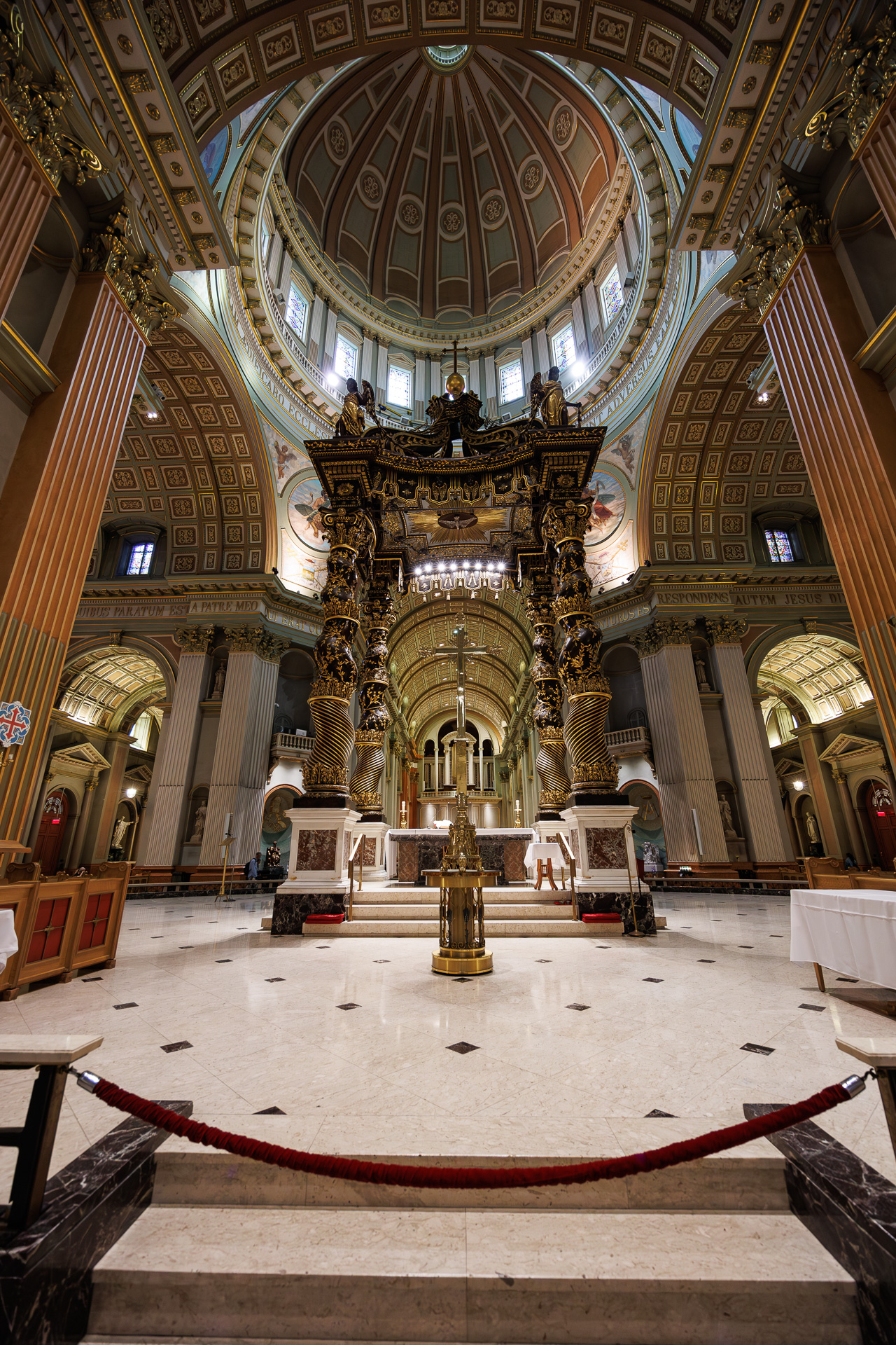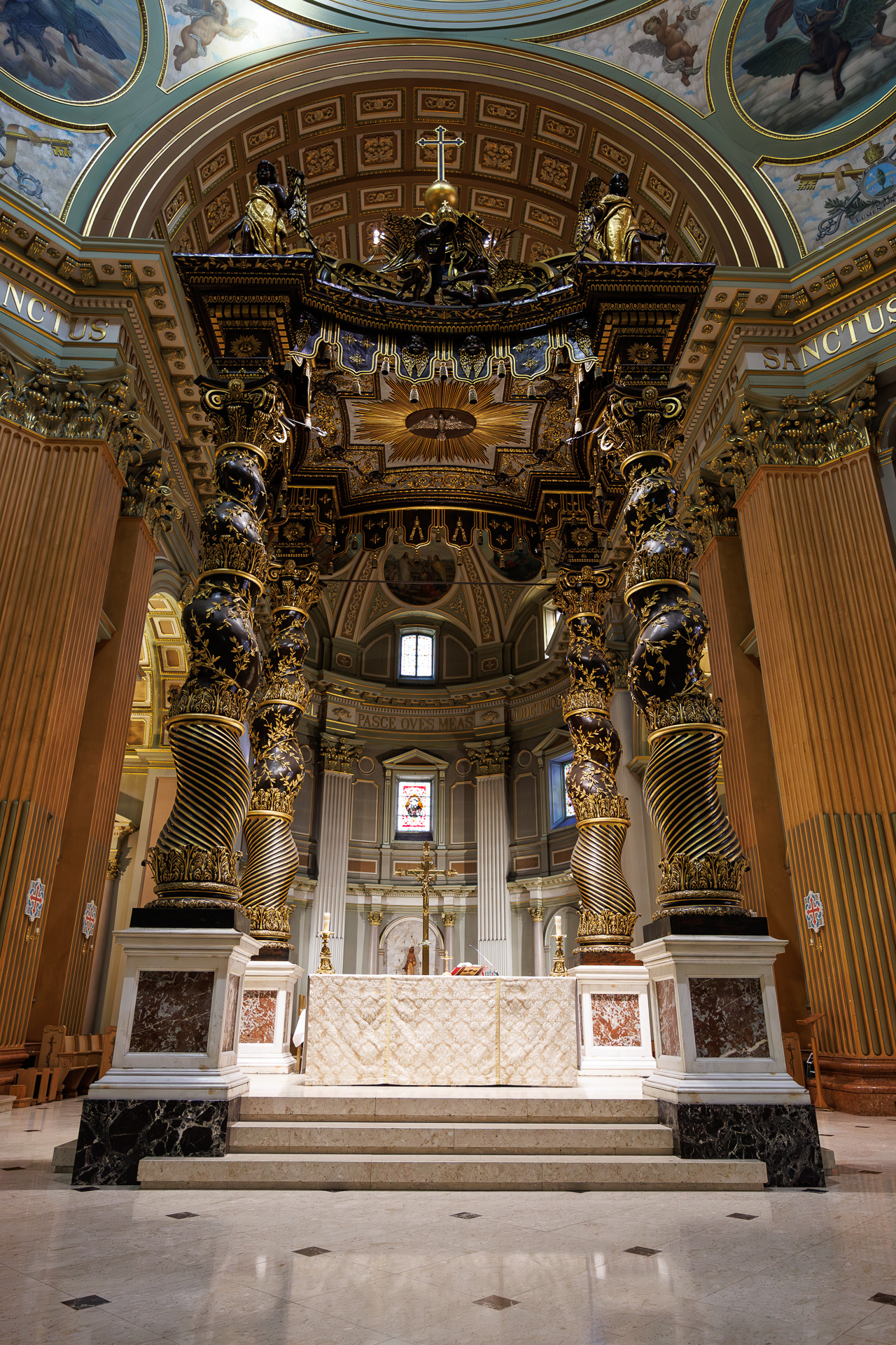 Un magnifique baldaquin à l’échelle de celui du Bernin trône au milieu du cœur.