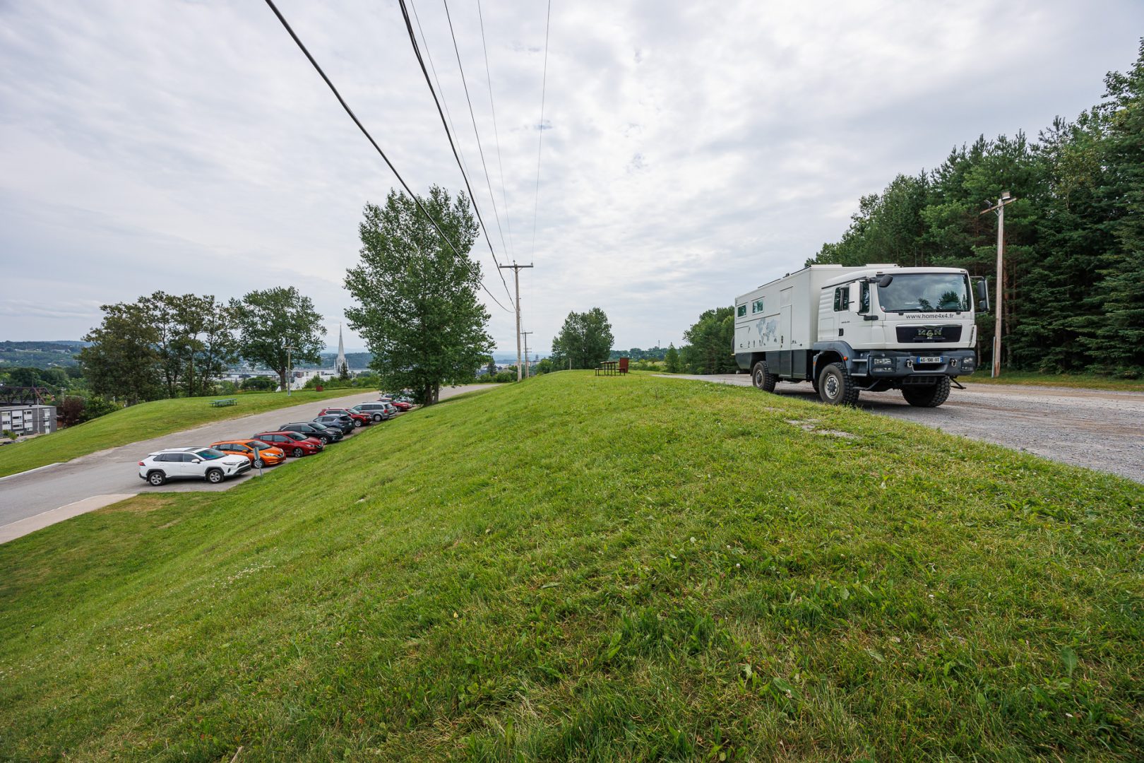 Nous nous arrêtons à nouveau sur un site Terego pour passer la nuit à Saint-Henri-de-Taillon, sur le site de la ferme Gilbert et Fils, grande ferme céréalière et laitière. Demain, nous avons rv à 10h30 pour visiter la ferme. Un petit tour de drone nous permet d’avoir une vue jusqu’au lac St Jean.