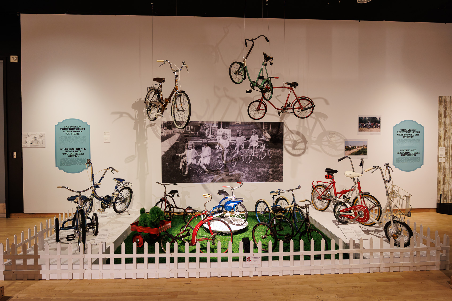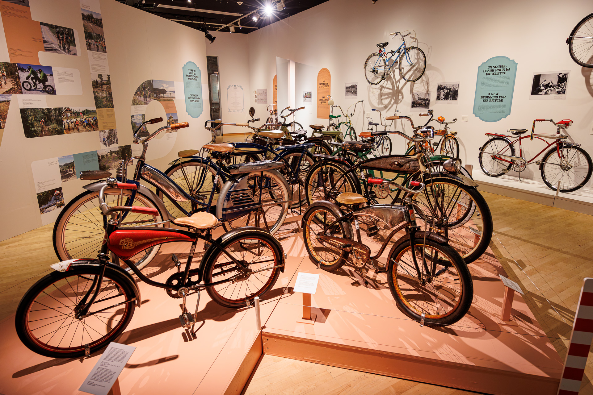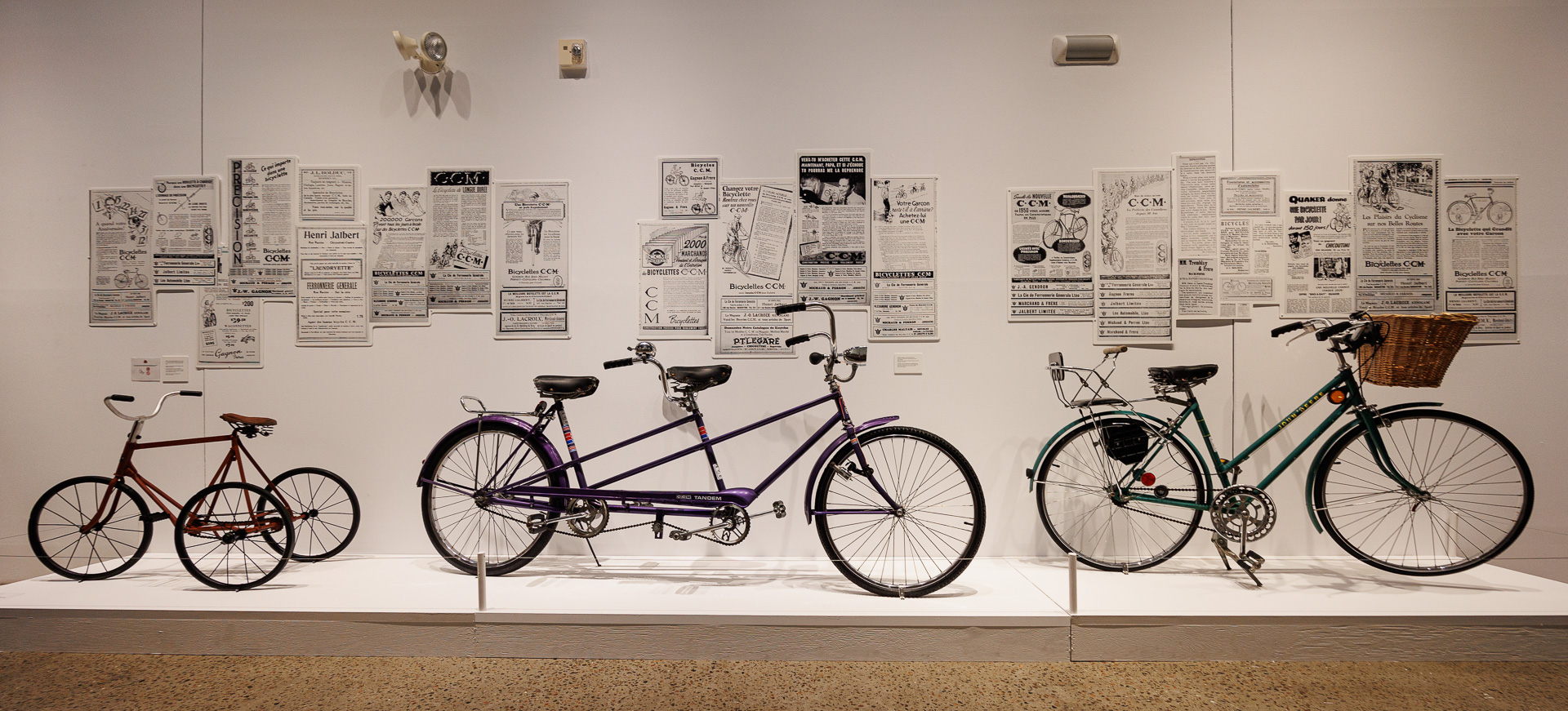 Nous finirons par une exposition sympathique sur la bicyclette. Le cyclisme, au Québec, remonte à 1868.
