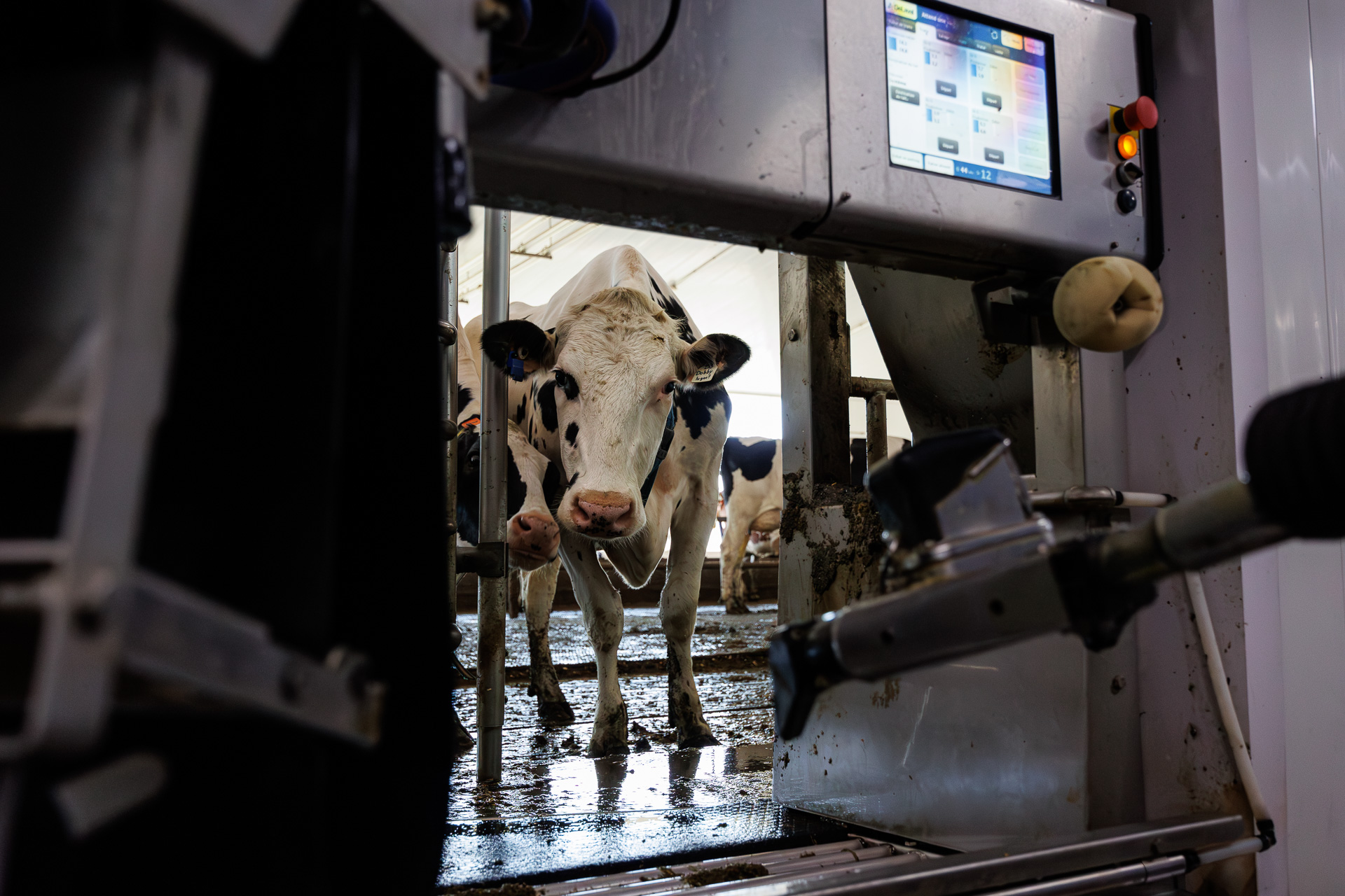 C’est une ferme robotisée à la pointe de la technologie ! Tous les animaux sont pucés. Le seul inconvénient à nos yeux, c’est que les animaux ne sortent jamais de l’étable et ne vont jamais aux prés 😳…