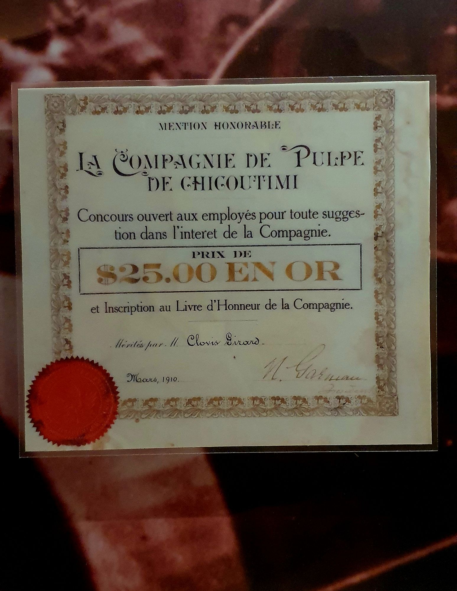 En 1900 se tient l’Exposition universelle de Paris. La Pulperie de Chicoutimi y présente son produit. La pâte mécanique du Saguenay remporte un prix d’excellence pour sa qualité, ce qui suscitera un engouement pour l’entreprise naissante et pour son produit.