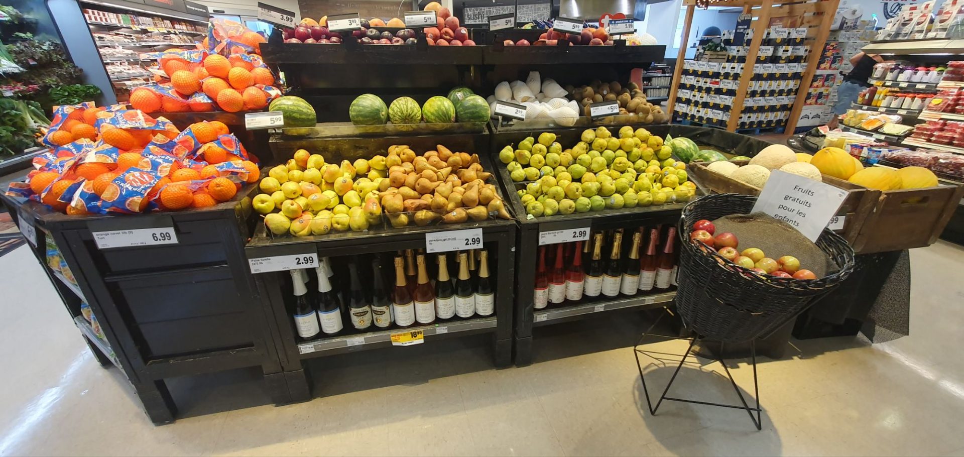 Après cette visite très intéressante du musée et de la Pulperie, nous poursuivons notre route en direction du lac St Jean. Petite halte dans un supermarché avec une belle initiative : des fruits sont offerts aux enfants 👍👏