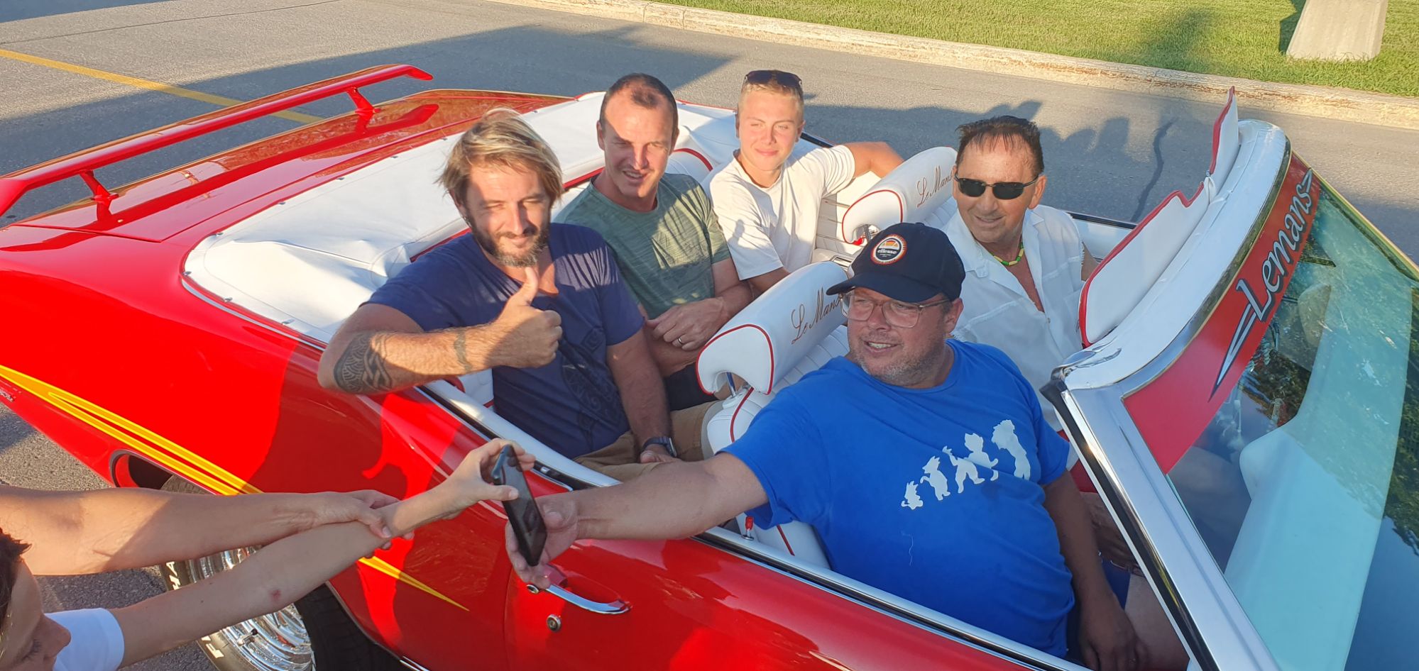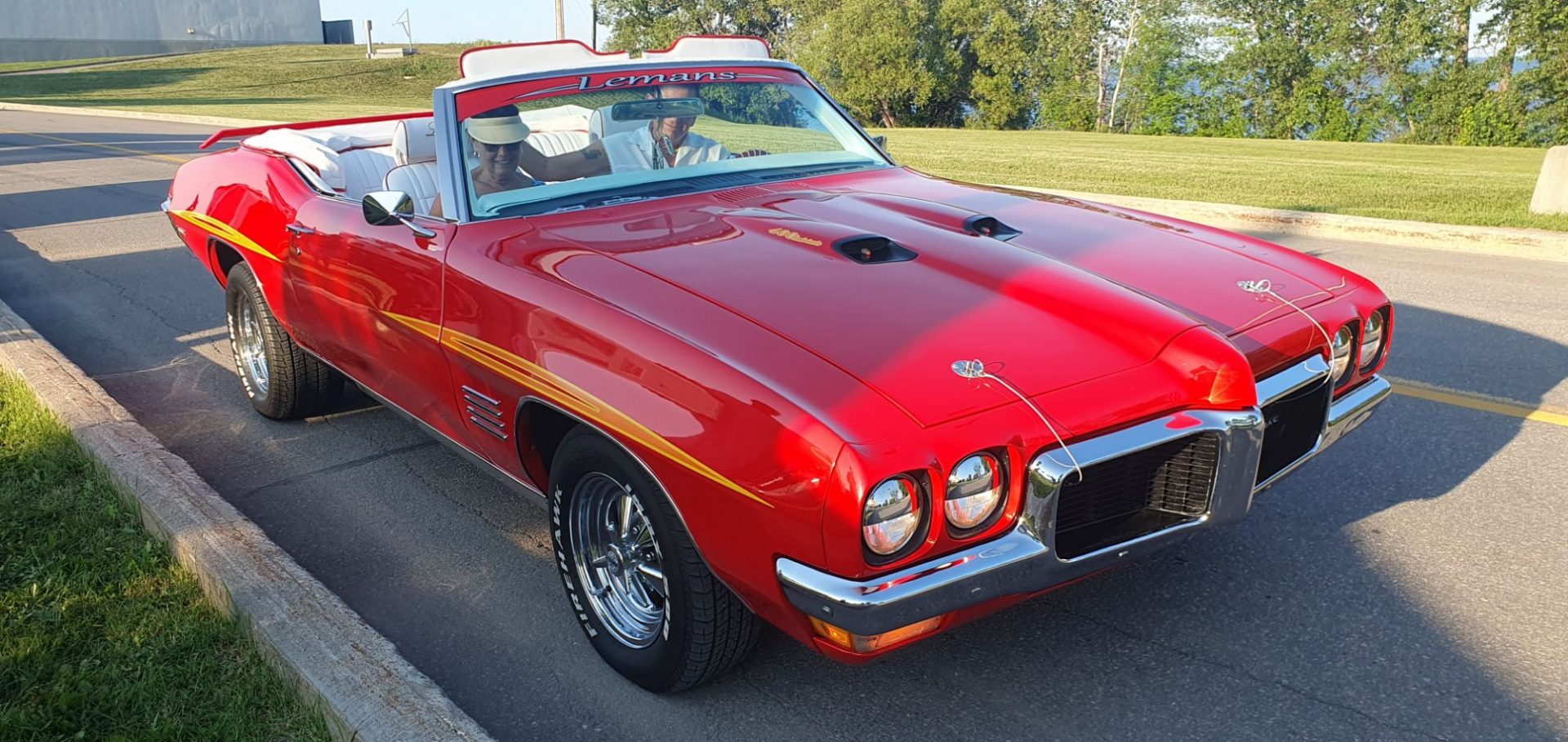 Mais avant cela, petite surprise. Un canadien passe avec sa superbe voiture. C’est une Pontiac Le Mans cabriolet. Il possède 6 autres véhicules de collection.