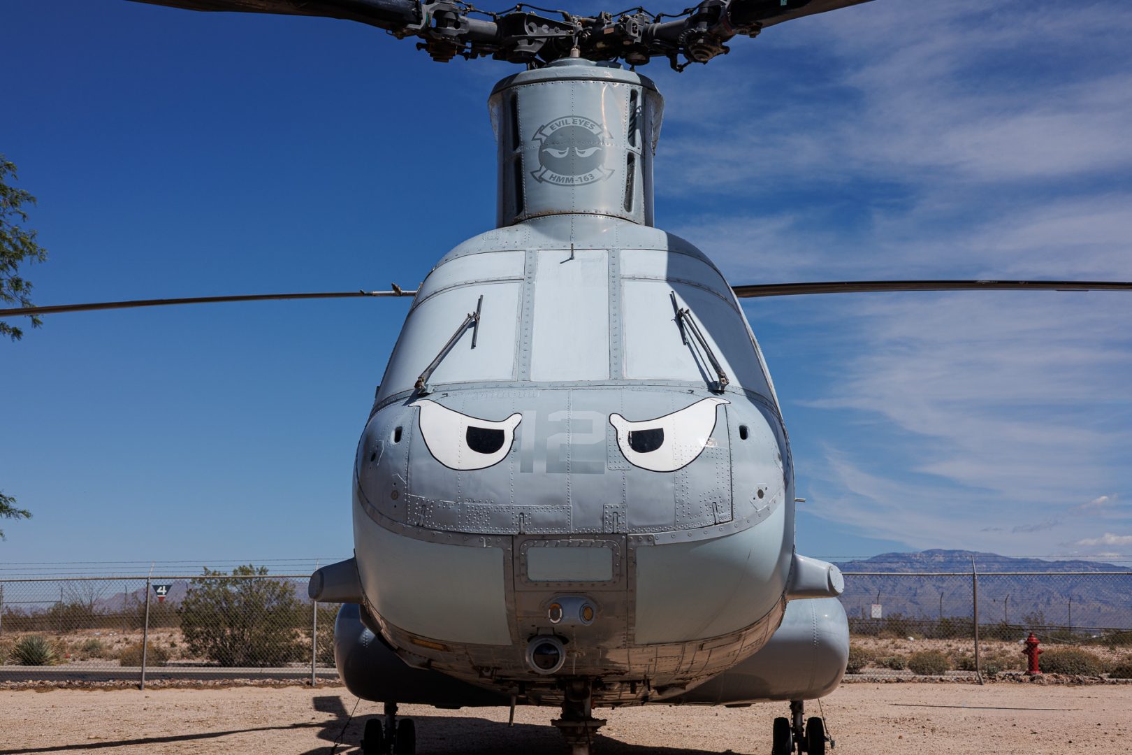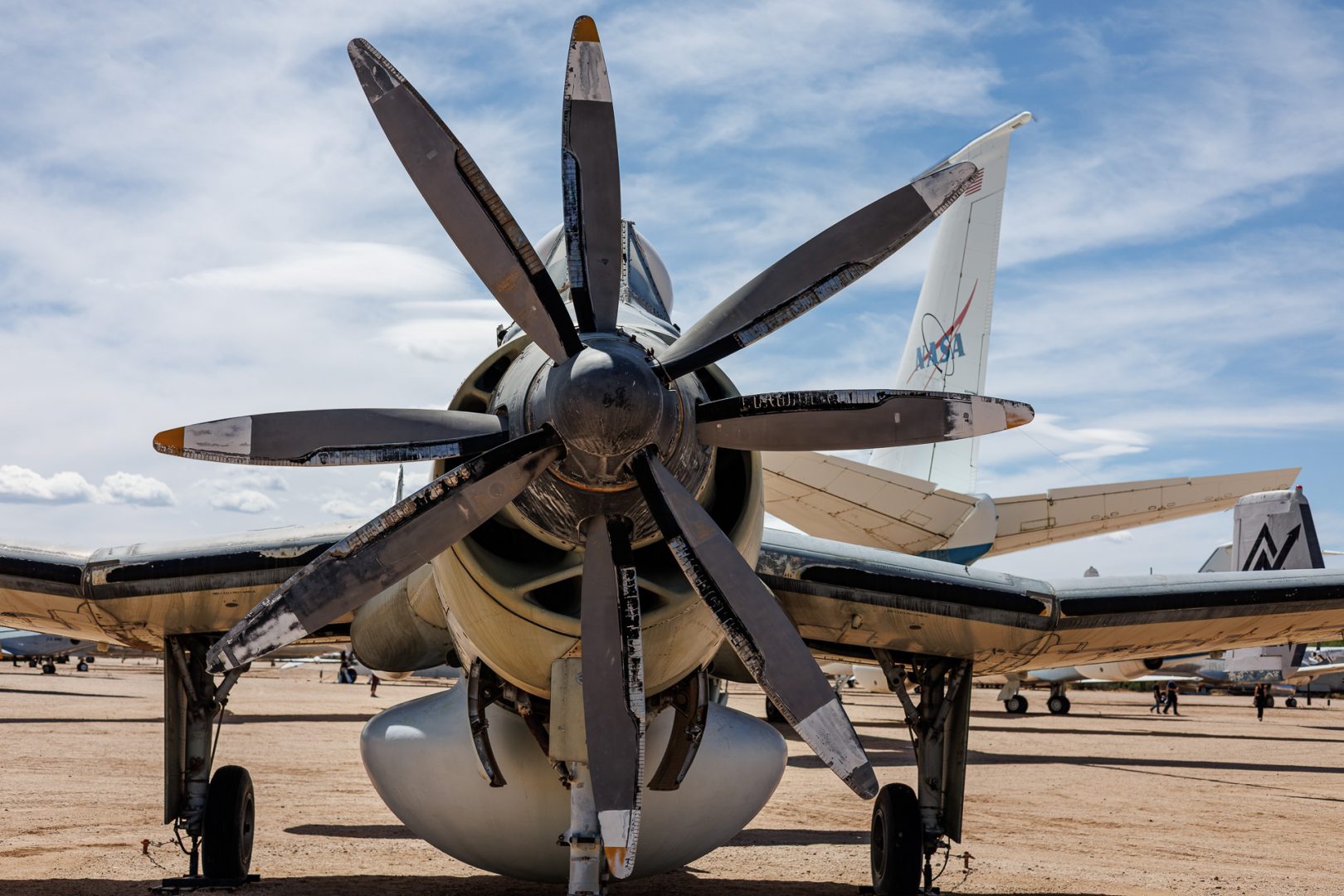 Après cette animation très ludique, nous partons à la découverte des 400 aéronefs exposés 🙂. Nous commençons par l’extérieur car le soleil n’est pas encore trop mordant en ce début de matinée 😎. Pour les protéger du soleil brûlant de l’Arizona, les cockpits des avions sont d’ailleurs obstrués par un revêtement spécial