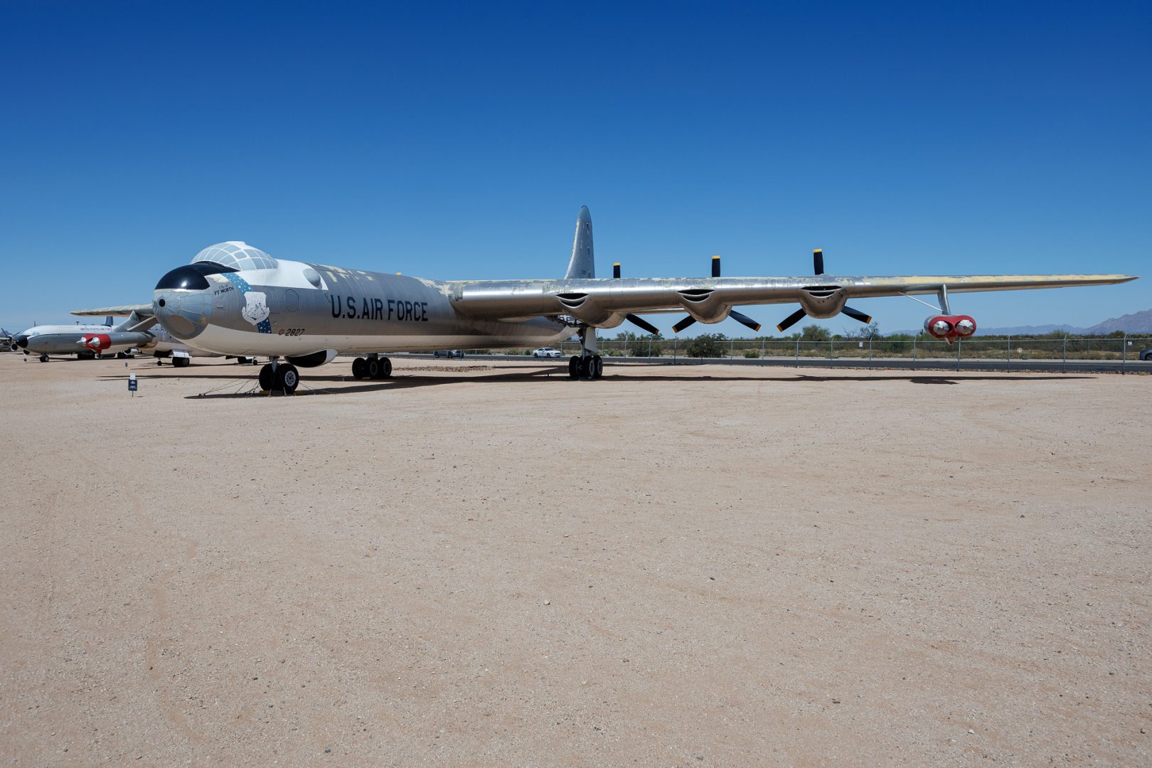Et voici un Convair B-36 Peacemaker, un autre bombardier stratégique lourd de l’armée de l’air américaine. Il s’agit du plus grand avion à moteurs à pistons jamais produit en série. Conçu dans les années 1940, il était le premier bombardier capable de transporter des armes nucléaires sans modification de sa soute. Cet appareil emblématique de la guerre froide était propulsé par six moteurs à pistons et quatre turboréacteurs, d’où son slogan « six moteurs tournent et quatre brûlent ». Il a été en service au sein de l’US Air Force de 1949 à 1959.
