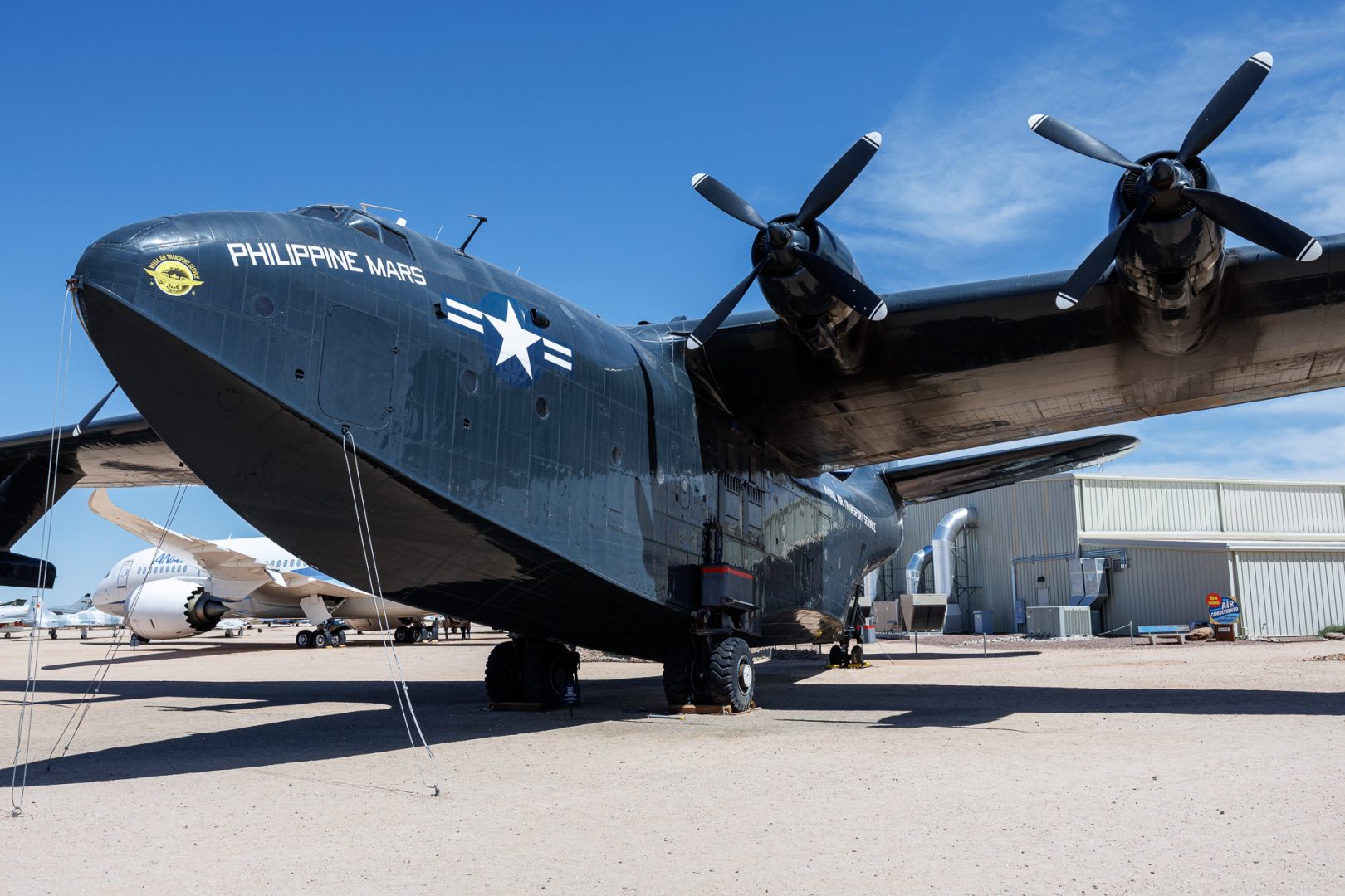 Voici le Martin JRM Mars « Philippine Mars ». Il s’agit du plus grand hydravion ayant été exploité opérationnellement. Construit pendant la Seconde Guerre mondiale, il a servi à transporter des troupes et du matériel avant d’être converti en bombardier d’eau pour lutter contre les incendies de forêt. Cet avion spécifique a effectué son dernier vol en février 2025 pour rejoindre les collections du musée.