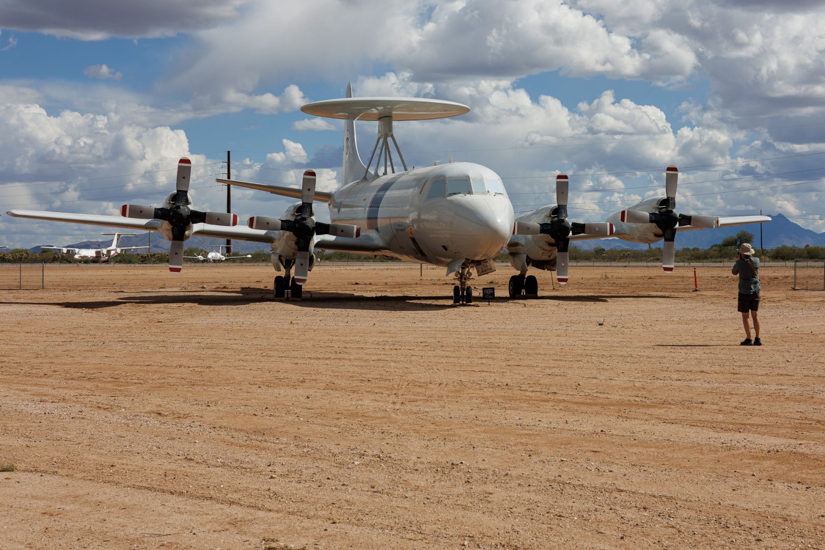 Lockheed P-3 Orion en version AEW (Airborne Early Warning), utilisé précédemment par les douanes et la protection des frontières des États-Unis (CBP) pour la surveillance. Cet avion est équipé d’un grand radar rotatif (« rotodome ») au-dessus du fuselage pour la détection aérienne et maritime à longue portée. Il est propulsé par quatre moteurs turbopropulseurs. Ce modèle spécifique était principalement utilisé pour la surveillance aérienne, la lutte contre le trafic de drogues et la détection de bateaux illicites.