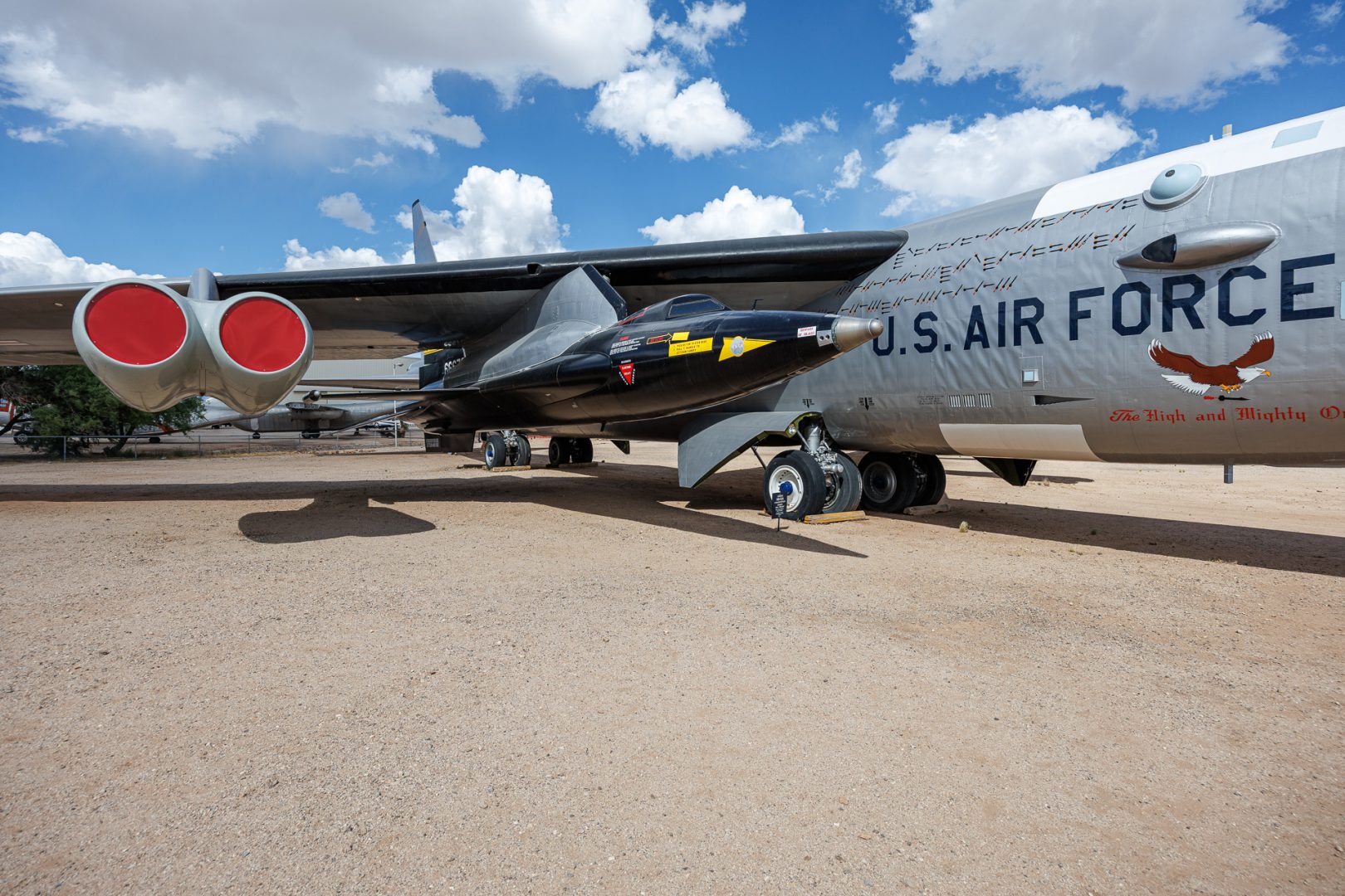 Un autre bombardier stratégique Boeing B-52 Stratofortress, précisément le modèle NB-52A portant le numéro de série 52-003, utilisé comme avion d’essai. Cet appareil a été modifié pour transporter et lancer l’avion-fusée X-15. C’est l’un des trois seuls modèles « A » jamais construits, servant exclusivement aux tests pour l’US Air Force et Boeing.