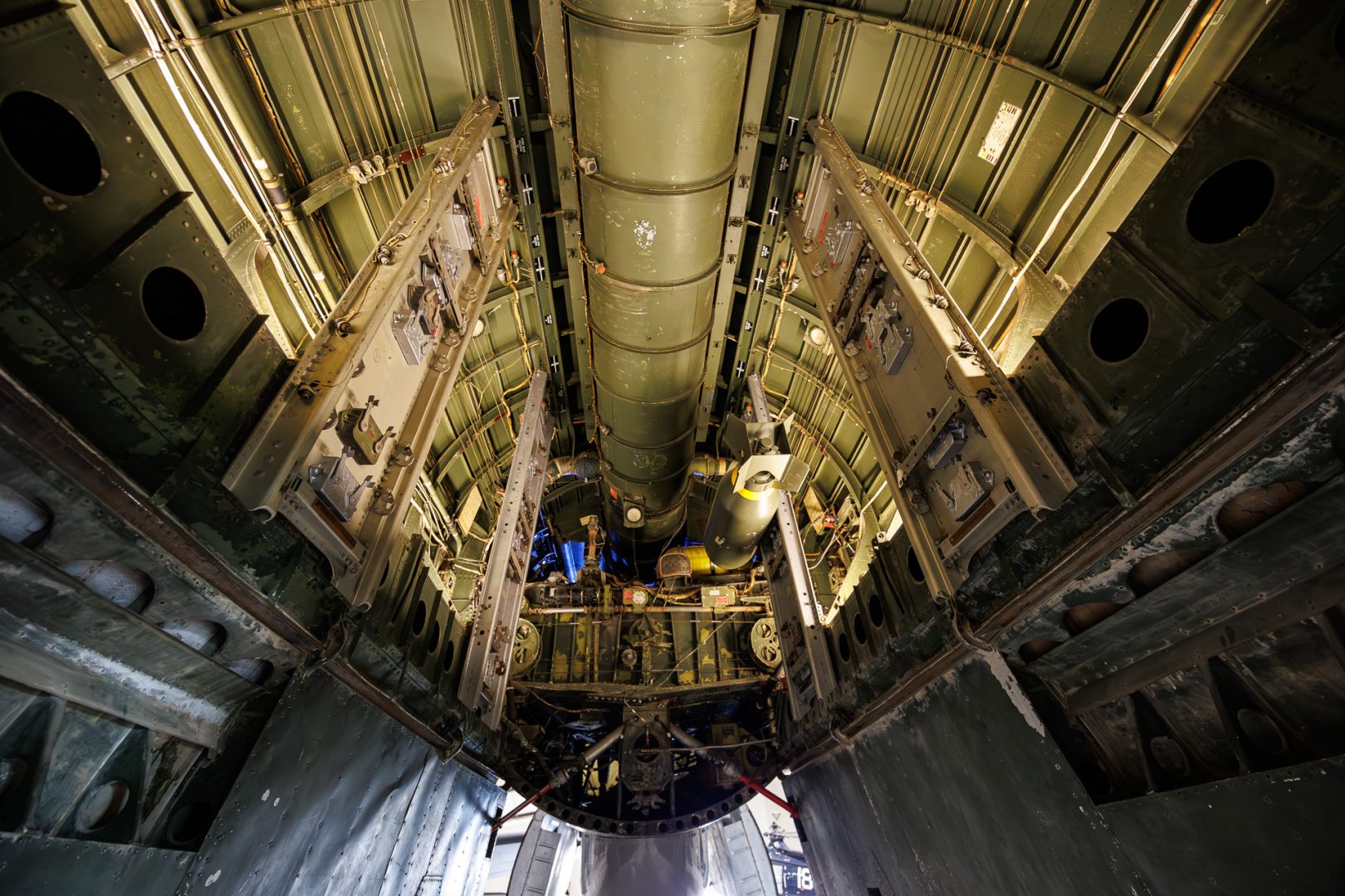 La soute ouverte permet de découvrir le système de stockage et de largage des bombes.