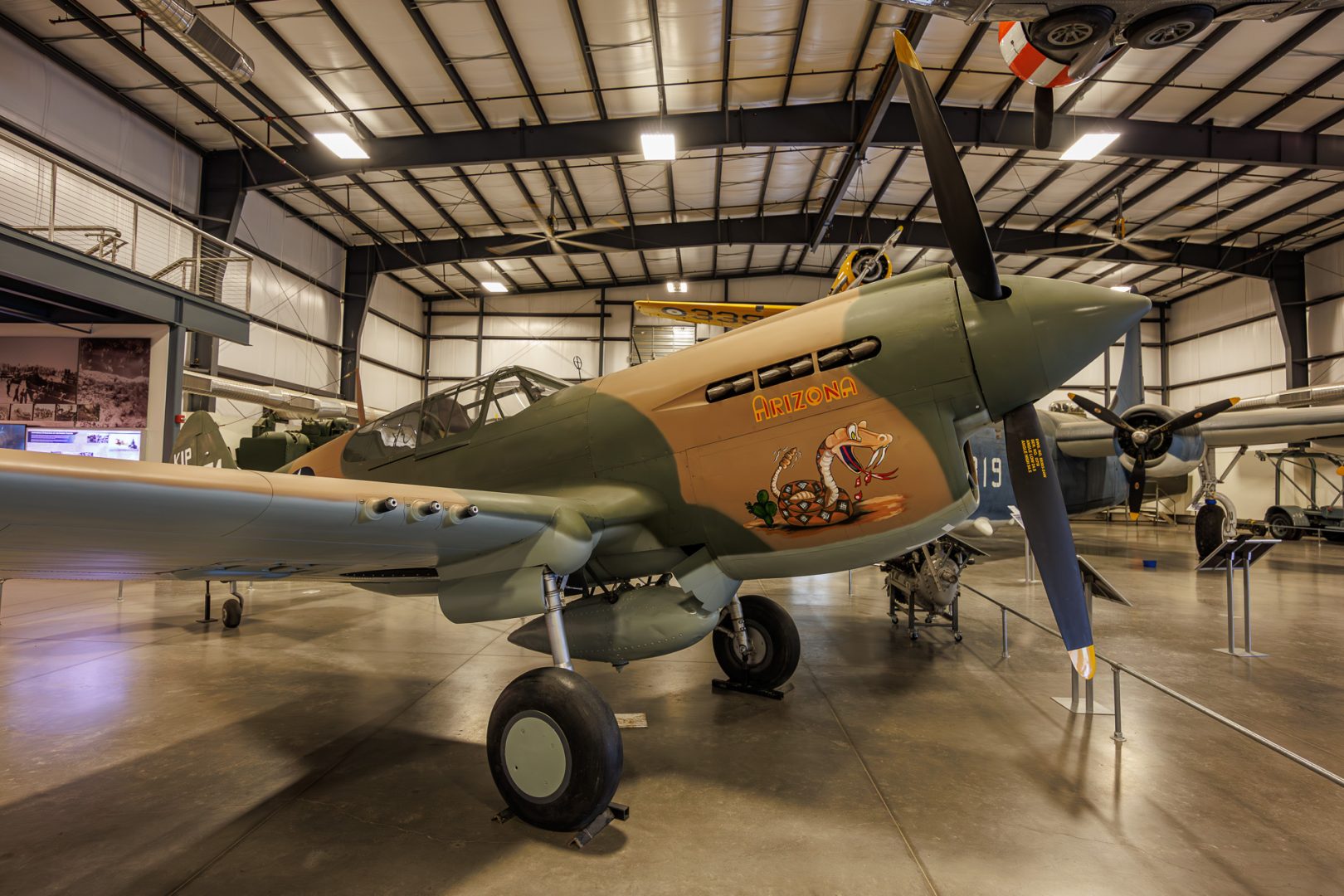 Curtiss P-40 Warhawk, un avion de chasse et d’attaque au sol américain emblématique de la Seconde Guerre mondiale. Il s’agit du troisième avion de chasse américain le plus produit pendant la guerre, célèbre pour son utilisation par les « Flying Tigers ». C’était un monoplan monomoteur entièrement métallique qui a effectué son premier vol en 1938.