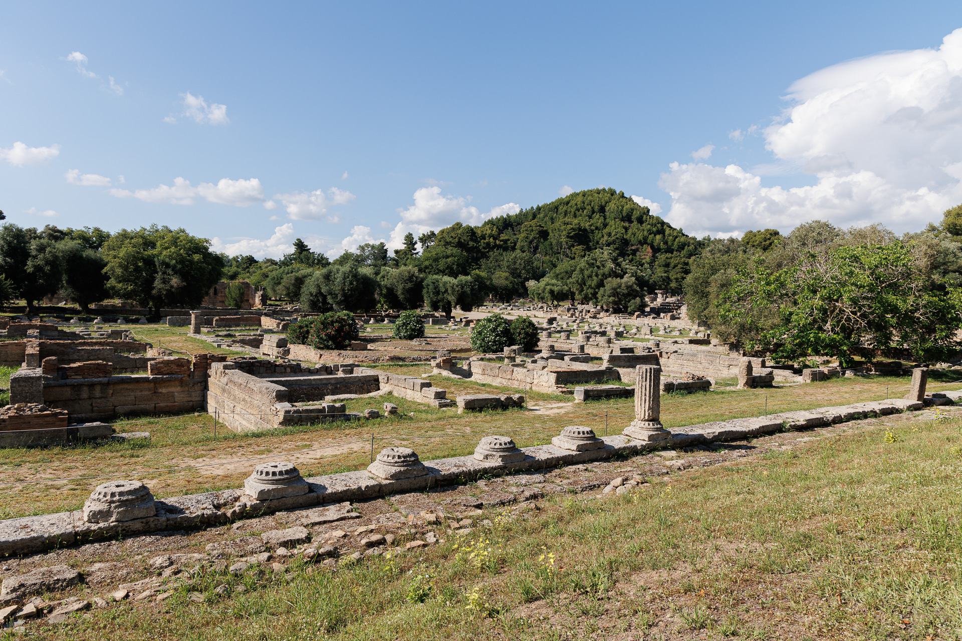 Le site d’Olympie a donc accueilli les Jeux olympiques durant l’Antiquité mais aujourd’hui encore la flamme olympique y est allumée quelques mois avant la cérémonie d’ouverture des Jeux olympiques modernes. Vue partielle du site.