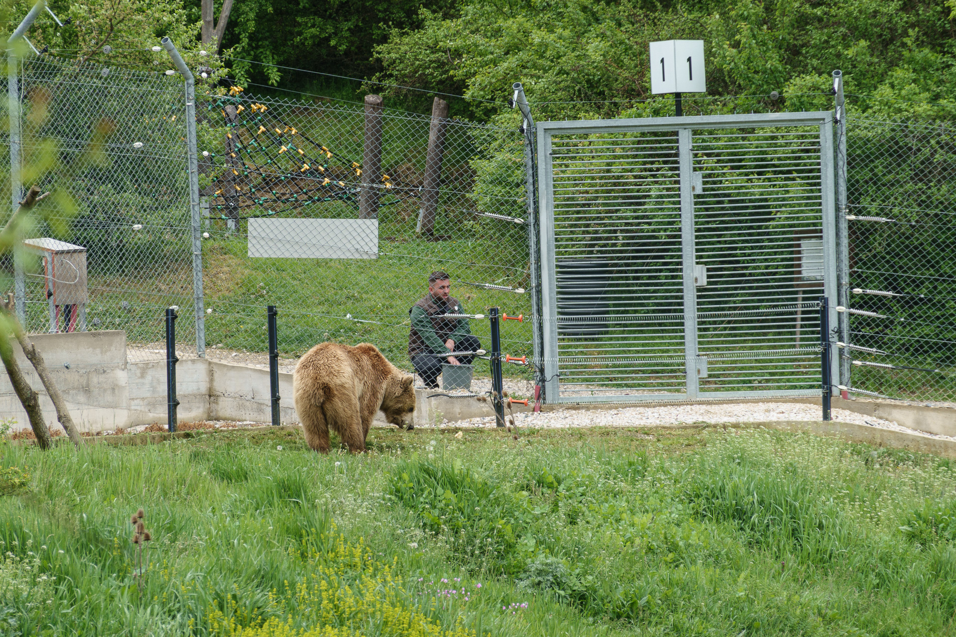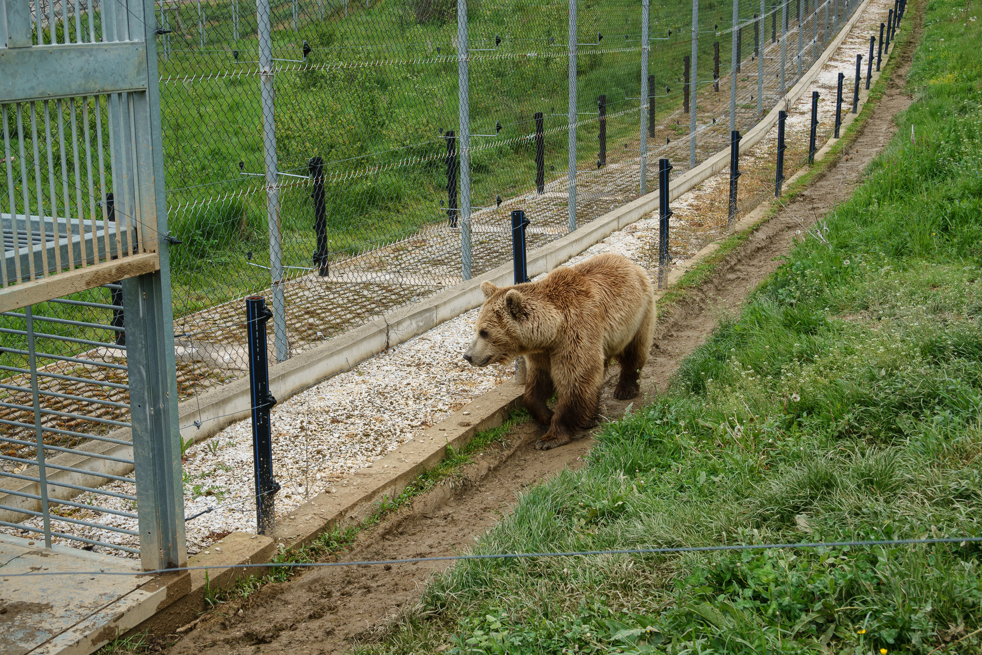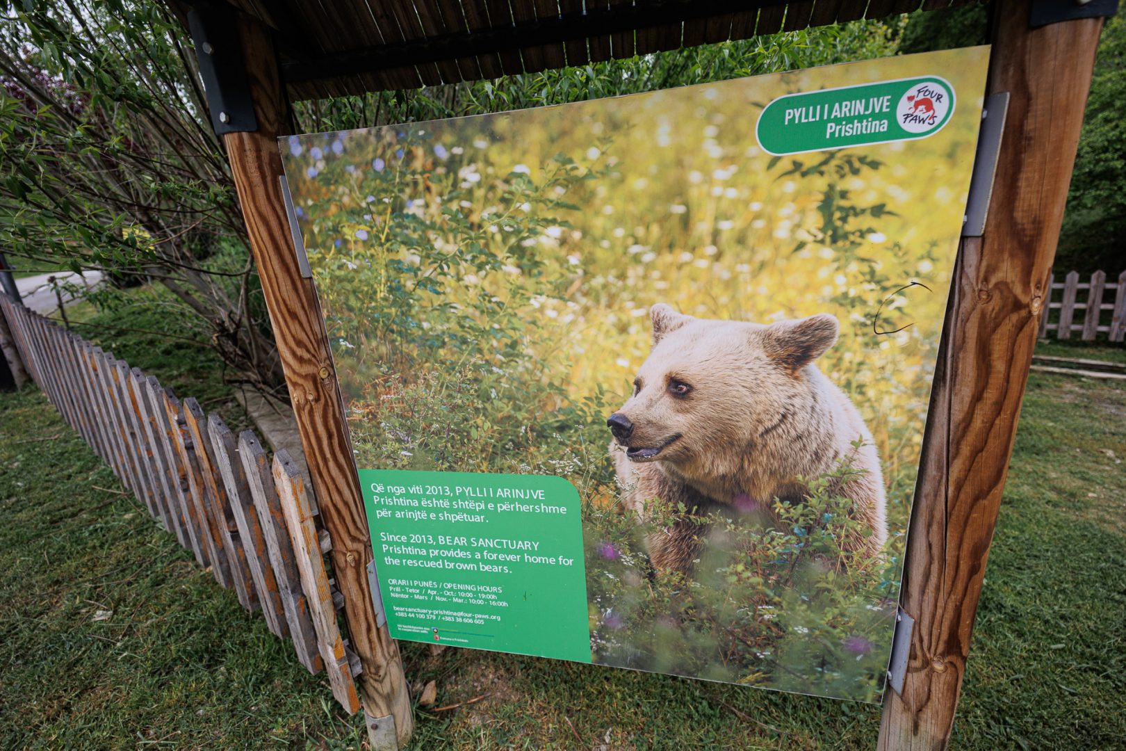 Le sanctuaire, créé en 2013 à l’initiative de l’ambassade d’Autriche au Kosovo après qu’une loi en 2010 déclara illégale la possession d’ours à titre privé, accueille aujourd’hui 20 ours issus soit de 13 restaurants à ours (= des restaurants présentant des ours en cage pour attirer les clients…), soit des petits dont la mère a été tuée et récupérés par les rangers. Quelques photos présentent les conditions de détention des animaux sauvés. Souvent quelques m2 de béton pendant 5 à 10 ans…