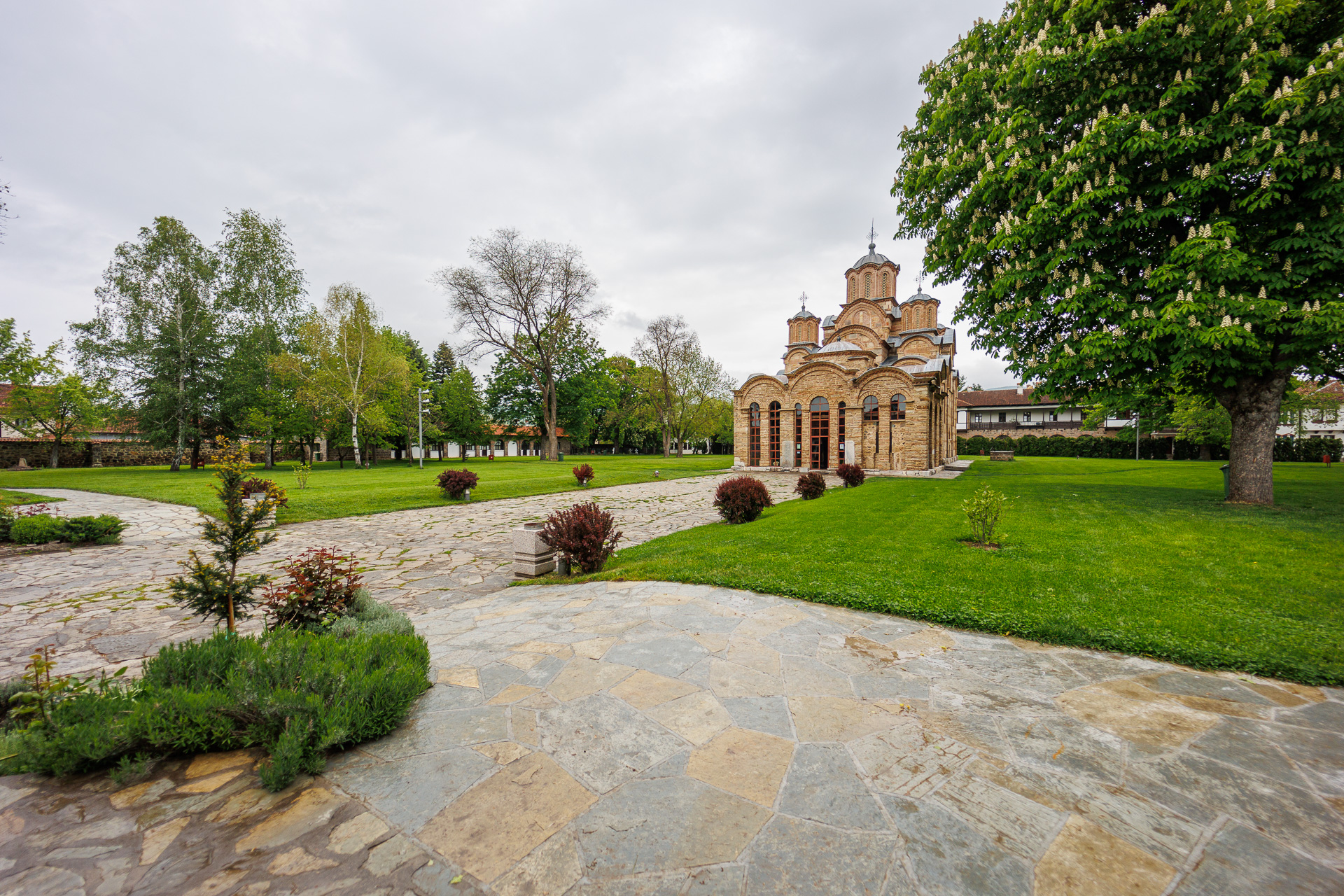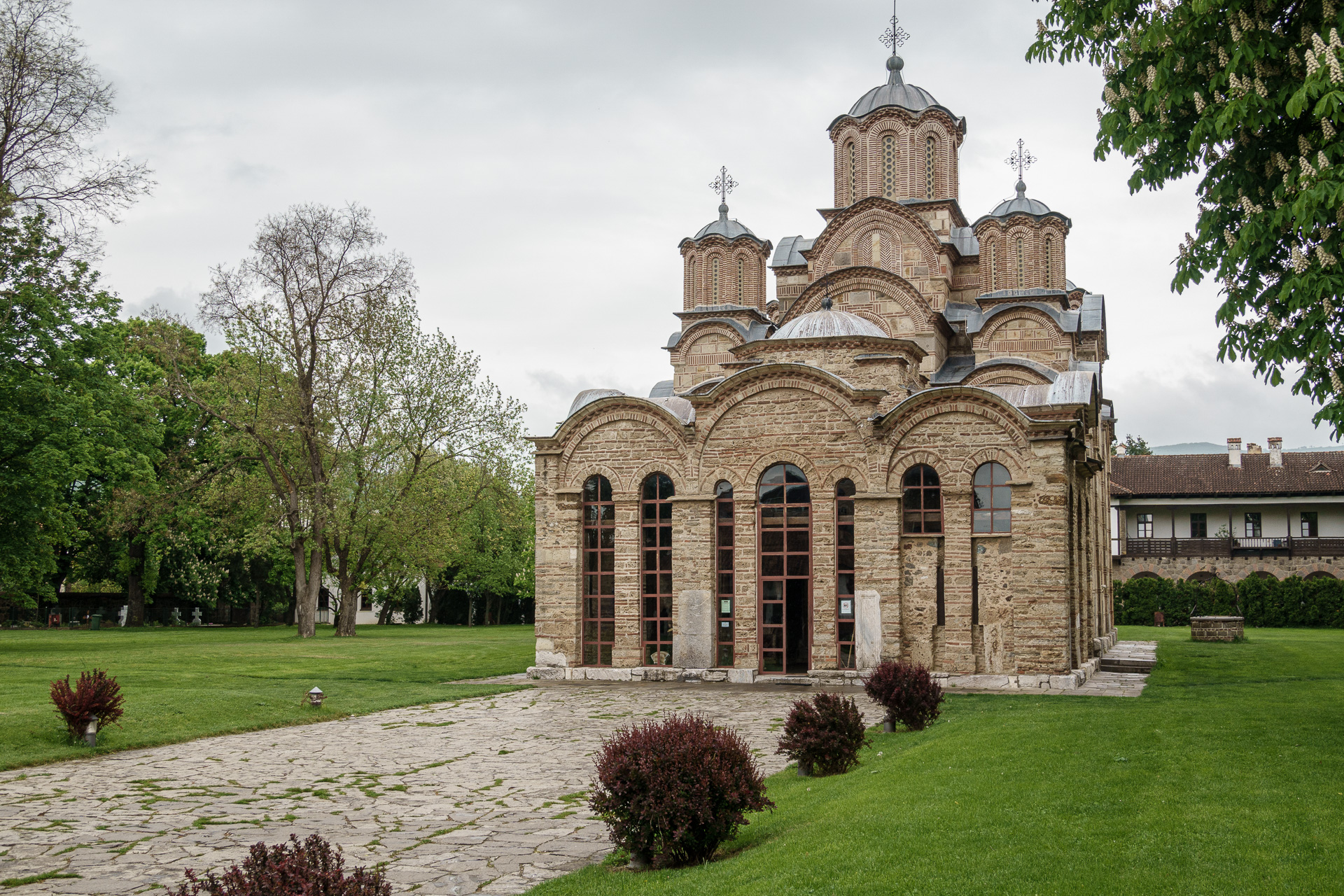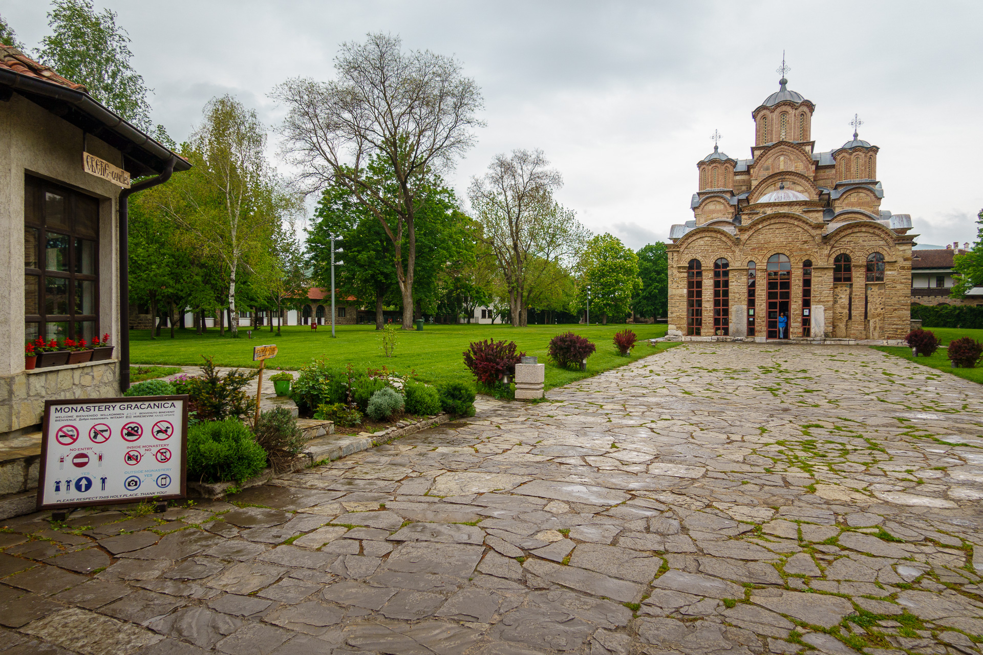 Nous prenons ensuite la route en direction du monastère de Gračanica qui est sur la Liste du patrimoine mondial de l’UNESCO depuis 2006. Il date de 1321. Comme d’habitude nous ne pouvons pas prendre de photos (cf le panneau avec toutes les interdictions 🙄) mais la sœur qui nous a vendu le livre sur le monastère a quand même accepté quelques clichés de l’extérieur 🙂
