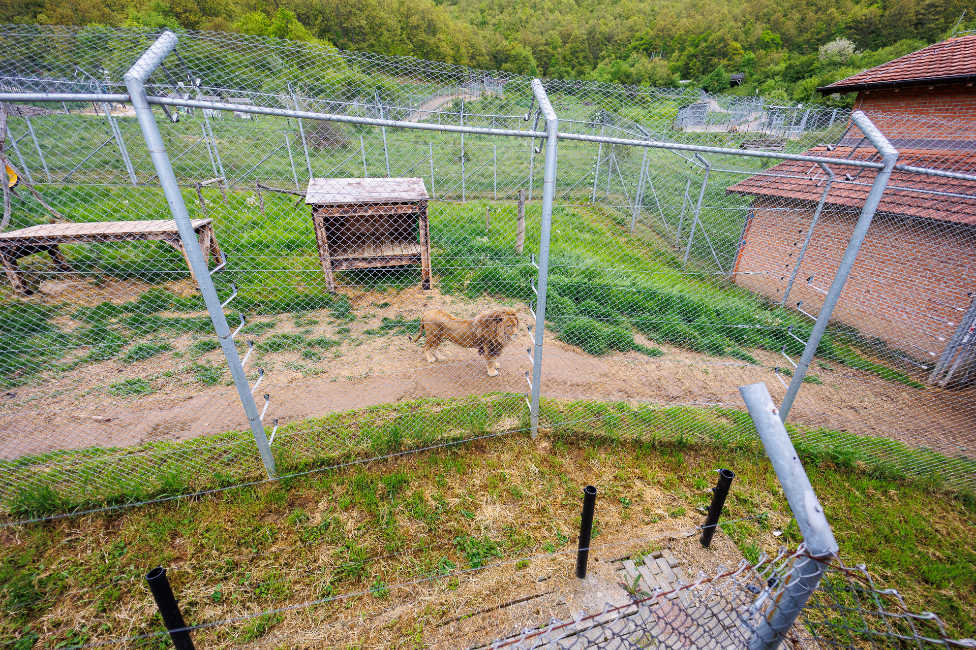 Un lion a lui aussi été sauvé et possède son propre enclos sur les 16 hectares du sanctuaire.
