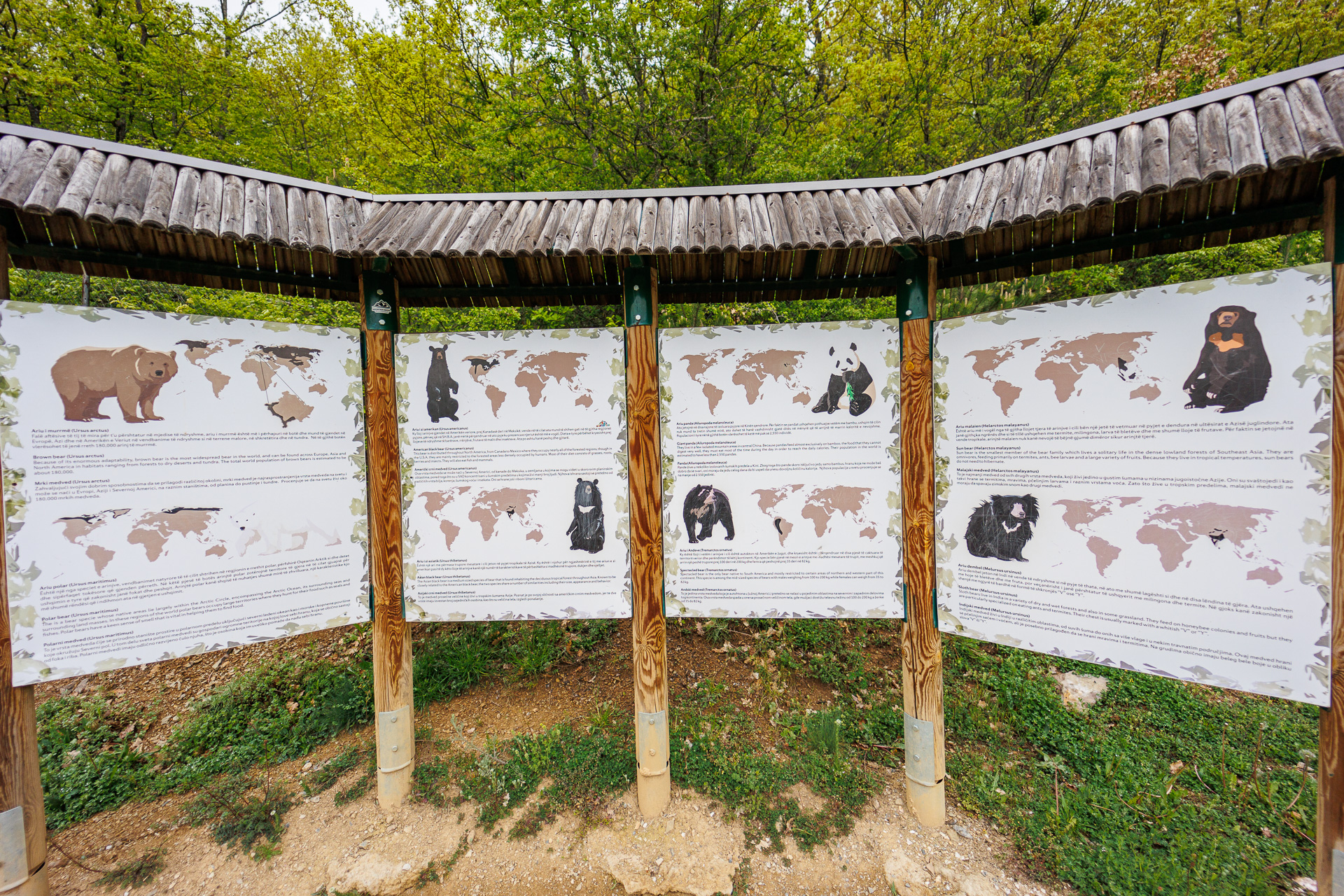 Un panneau didactique présente les 8 espèces d’ours au monde avec leur population respective et leur répartition géographique.
