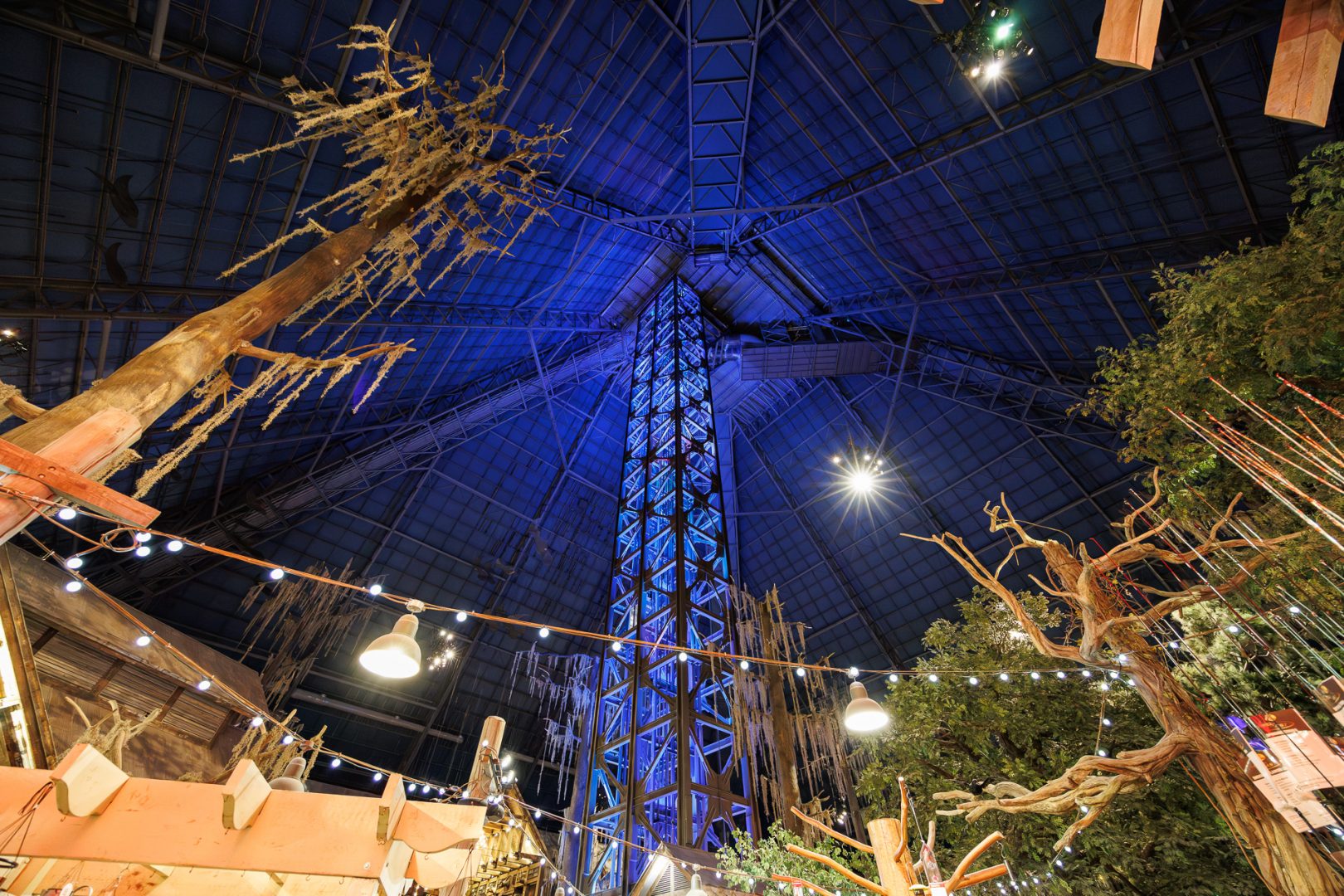 cet ascenseur qui conduit au sommet de la pyramide. C’est à la fois un magasin d’Outdoor mais également un hôtel !