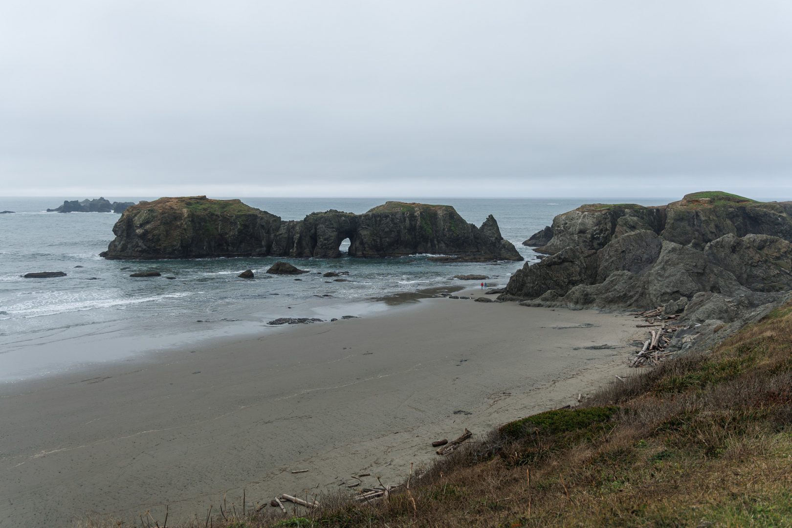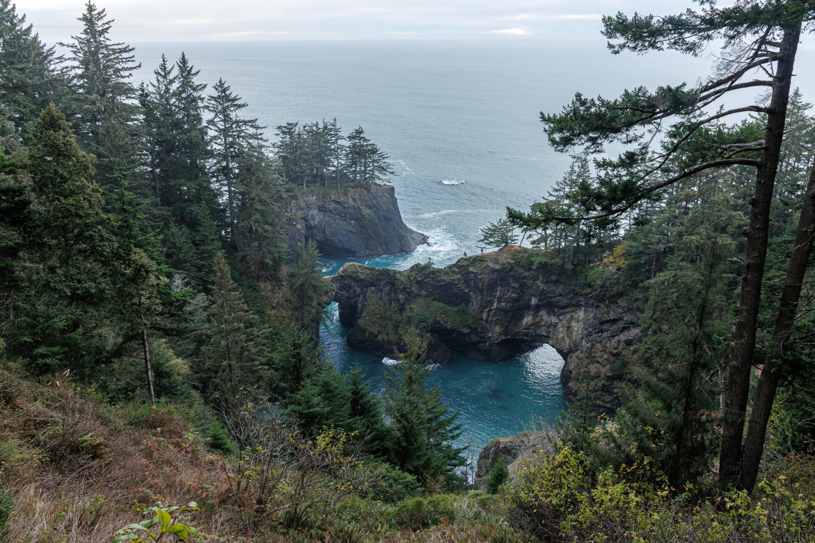 Un dernier arrêt à Natural Bridge puis nous prenons la direction de Brookings pour notre bivouac du soir. Nous ne sommes pas allés jusqu’au rocher car il est déjà 16h15 (le soleil se couche à 17h) et, comme vous le savez, nous n’aimons pas arriver sur un bivouac de nuit et… il nous faut encore trouver notre bivouac 🧐 !