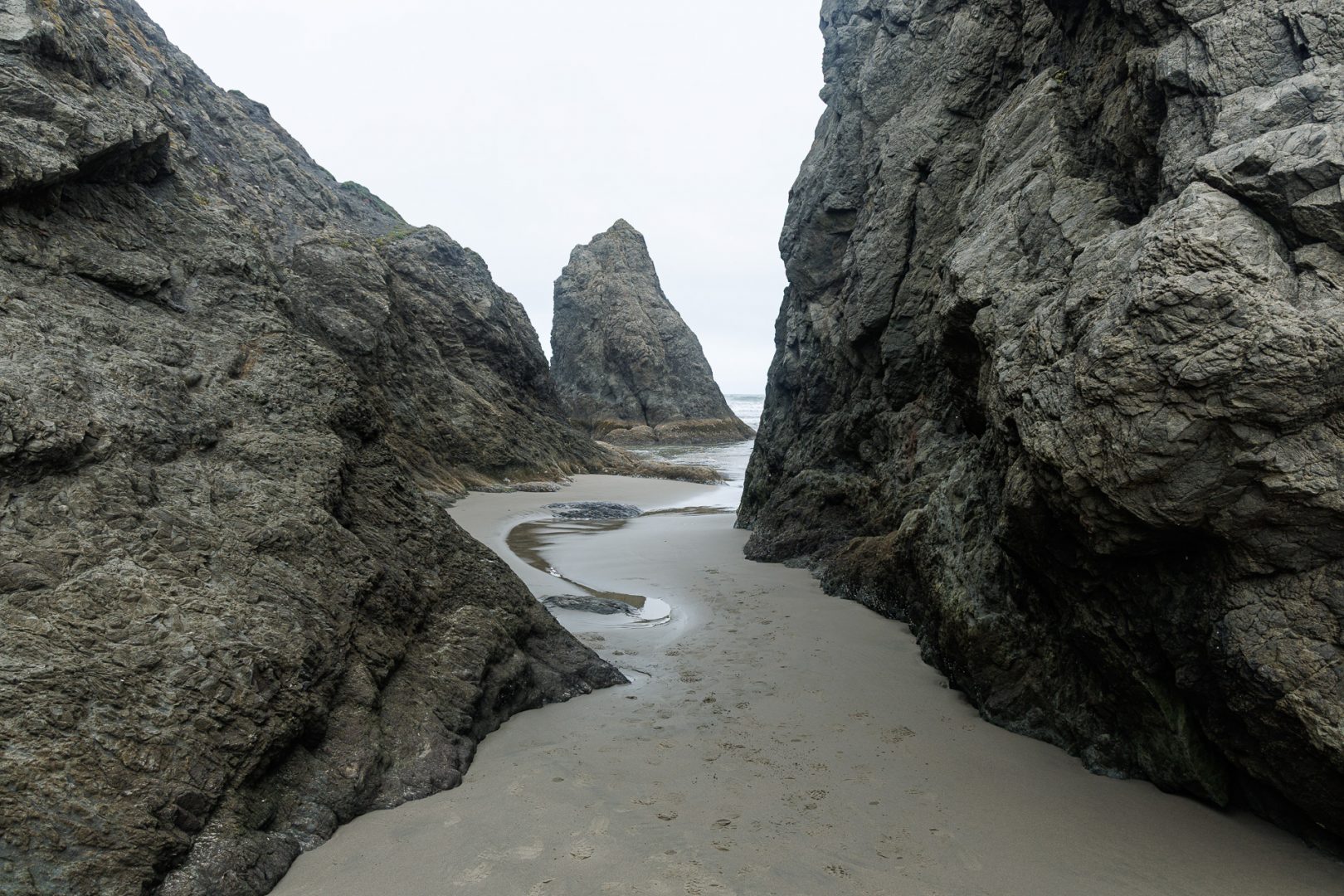 Pour rejoindre l’autre partie de la plage, nous nous sommes faufilés entre les rochers… Heureusement la marée est basse 👌.