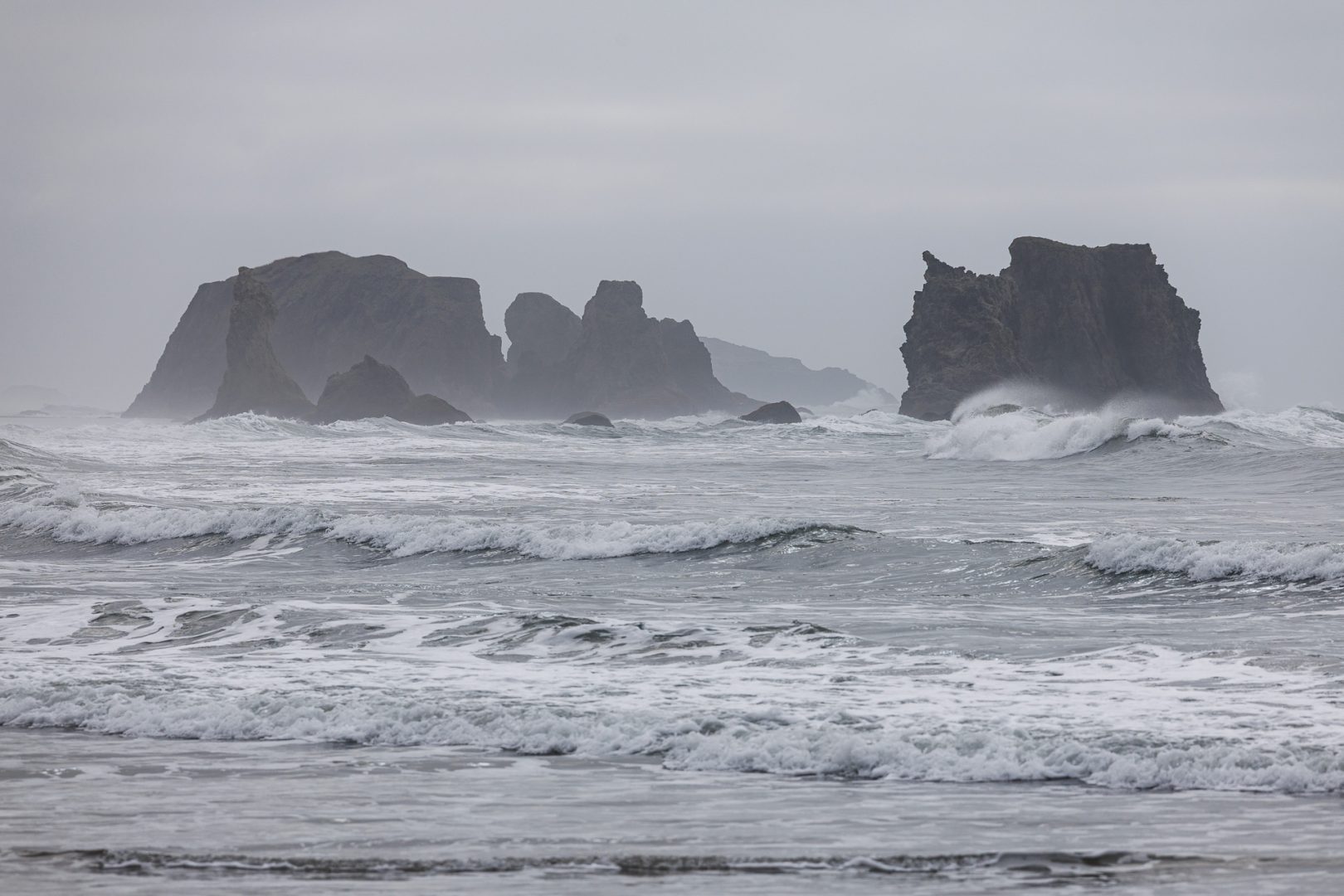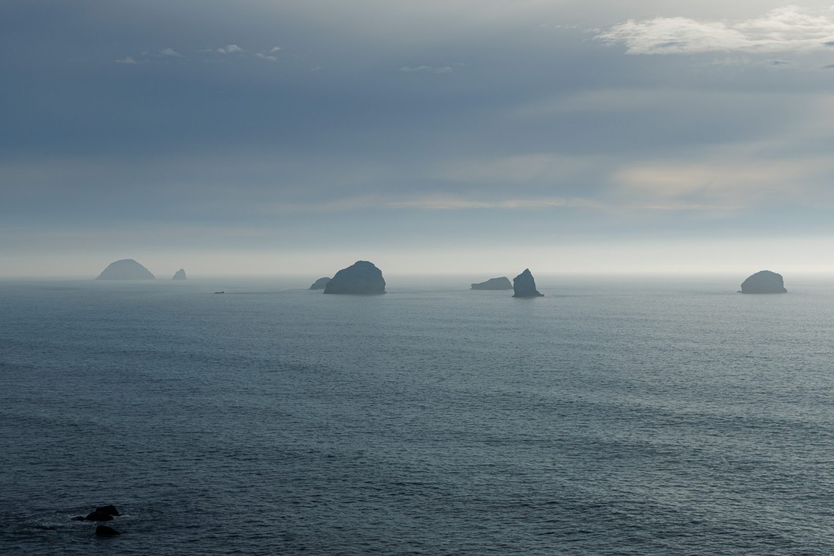 Dans la brume, ces rochers ressemblent à des monstres marins qui émergent des vagues. La brume crée une ambiance qui permet tous les délires 🤣.