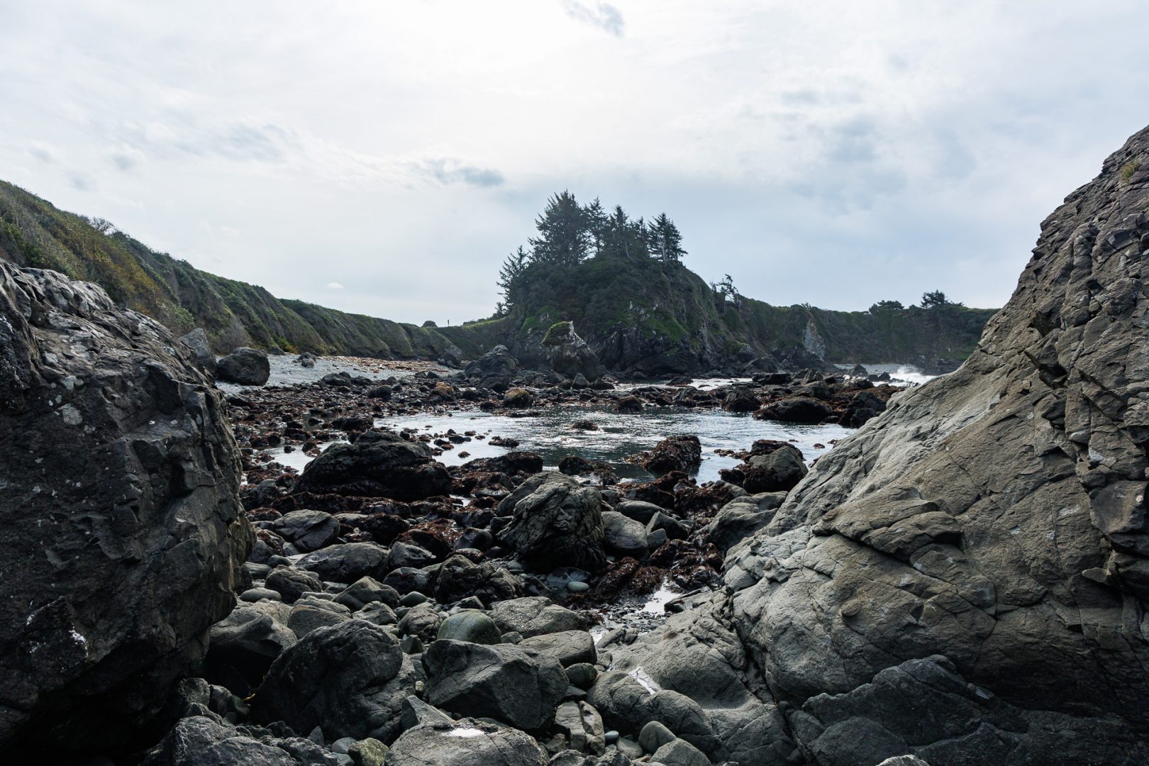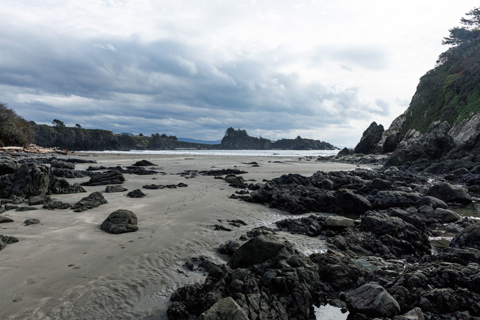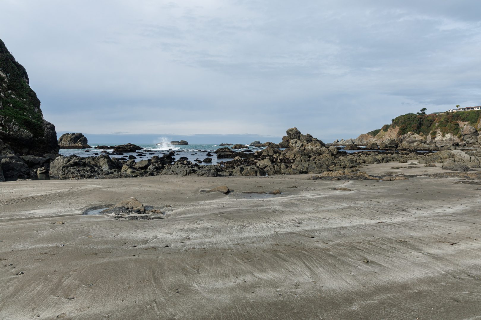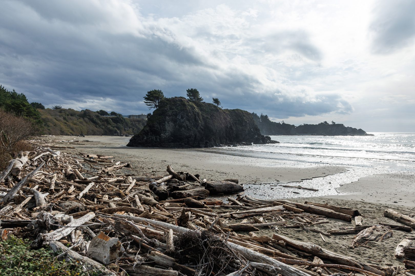 218760 km : Avant de quitter Brookings, nous irons faire un petit tour sur la plage. Encore, nous direz-vous 🙄 ? On ne se lasse pas de ces plages de sable avec ces gros cailloux et ces vagues énormes… C’est trop beau 🤩 ! Nous laissons le camion et nous nous rendons à pied à la plage de Mill Beach. Ce matin, c’est marée basse, nous verrons surtout le sable, les gros rochers et les tonnes de bois flotté.
