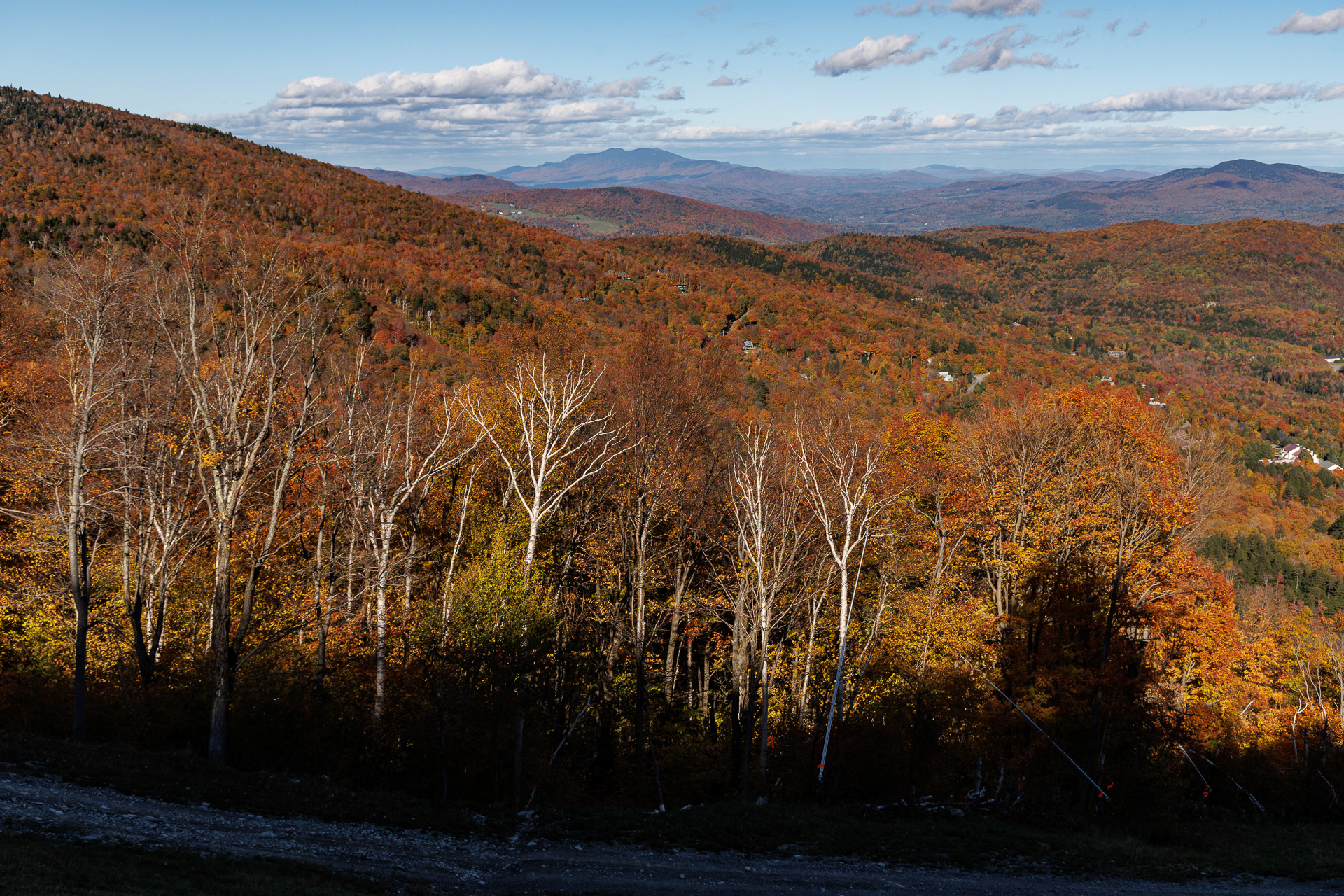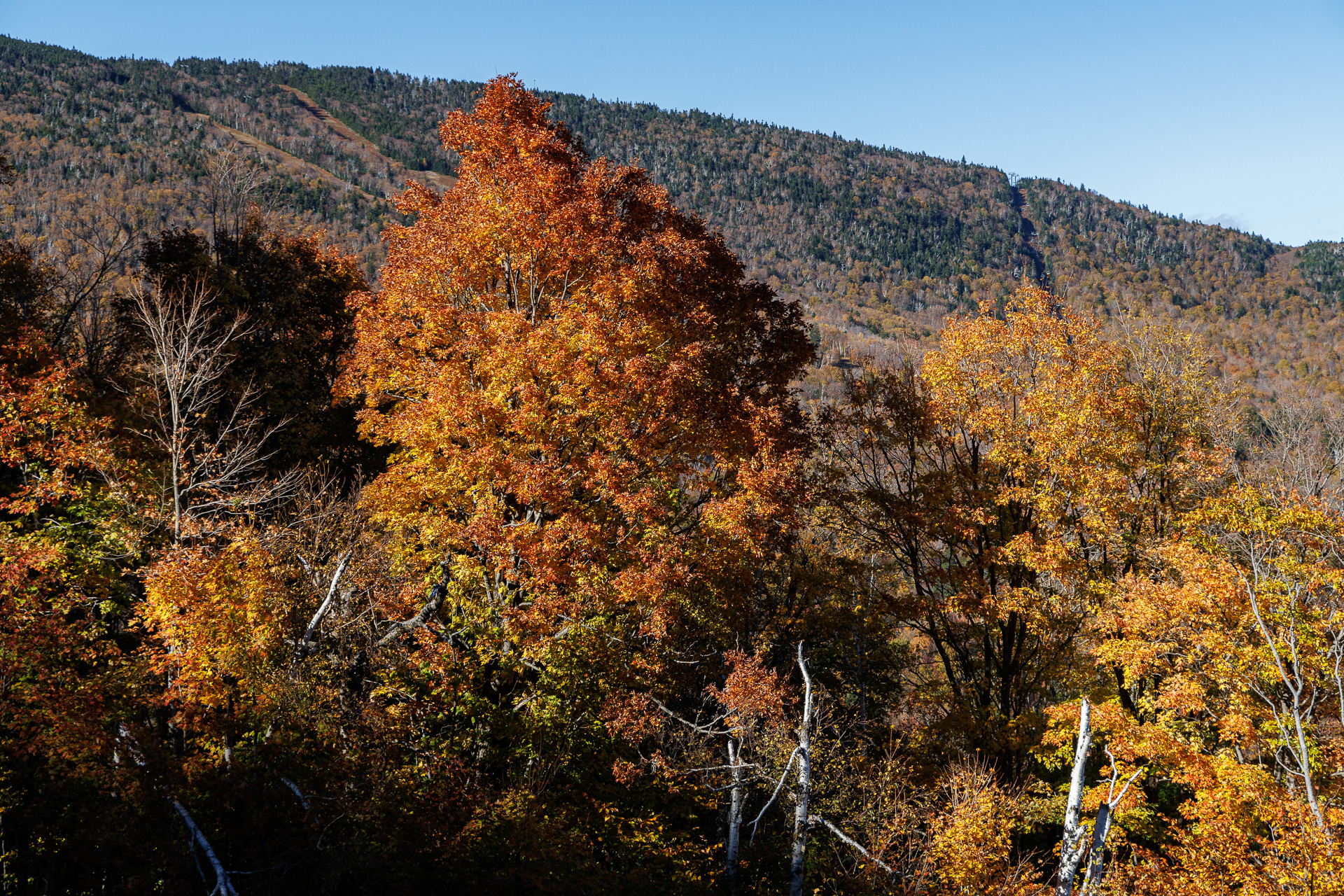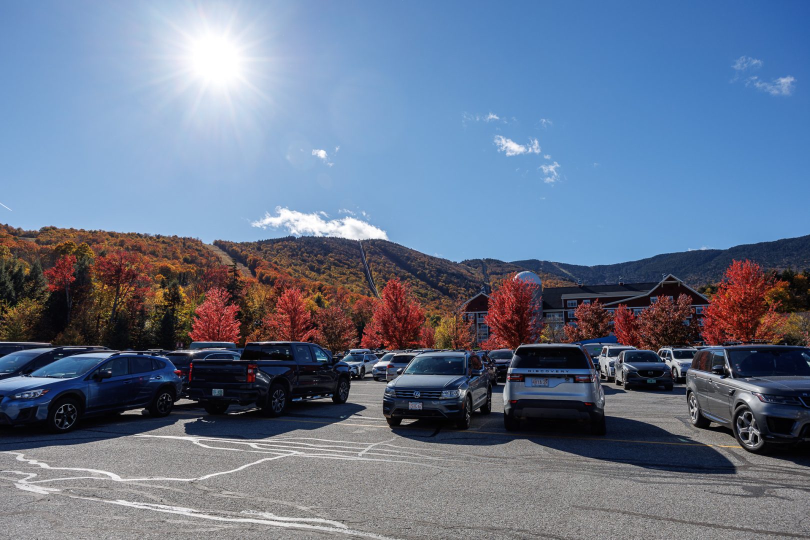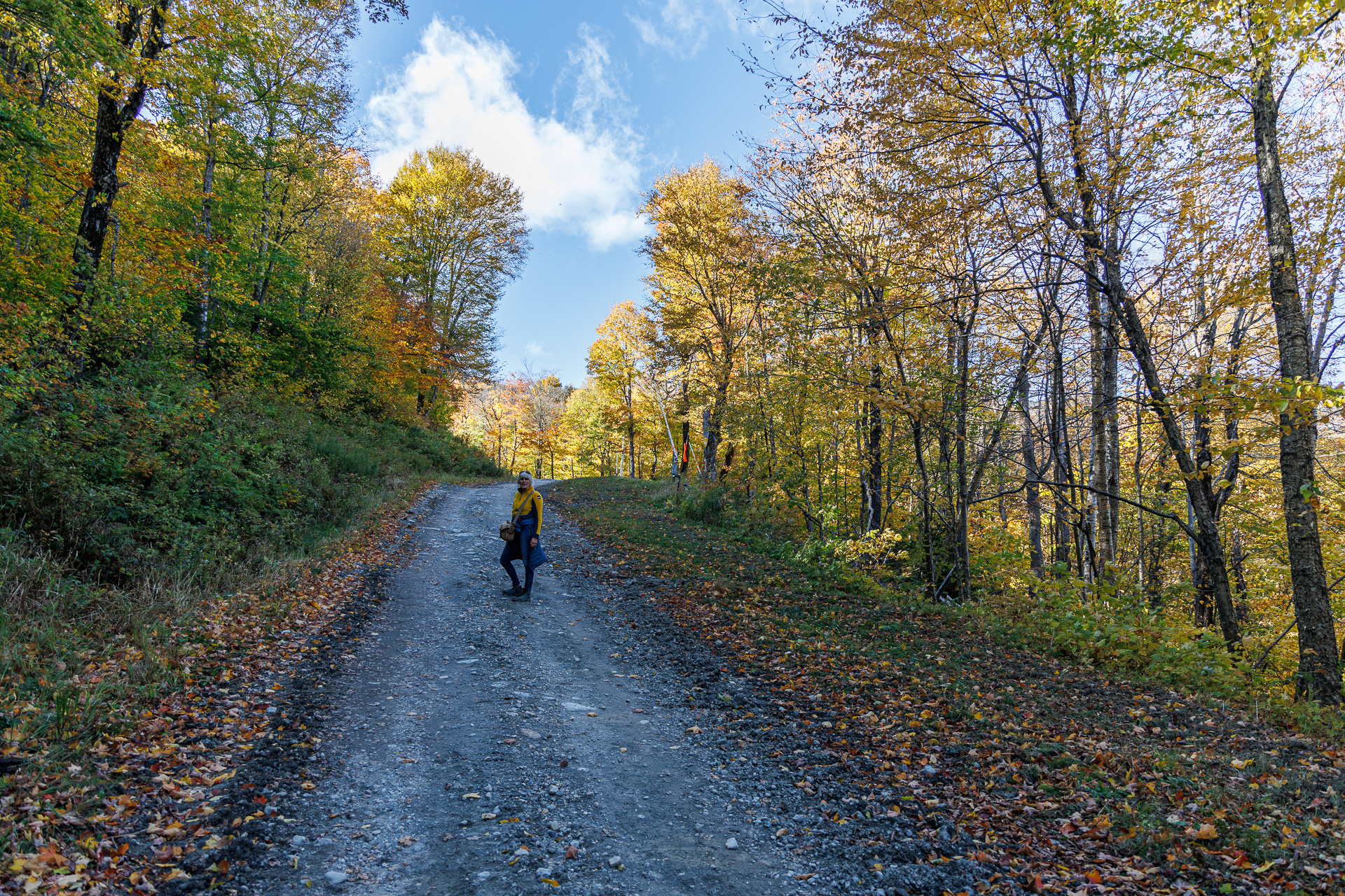 Notre prochain arrêt sera la station de ski de Sugarbush où nous avons prévu de faire une petite randonnée. A peine arrivés, les belles couleurs rouges des arbres nous donnent un avant-goût des paysages qui nous attendent 🤩… tout là-haut !