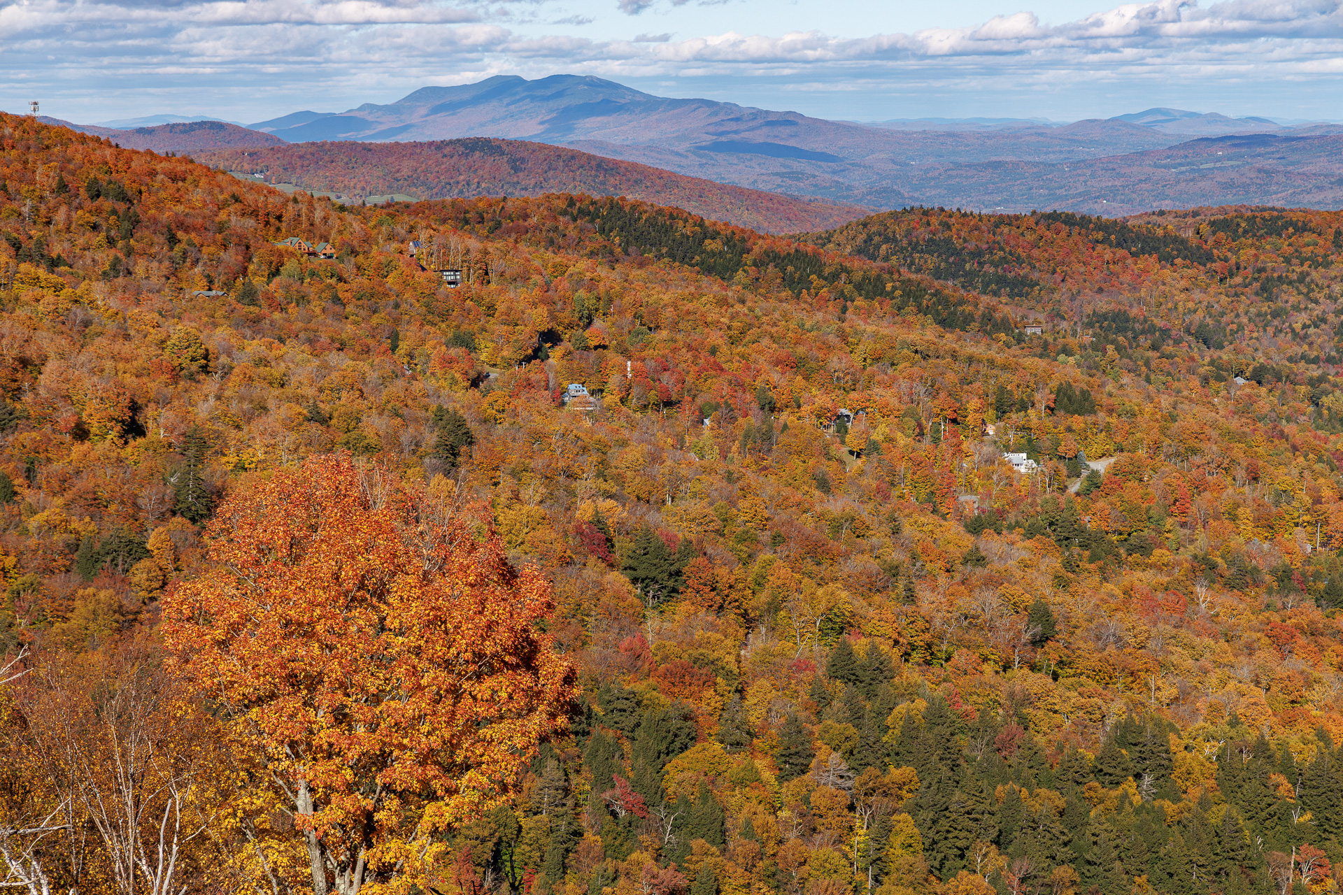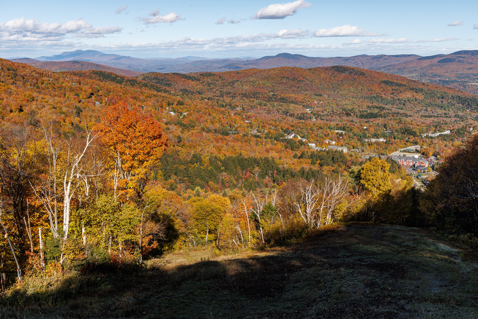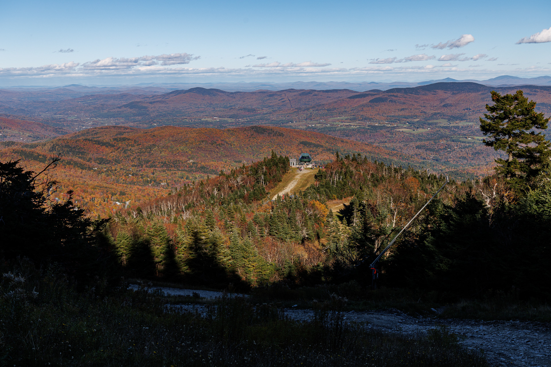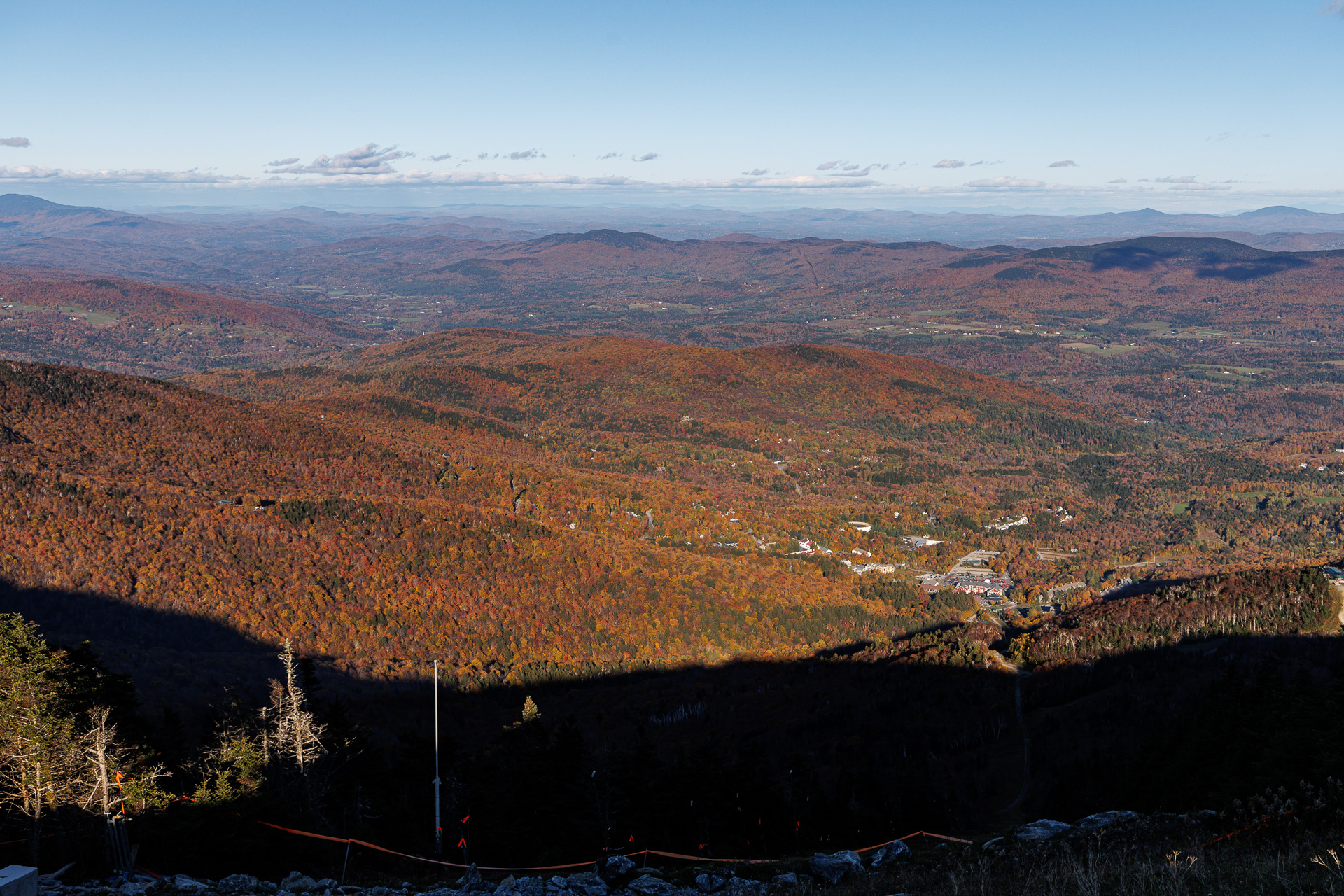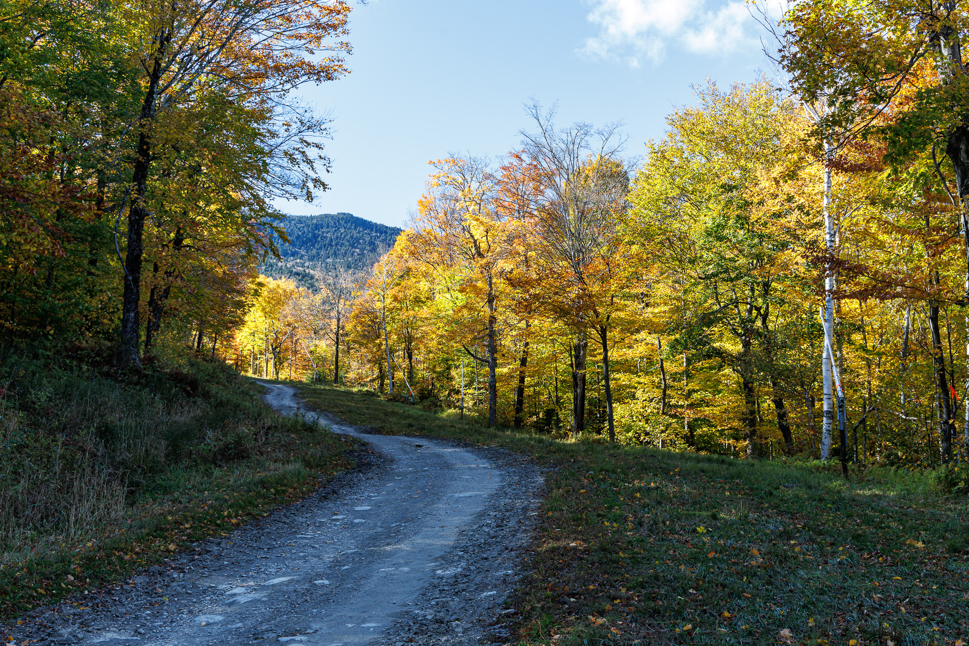 Notre prochain arrêt sera la station de ski de Sugarbush où nous avons prévu de faire une petite randonnée. A peine arrivés, les belles couleurs rouges des arbres nous donnent un avant-goût des paysages qui nous attendent 🤩… tout là-haut !