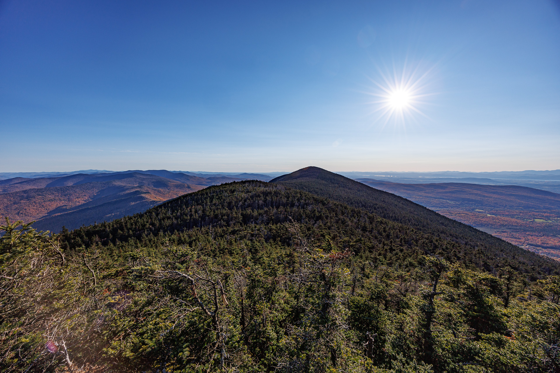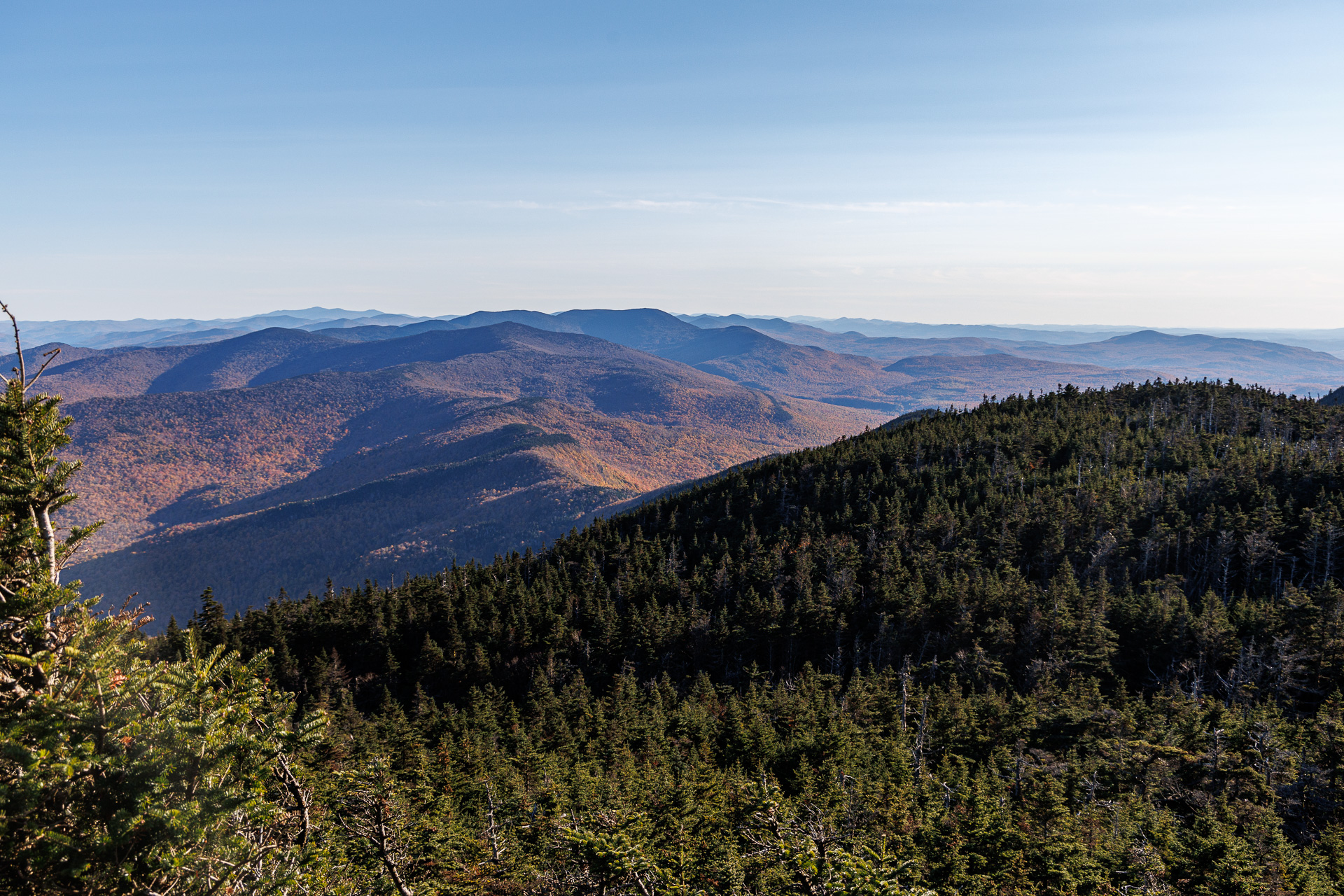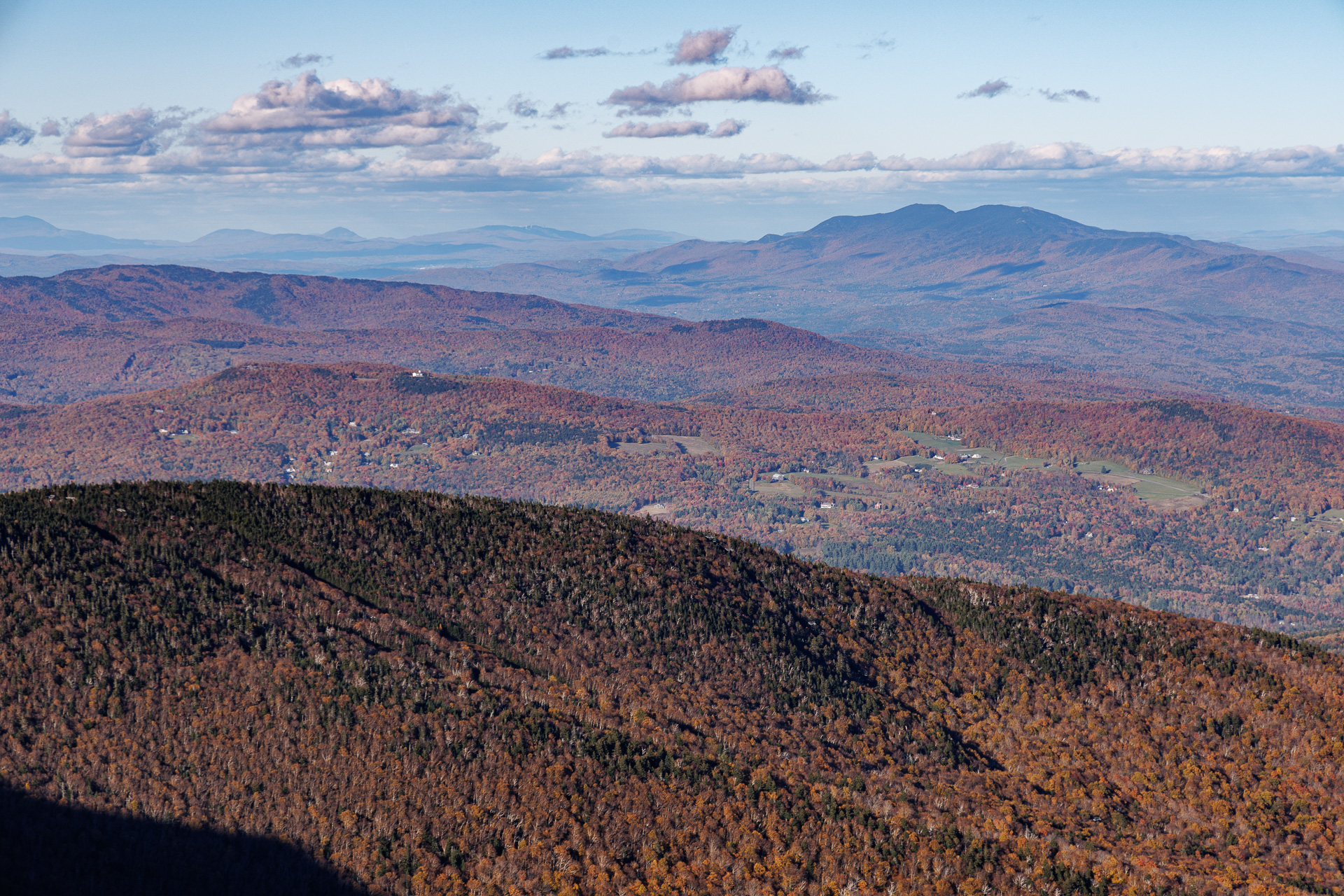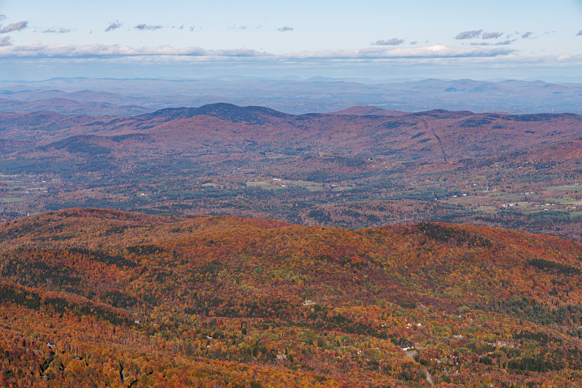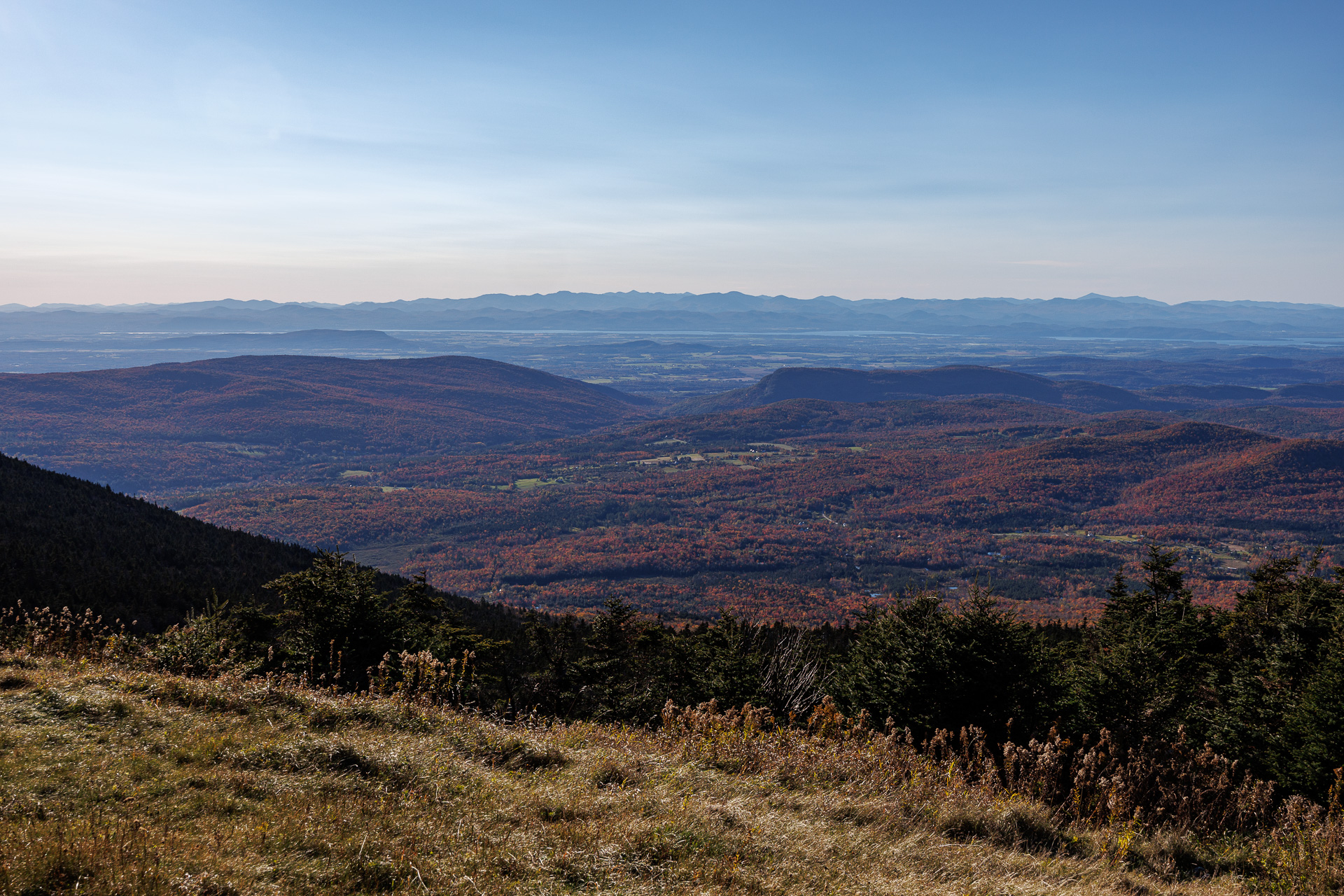 Après 2h30 de marche, 750 m de dénivelé et une pente moyenne de 15% sur tout le trajet… la récompense est là  🤩 ! C’est MAGNIFIQUUEEEE ! Du sommet, nous avons une vue à 360 degrés sur les Green Moutains.