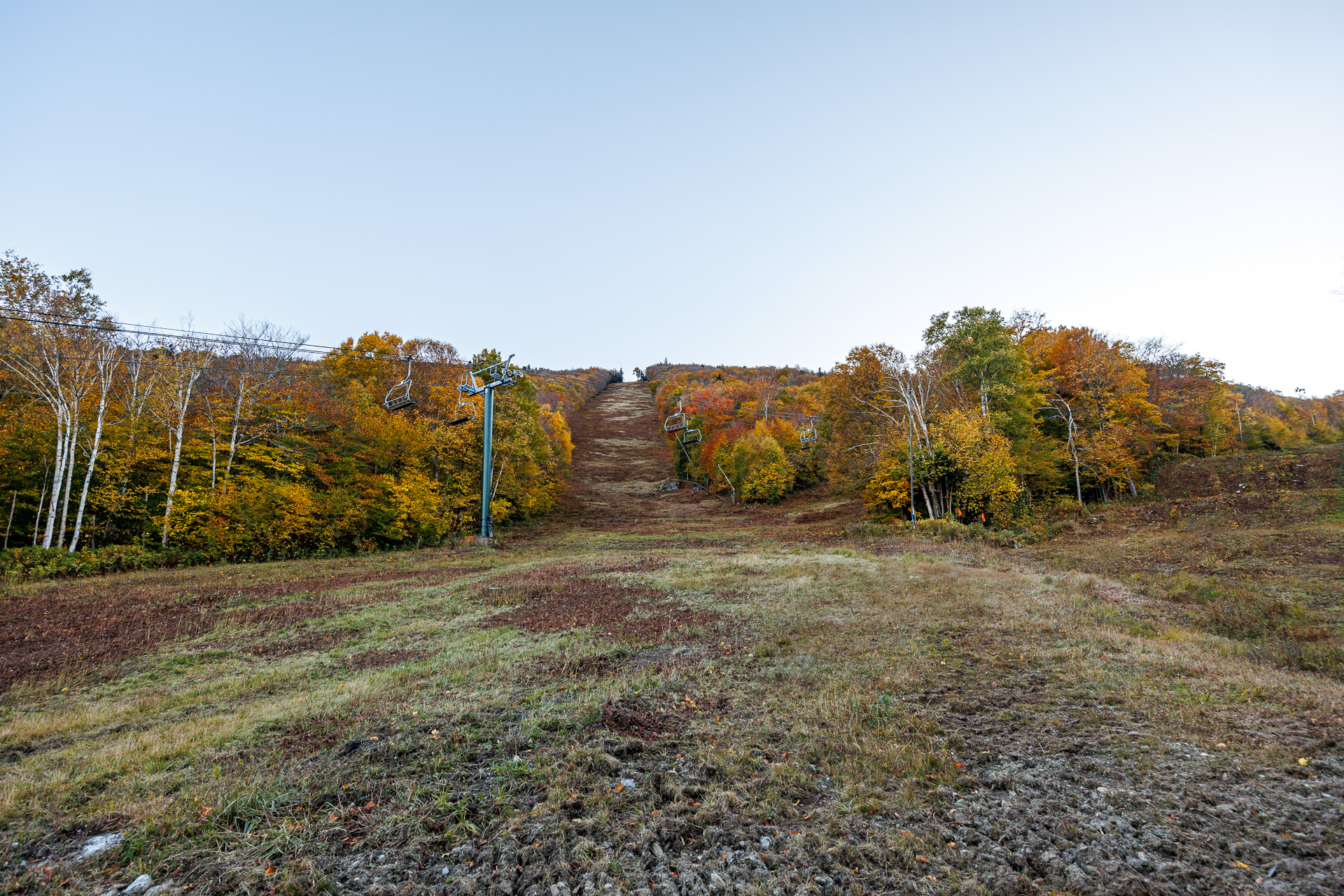 Au début, nous avions prévu de prendre les télésièges pour nous rendre au sommet et de poursuivre ensuite à pied le long des crêtes, de sommet en sommet. Le prix de la montée en télésiège est de 35$ (soit 32€) 🤪 par personne et cela nous a fait changer d’avis, surtout que le télésiège ne monte pas jusqu’en haut (Pour information, en hiver le prix du forfait journée est de 240$ soit environ 215€ 😭😭😭)