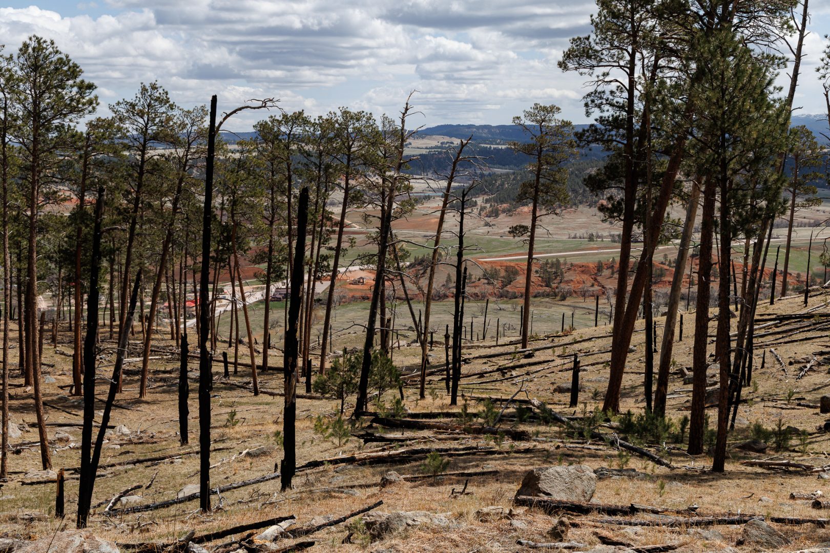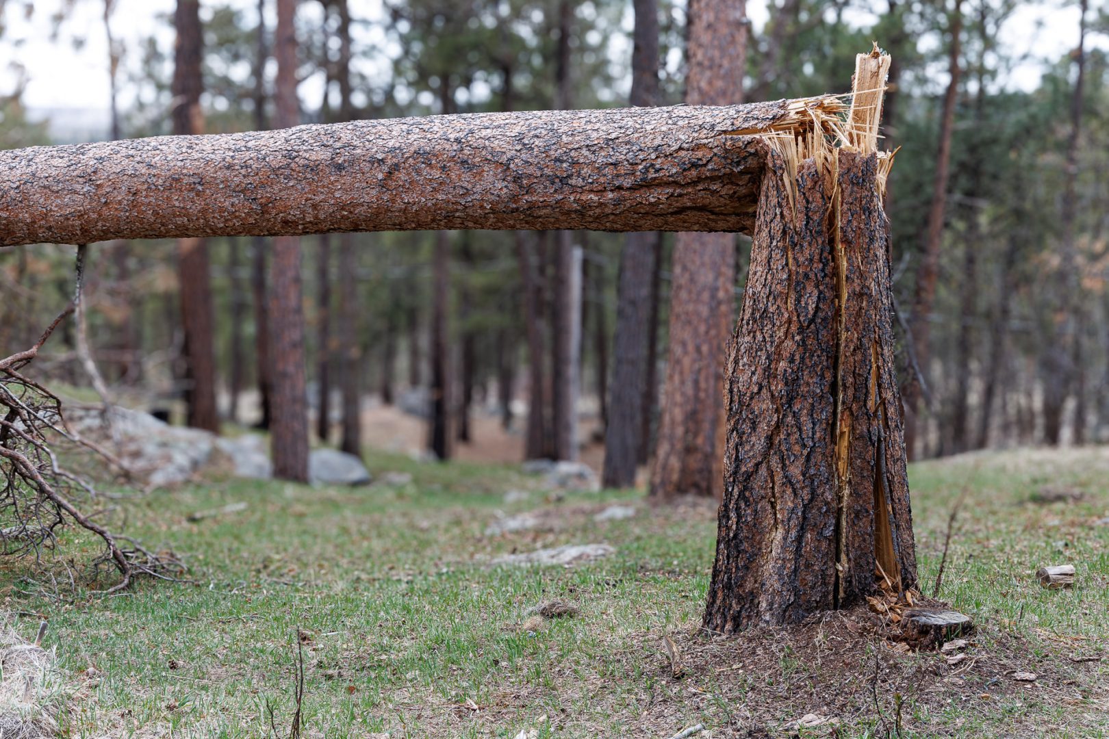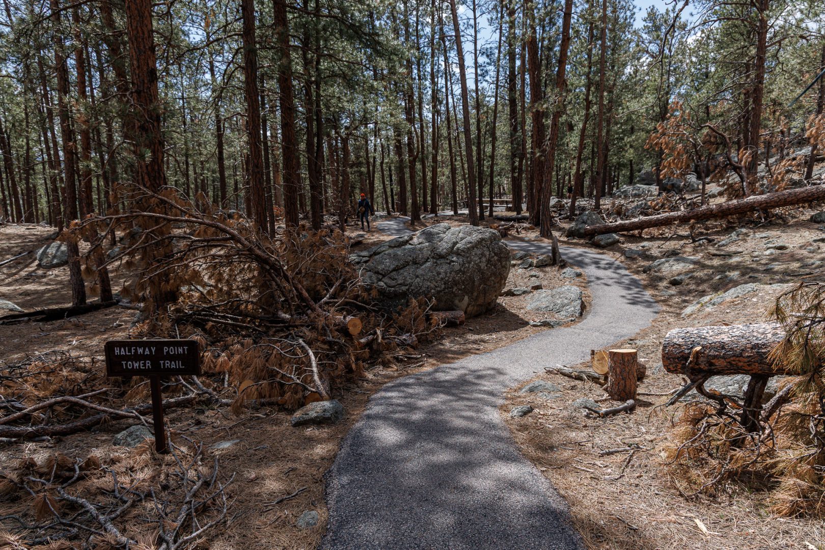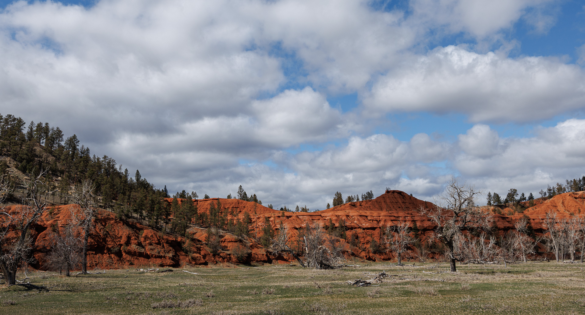 200002 km : Nous quittons notre bivouac et nous nous dirigeons vers Devil’s Tower National Monument. Devil’s Tower (la Tour du Diable) est une formation géologique étonnante qui surgit de la prairie entourant les Black Hills. C’est un monolithe naturel dont le sommet est à 1558 m. La hauteur du surplomb volcanique est de 386 m au-dessus des terres environnantes.