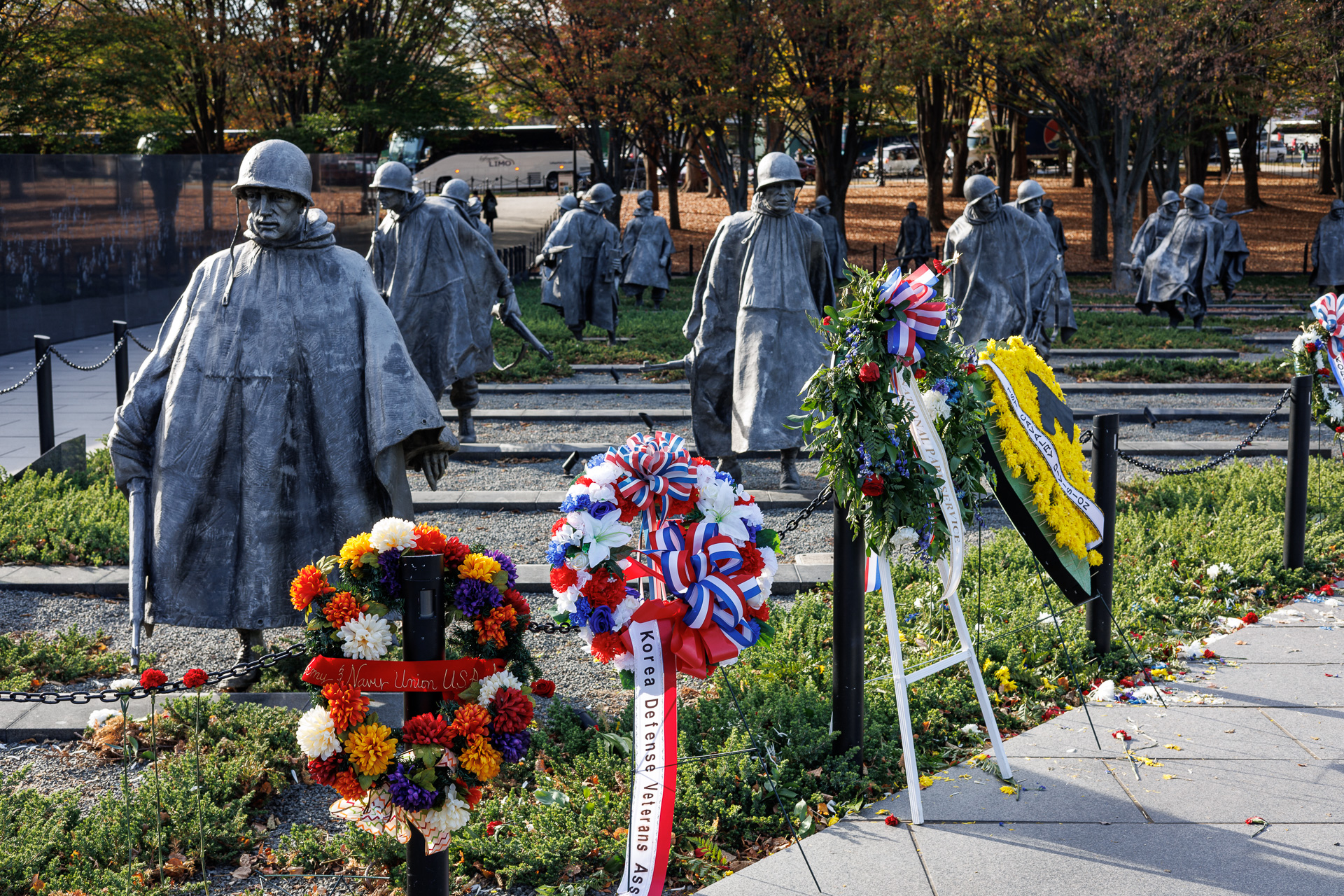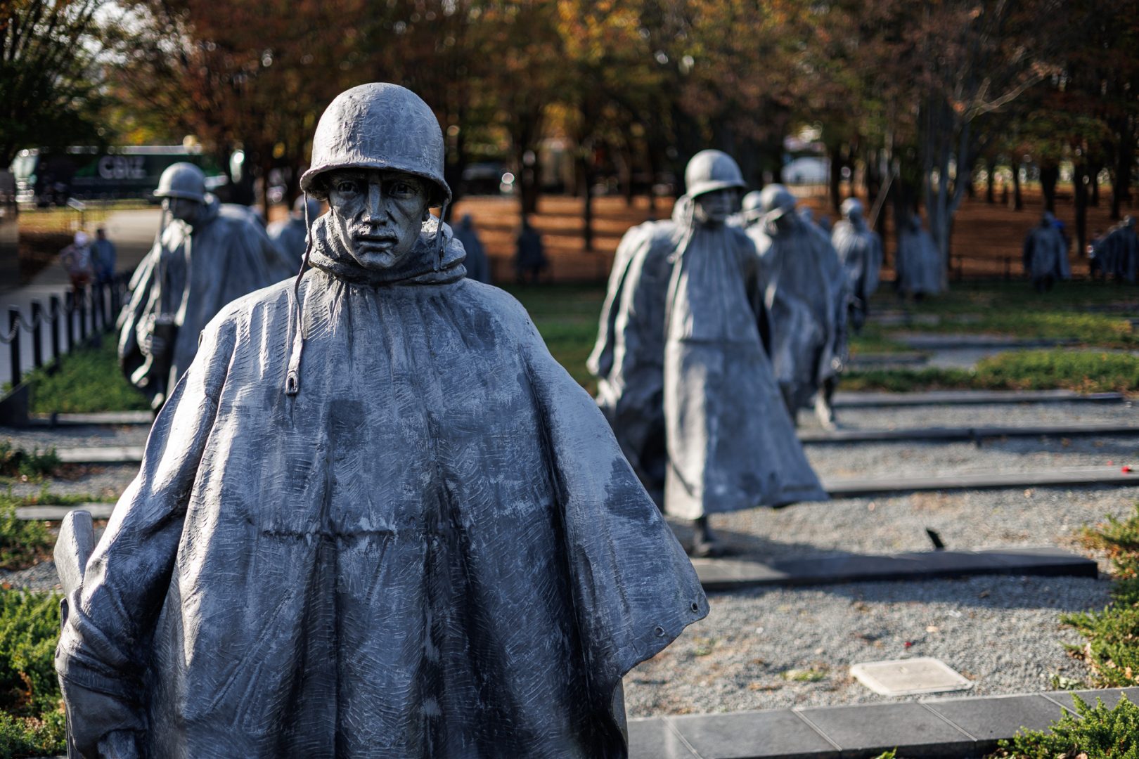 Nous poursuivons par le « Korean War Vétérans Memorial ». Les 19 statues en métal ont été sculptées par Frank Gaylord. Inauguré le 27 juillet 1995, le mémorial commémore les sacrifices des 54 246 Américains qui ont servi dans les forces armées américaines pendant les trois ans de la guerre de Corée (1950-1953).
