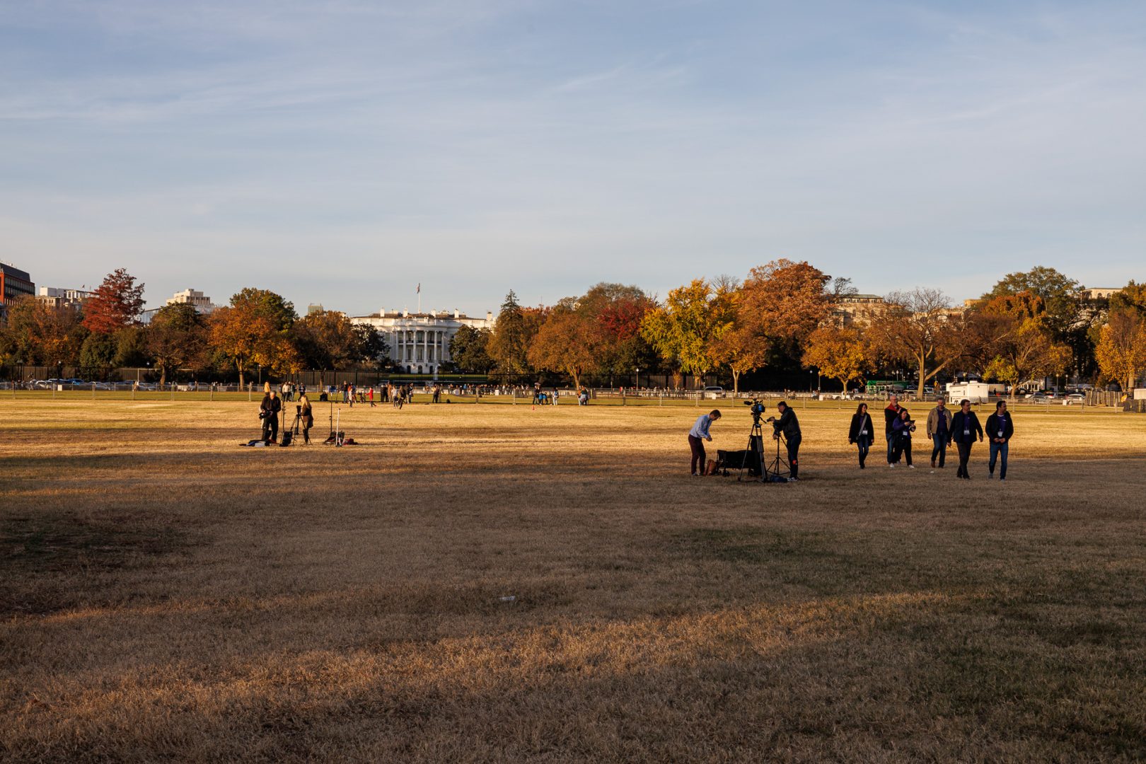 Et face du Washington Monument… La Maison Blanche !! Quelques journalistes remballent leur matériel… Donald Trump est venue rendre visite à Joe Biden !