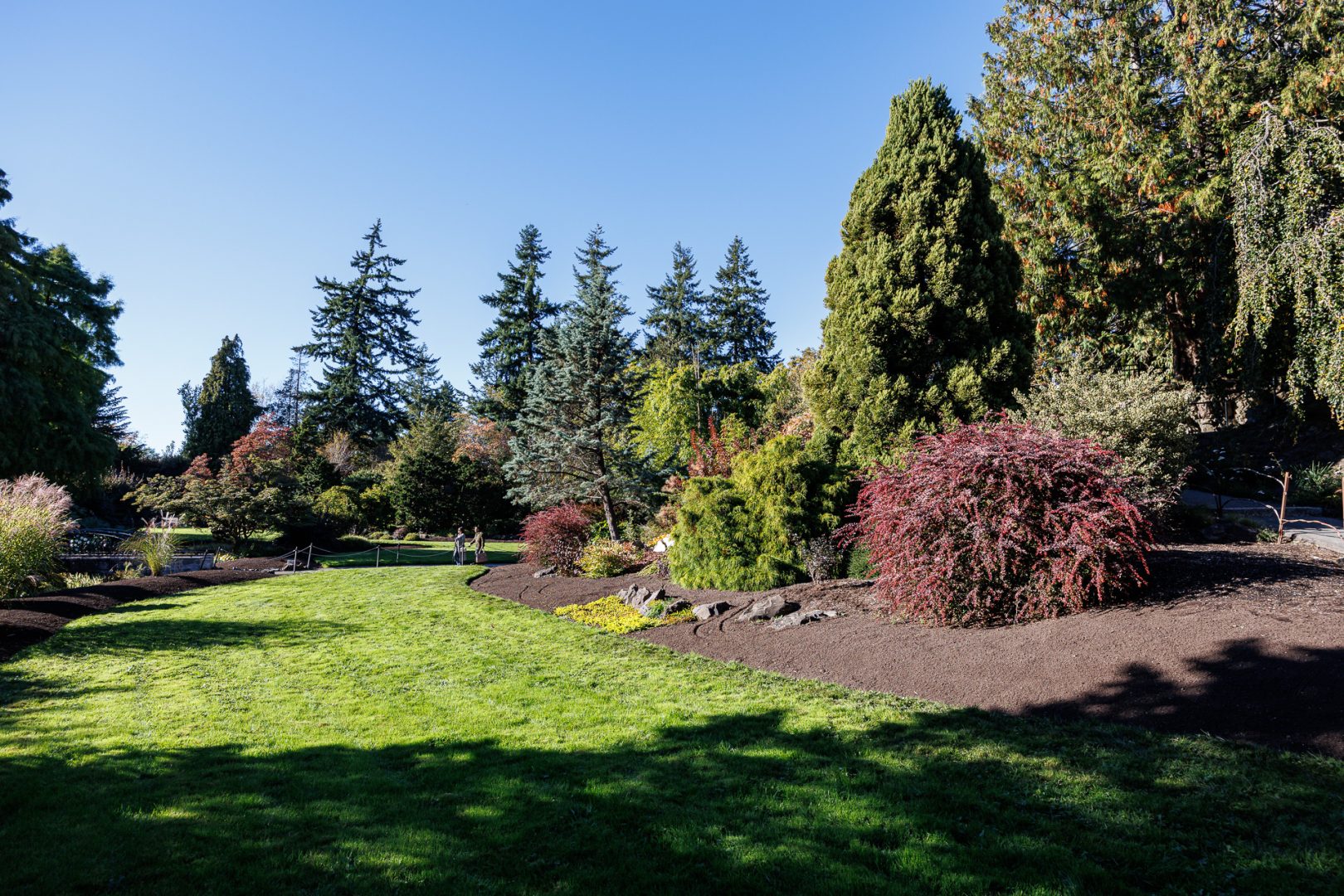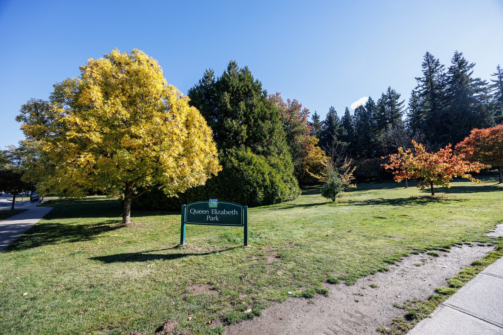 Nous voilà arrivés à destination. Le Queen Elizabeth Park s’étend sur 52 hectares au sommet de Little Mountain à environ 125m d’altitude. C’est le point culminant de Vancouver. Il est situé sur l’emplacement d’anciennes carrières de basalte creusées au début du 20ème siècle pour fournir des matériaux pour les routes de la ville.