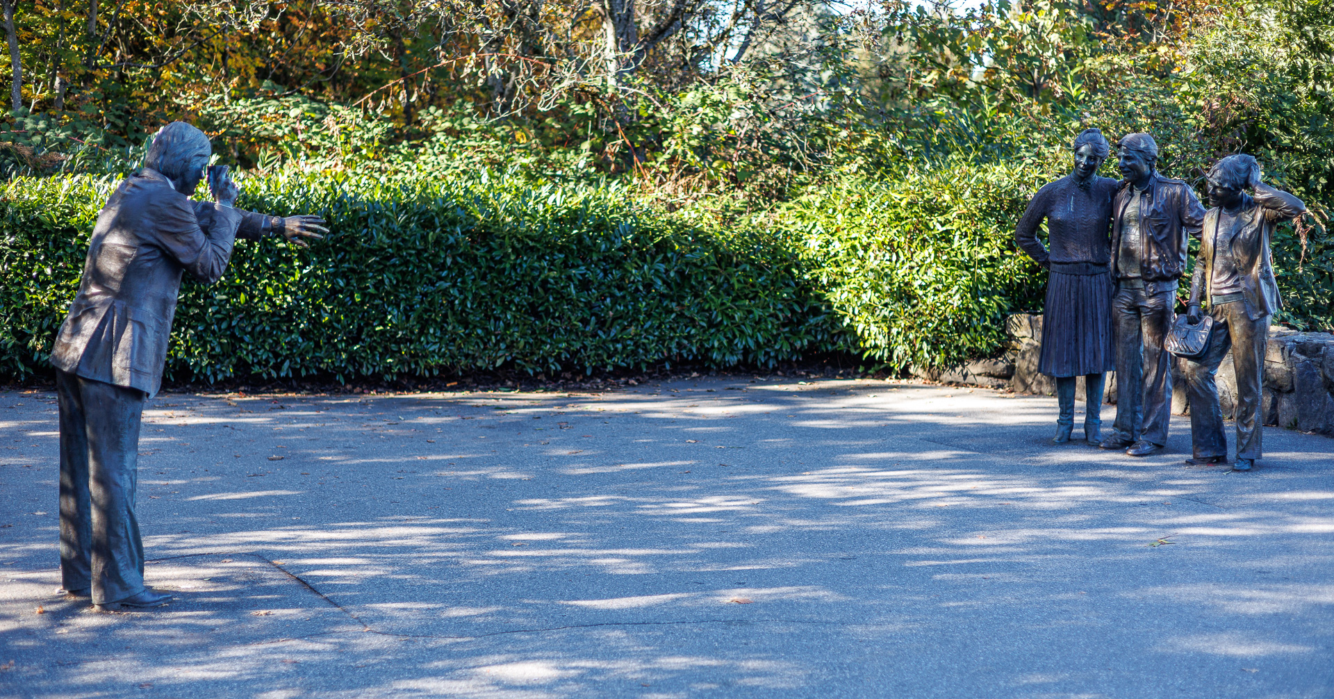 Séance photo sur les hauteurs du parc. Ces trois personnes ne semblent pas s’impatienter… elles attendent quand même depuis 1984 🤣, date de la réalisation de cette statue par John Seward Johnson Junior. Les postures sont très bien rendues !