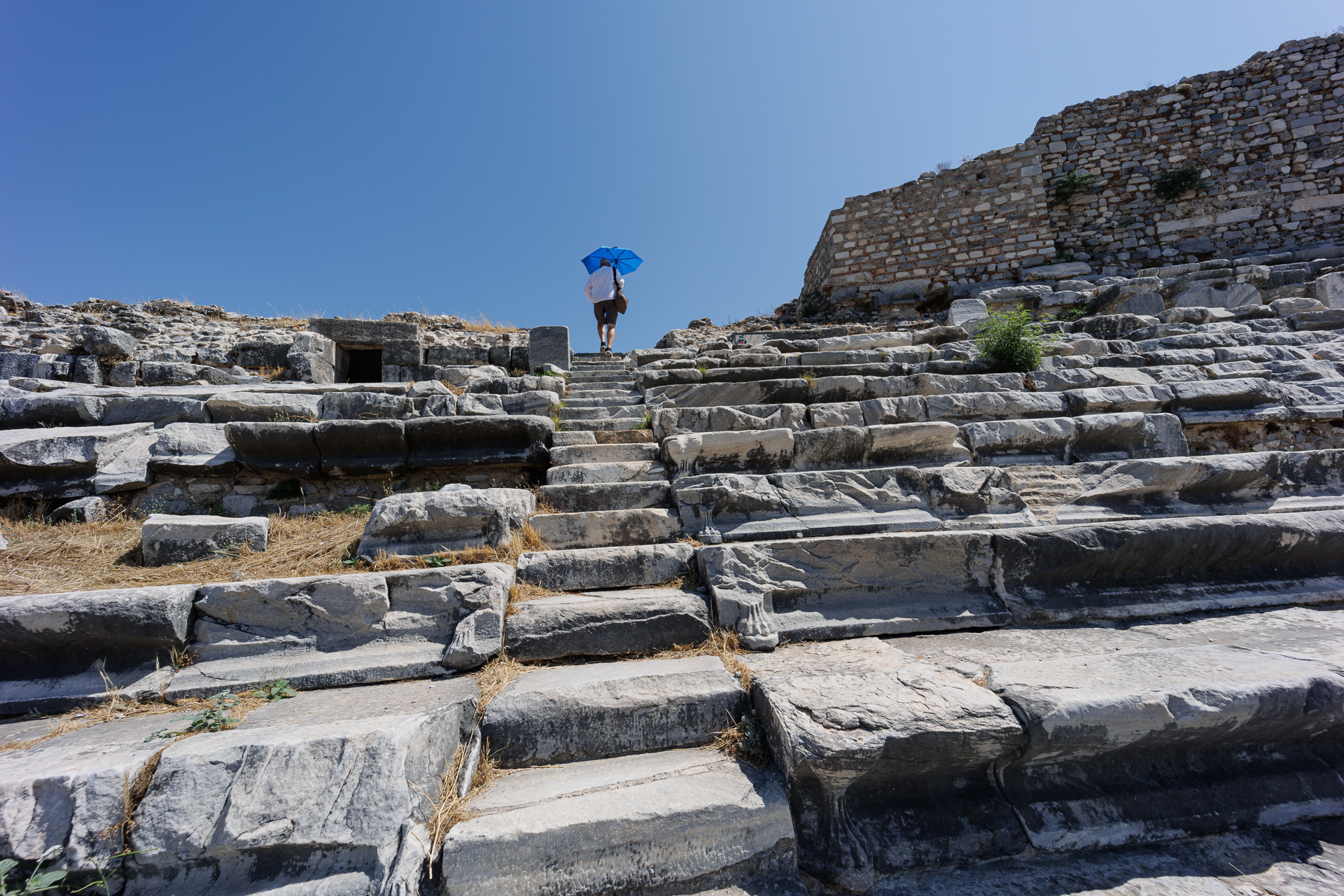 Après une nuit calme sur le parking, nous commençons la visite de l’ancienne ville de Milet avec son mélange de ruines hellénistiques et romaines.