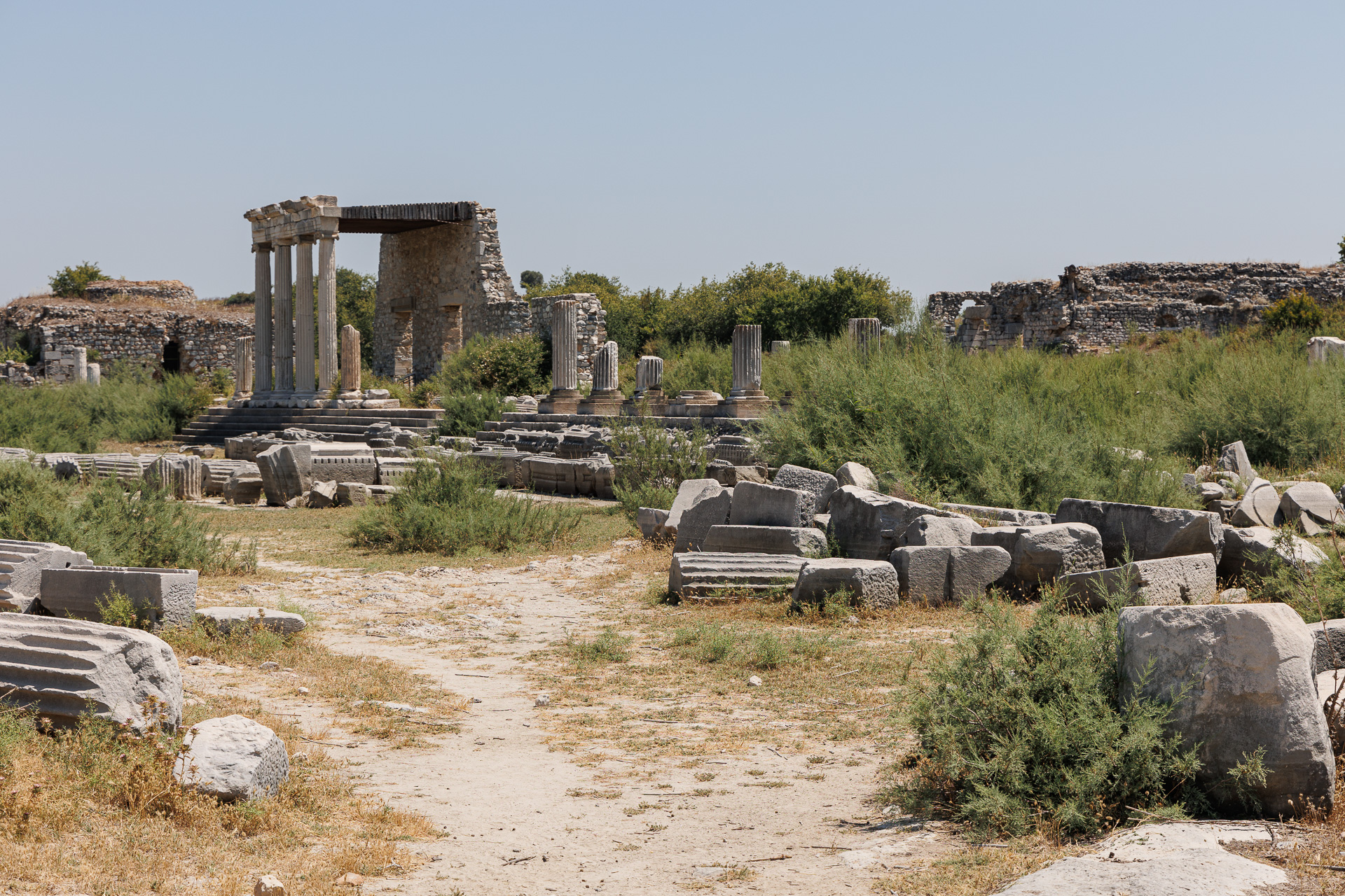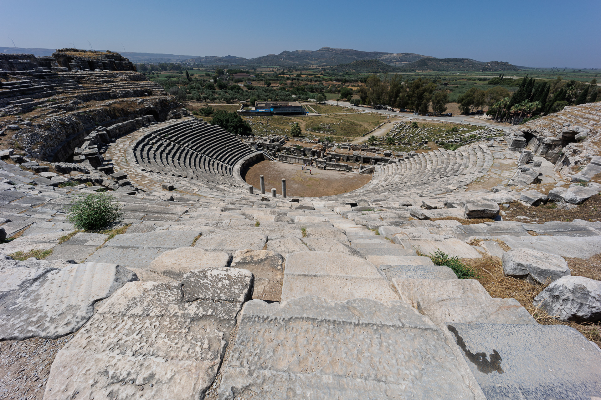 Au Moyen-Age, Milet perd son accès à la mer. La puissance maritime se retrouve dans les terres à la suite d’un ensablement progressif, ce qui lui vaut d’être totalement abandonnée au 16ème siècle. Le site ne baigne plus aujourd’hui que dans les eaux de pluie ou une chaleur accablante. A la différence de Priène, il y a peu d’ombre 🥵 !