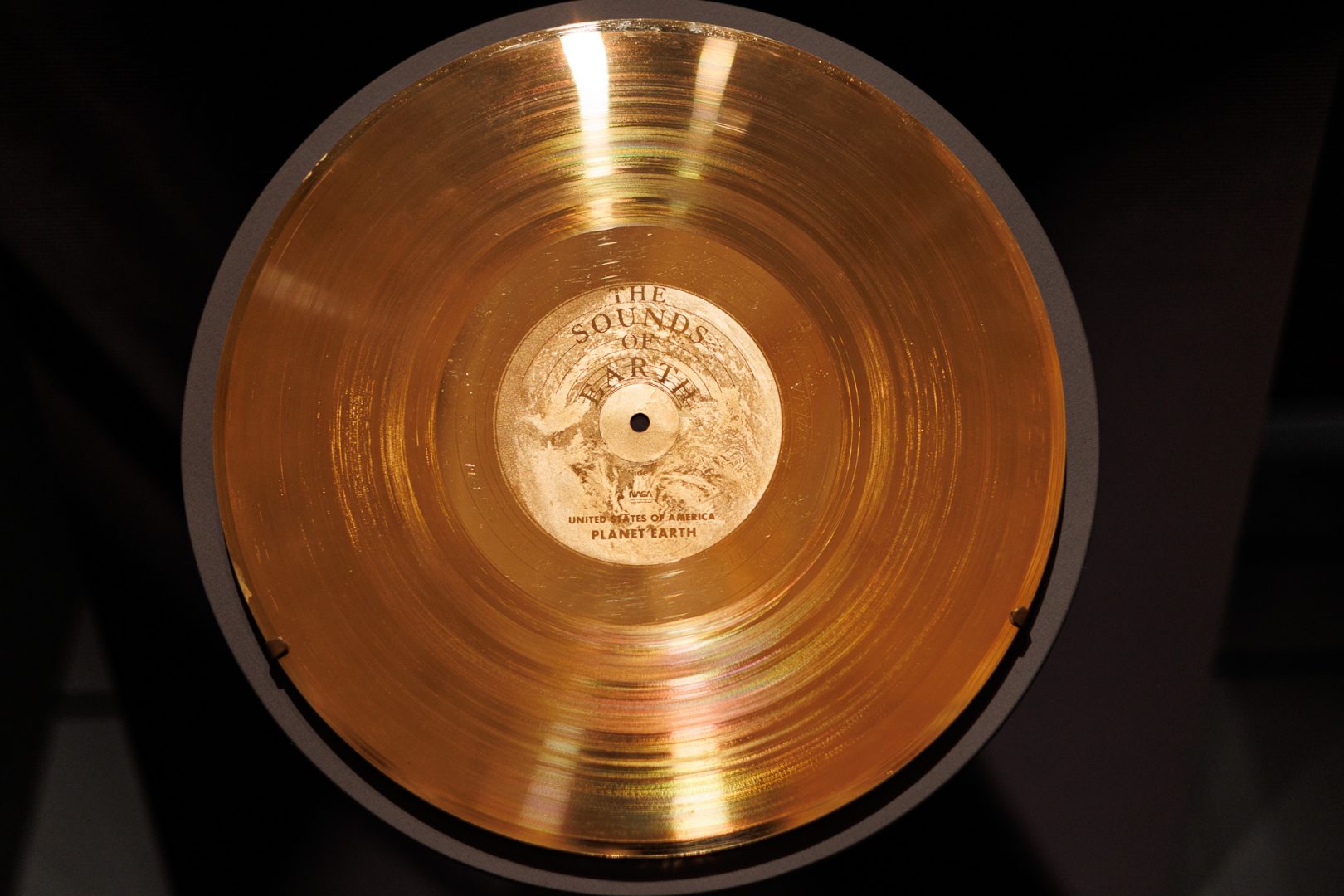 Dans l’inventaire de la bibliothèque figure une copie des deux disques en or envoyés dans l’espace. Le disque d’or de Voyager (ou Voyager Golden Record) est un disque intitulé The Sounds of Earth (« Les sons de la Terre ») et embarqué dans les deux sondes spatiales Voyager, lancées en 1977, servant de « bouteille à la mer interstellaire » destinée à d’éventuels êtres extraterrestres.