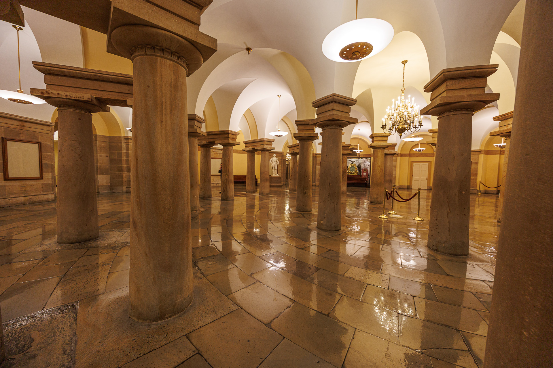 La salle des colonnes est un couloir de plus de 30 mètres de long, au plafond haut, situé directement sous le hall de la Chambre des représentants. La salle doit son nom aux 28 colonnes cannelées en marbre blanc qui bordent le couloir et…
