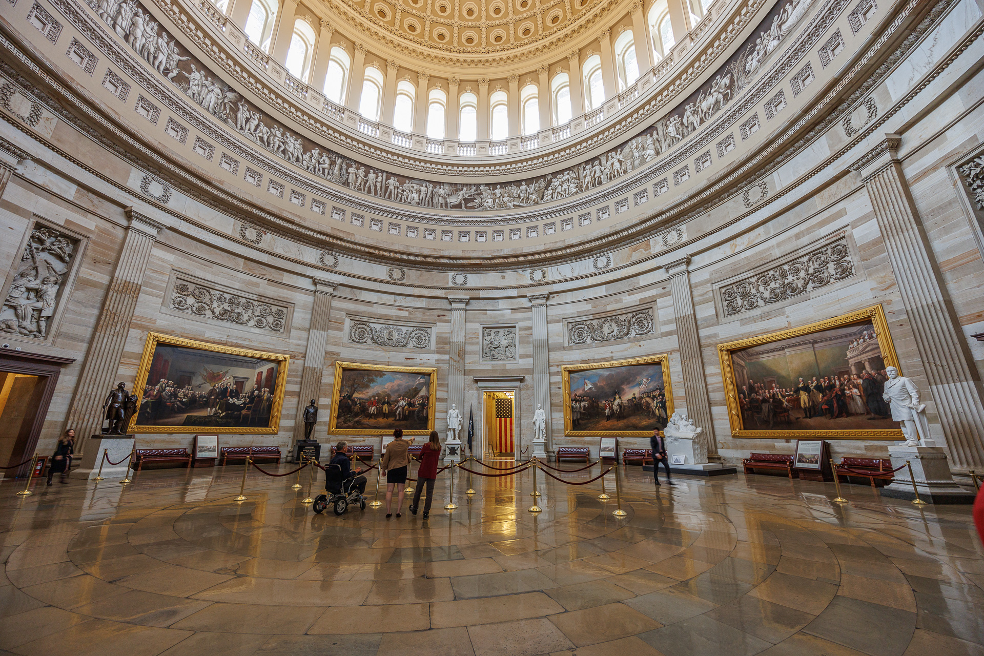 La Rotonde est le cœur même du Capitole. Bien qu’elle n’ait pas de fonction législative, c’est un espace cérémoniel où sont organisées, depuis l’époque d’Abraham Lincoln, les funérailles d’État pour les présidents, des membres du Congrès, des héros militaires et d’autres éminentes personnalités. Les chefs d’État en visite ainsi que d’autres invités de marque y sont souvent reçus et de nombreux événements historiques y ont été célébrés.