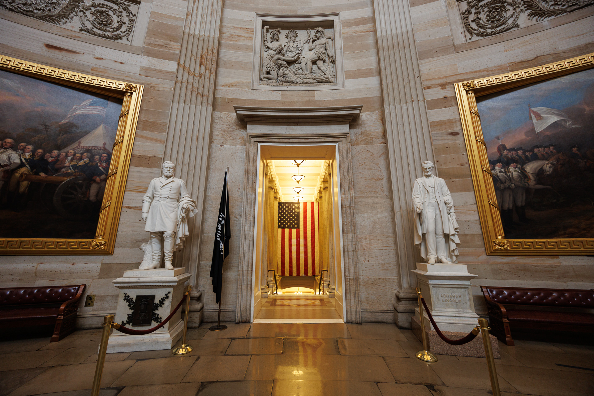 Les statues et bustes de la rotonde du Capitole représentent principalement des présidents mais également un buste du Dr Martin Luther King Jr. et le monument-portrait de Lucretia Mott, Elizabeth Cady Stanton et Susan B. Anthony qui ont joué un rôle déterminant dans le mouvement pour le droit de vote des femmes.