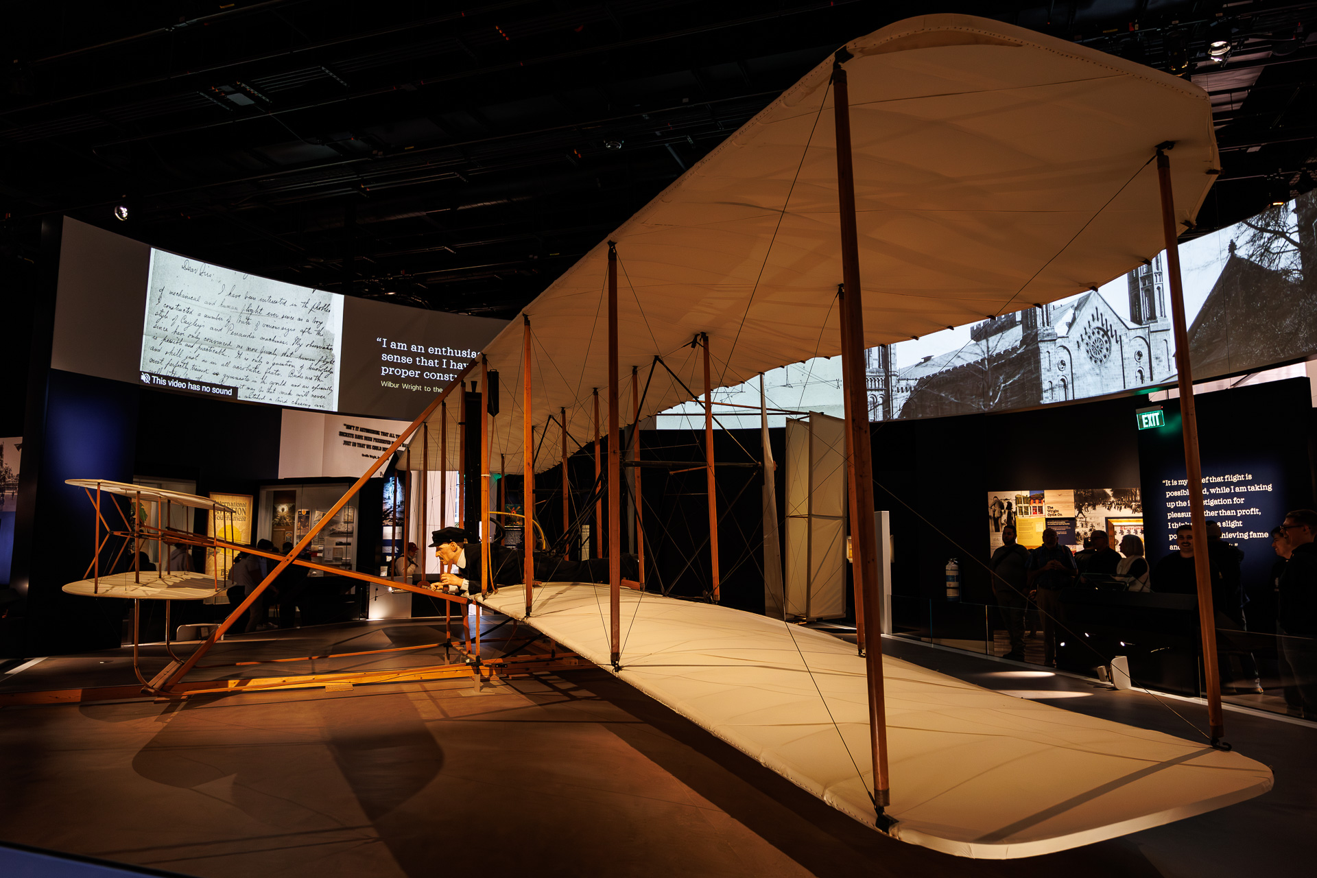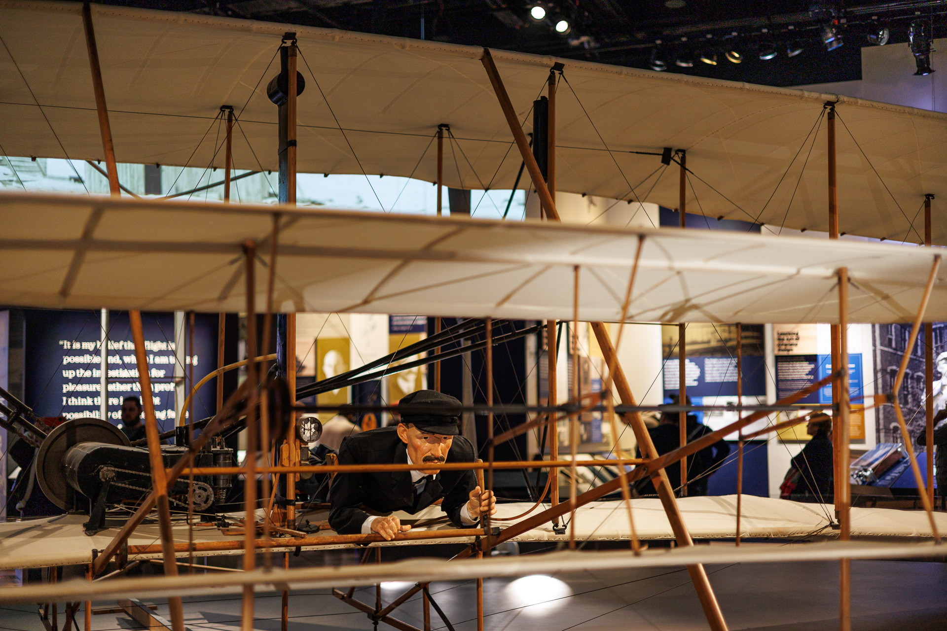 Avant ce premier vol motorisé, il y a eu plusieurs tentatives avec l’energie humaine 🤕 ! En 1903, les frères Wright ont donc réussi à faire décoller un premier avion… Celui-ci ! Il s’agit du véritable Wright Flyer. C’est impressionnant de se dire que cet avion est à l’origine de toute l’aviation ! Il a juste été réentoilé.