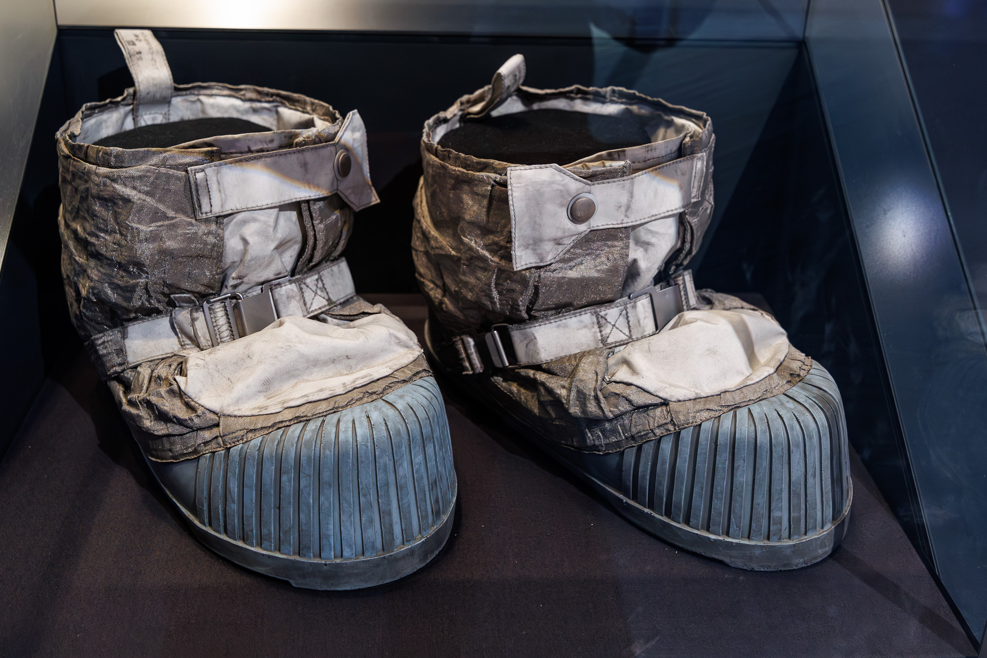 Ces bottes lunaires ont été portées par Eugene Cernan lors du voyage d’Apollo 17 du 7 au 19 décembre 1972. Il s’agira de la dernière mission du programme spatial Apollo à emmener des hommes à la surface de la Lune. Eugene Cernan est ainsi le dernier astronaute à avoir posé le pied sur la lune et y laisser les dernières traces de pas.