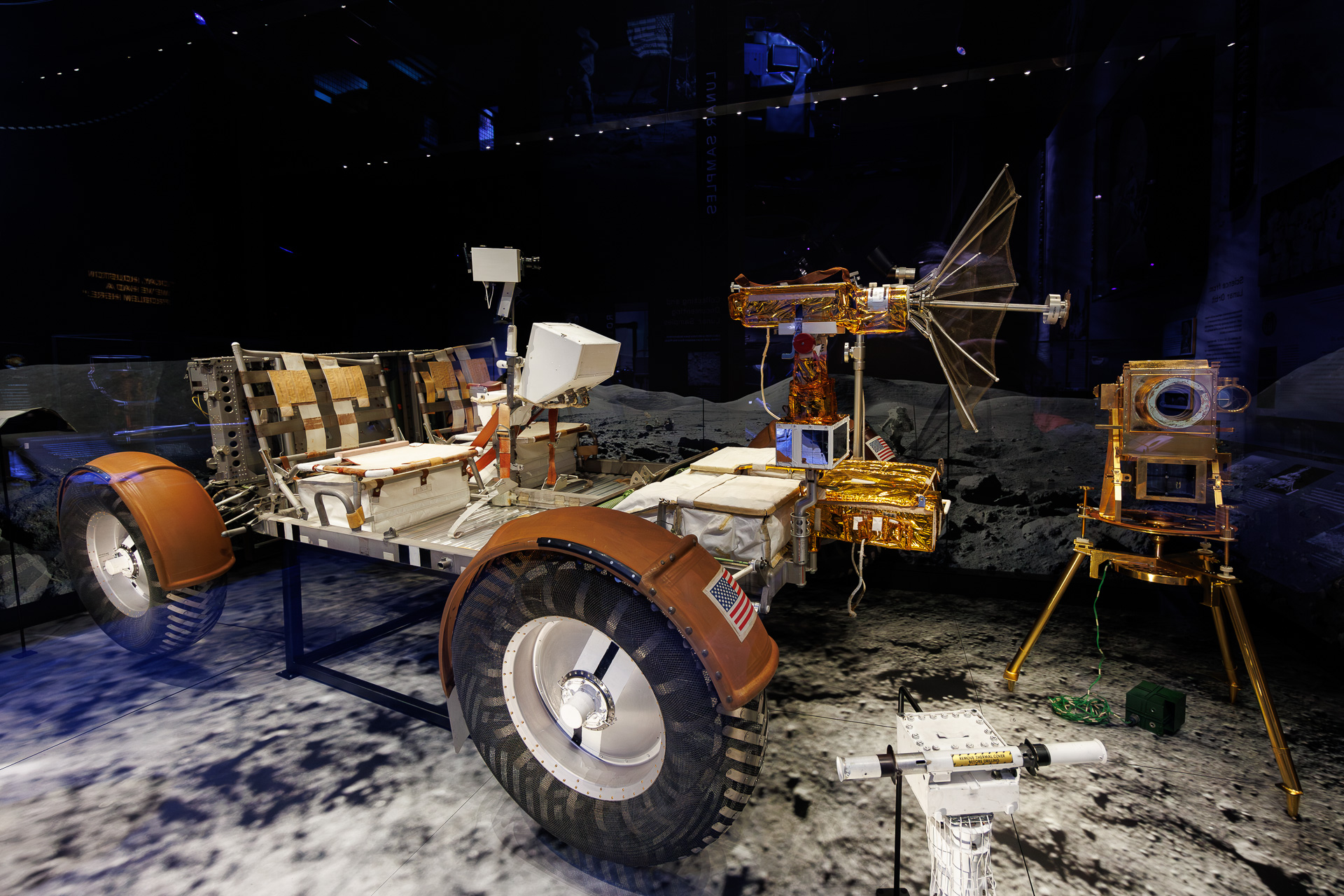 Prototype du module lunaire utilisé par les astronautes des 3 dernières missions Apollo 15, 16 et 17. Les astronautes utilisent pour la première fois le « rover » (Lunar Roving Vehicle) en 1971. Cette jeep lunaire aide les astronautes à explorer plusieurs kilomètres autour du point d’atterrissage. Ils ont pu ainsi prélevé plusieurs échantillons lunaires.