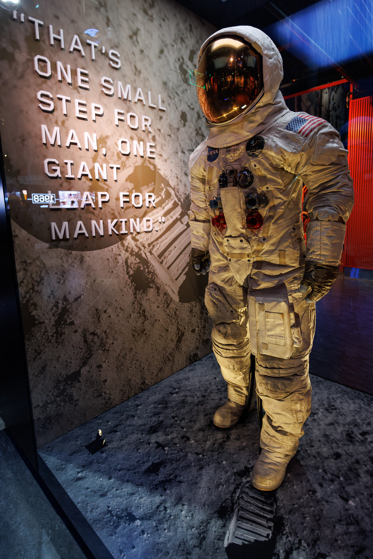 Neil Armstrong sera le premier à poser le pied sur la Lune, suivi d’Edwin Aldrin. Cette combinaison spatiale a été portée par Neil Amstrong lorsqu’il a posé le premier pas sur la Lune !